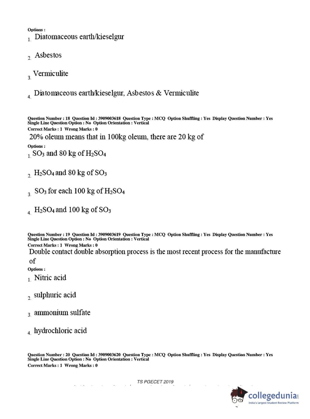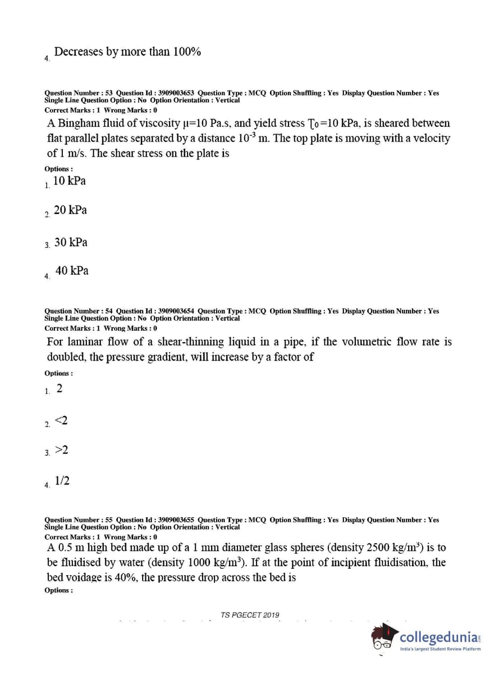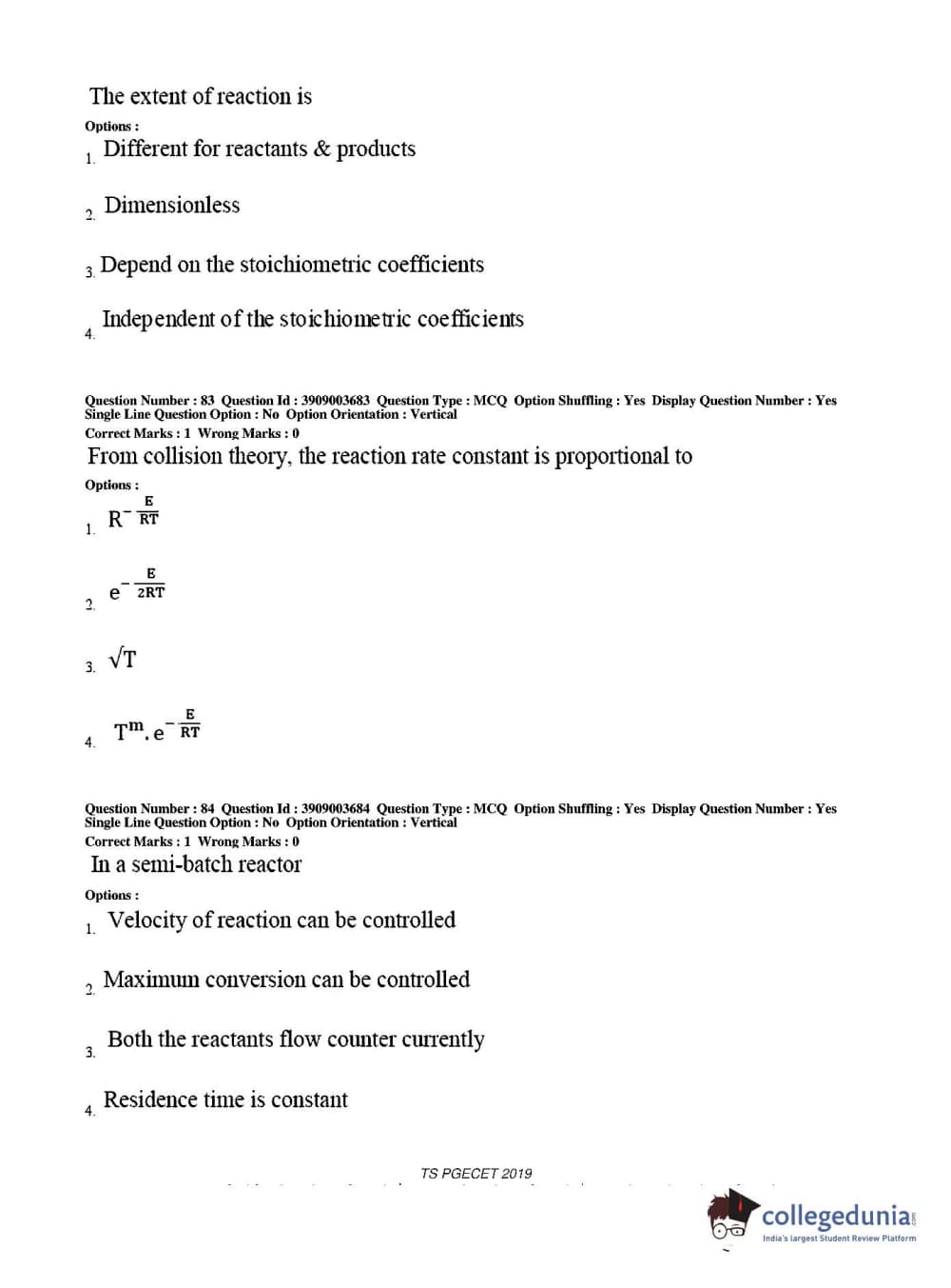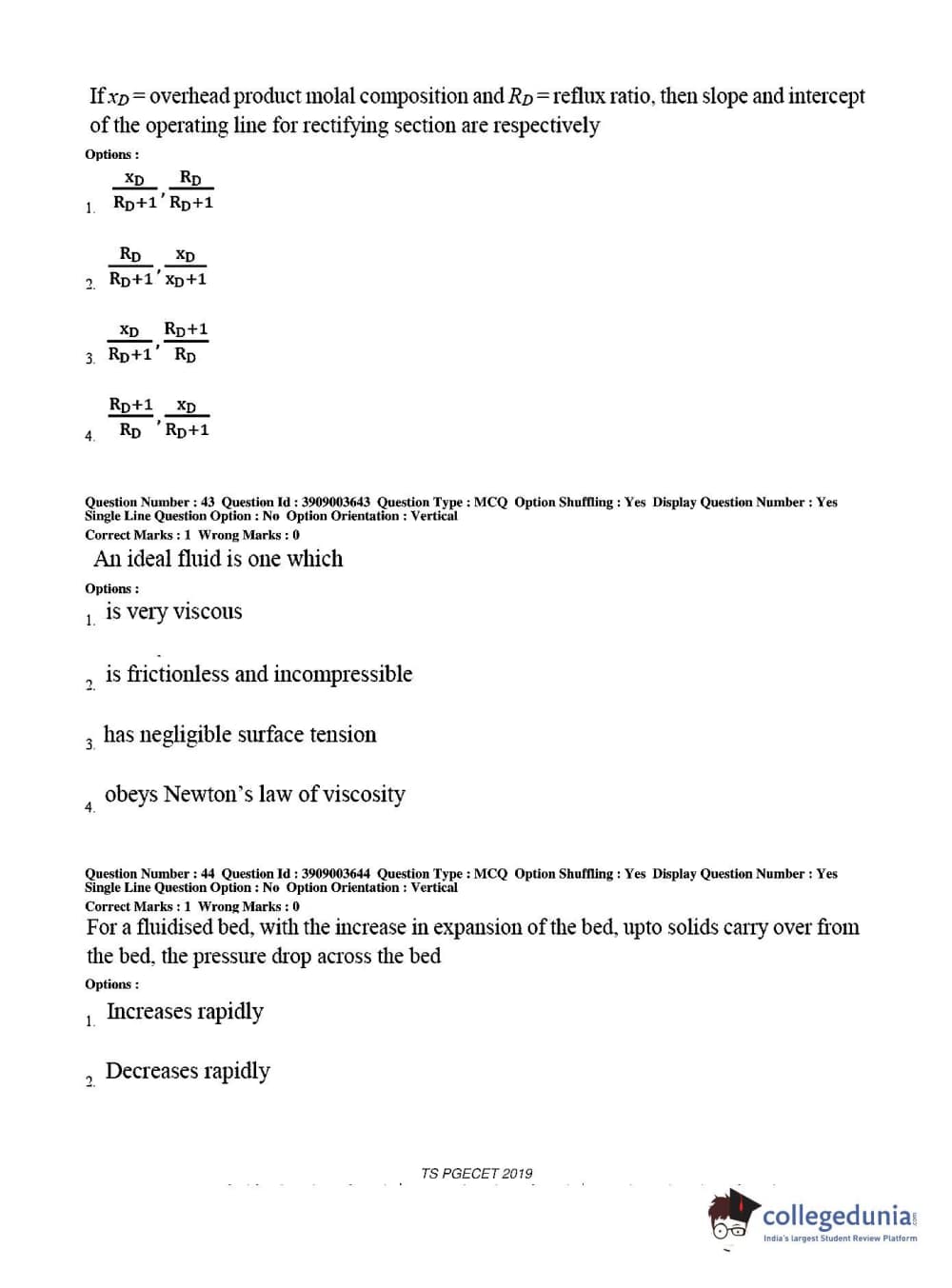 TS PGECET 2019 Chemical Engineering Question Paper with Answer Key PDF for