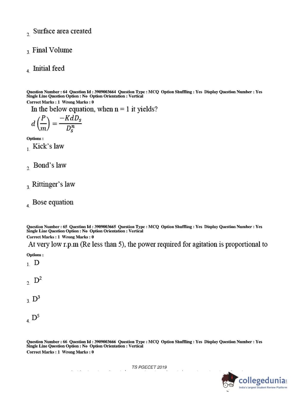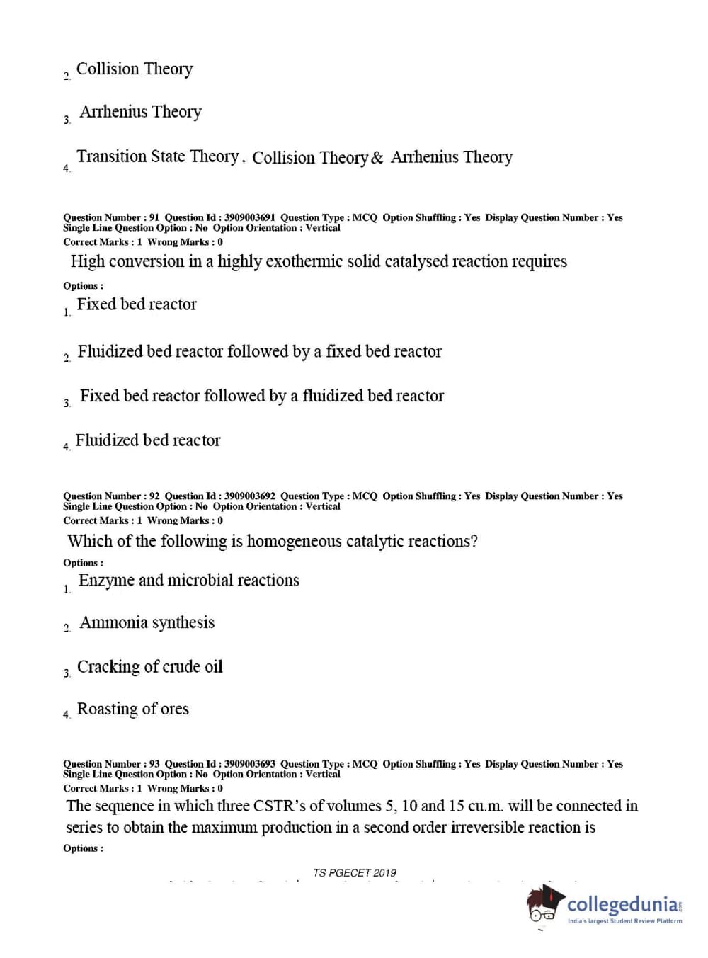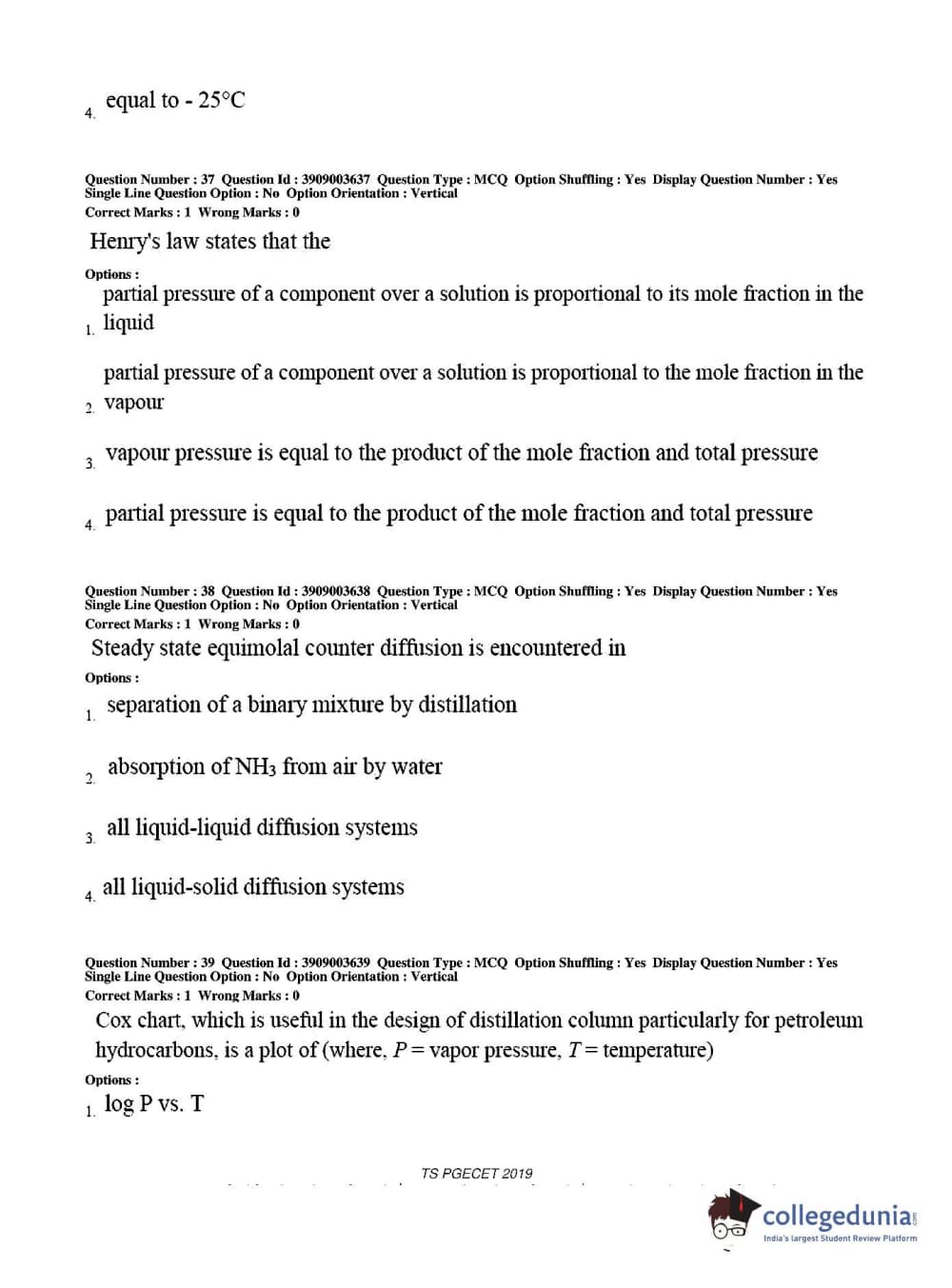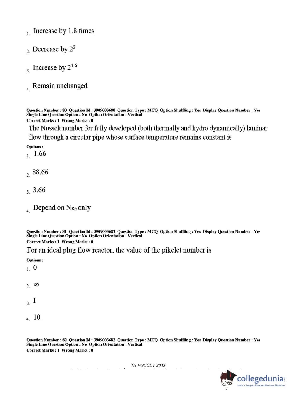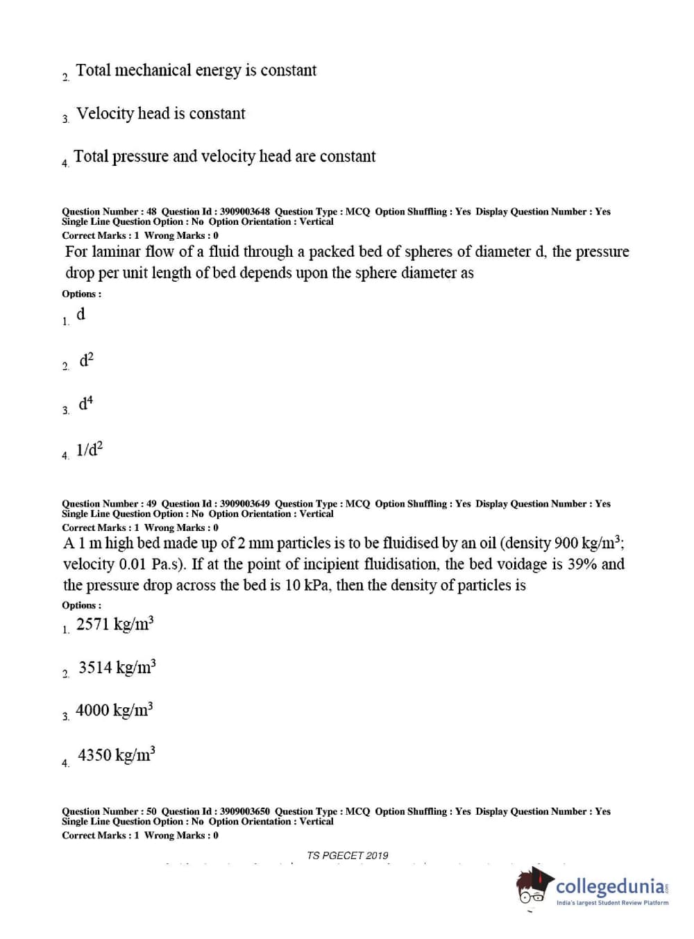 TS PGECET 2019 Chemical Engineering Question Paper with Answer Key PDF for