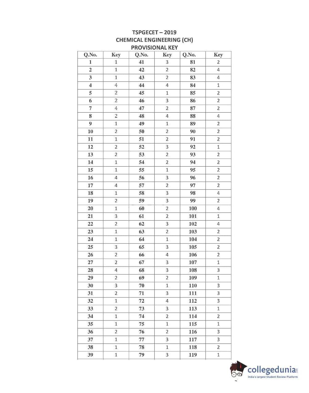| TS PGECET 2019 Chemical Engineering Question Paper PDF | TS PGECET 2019 Chemical Engineering Answer Key PDF |