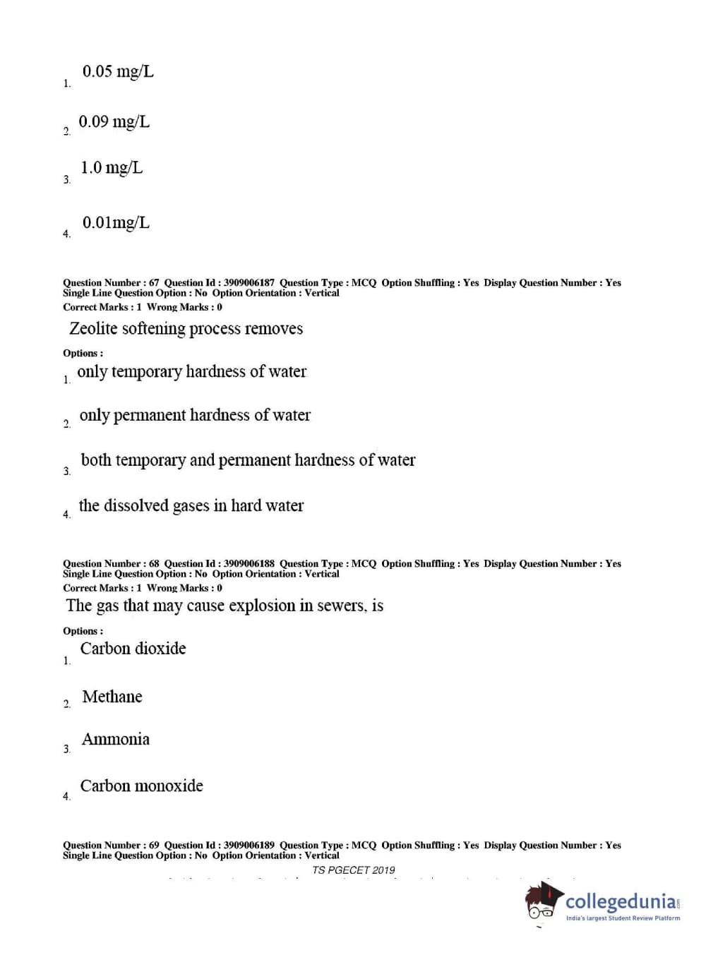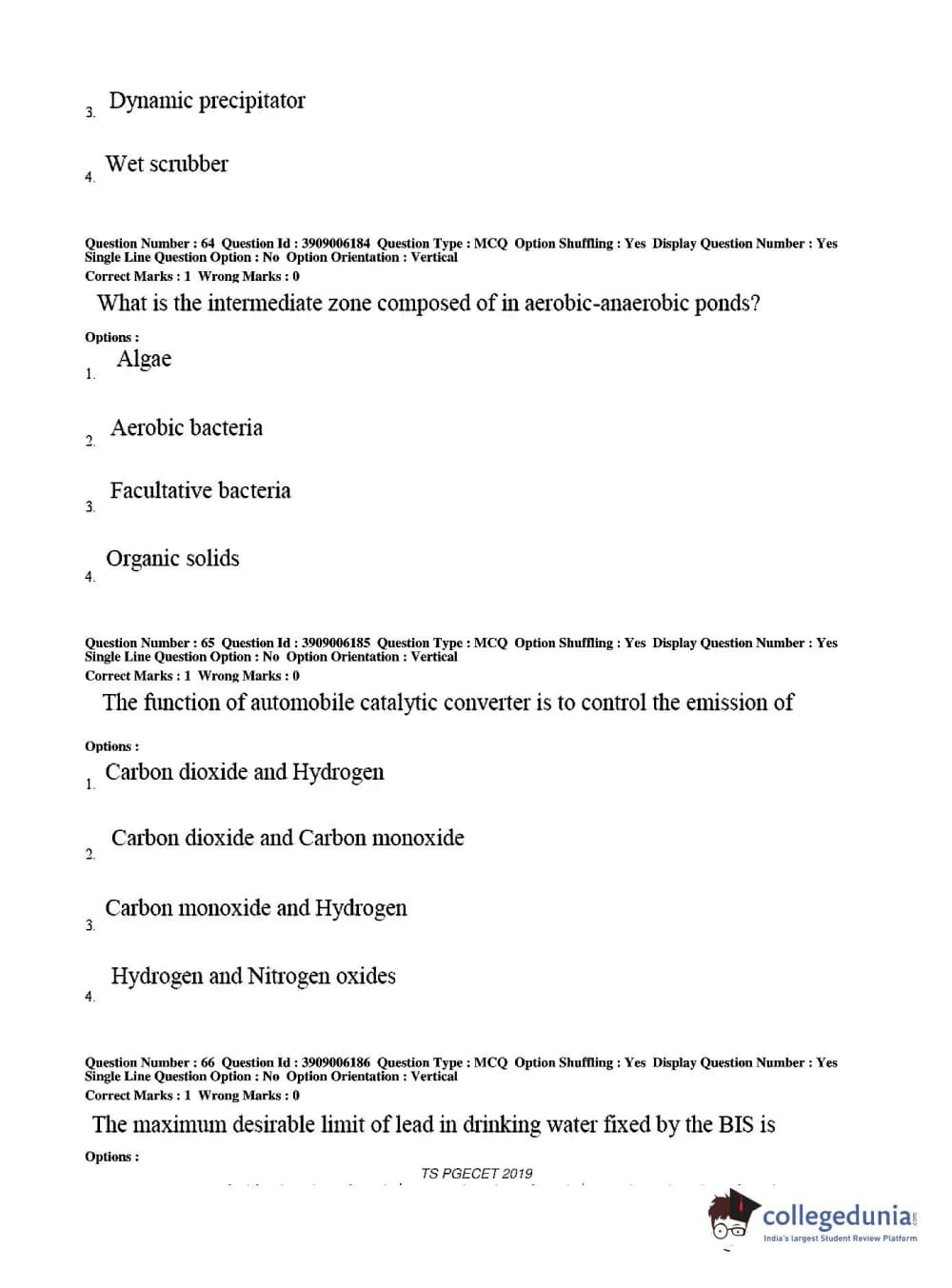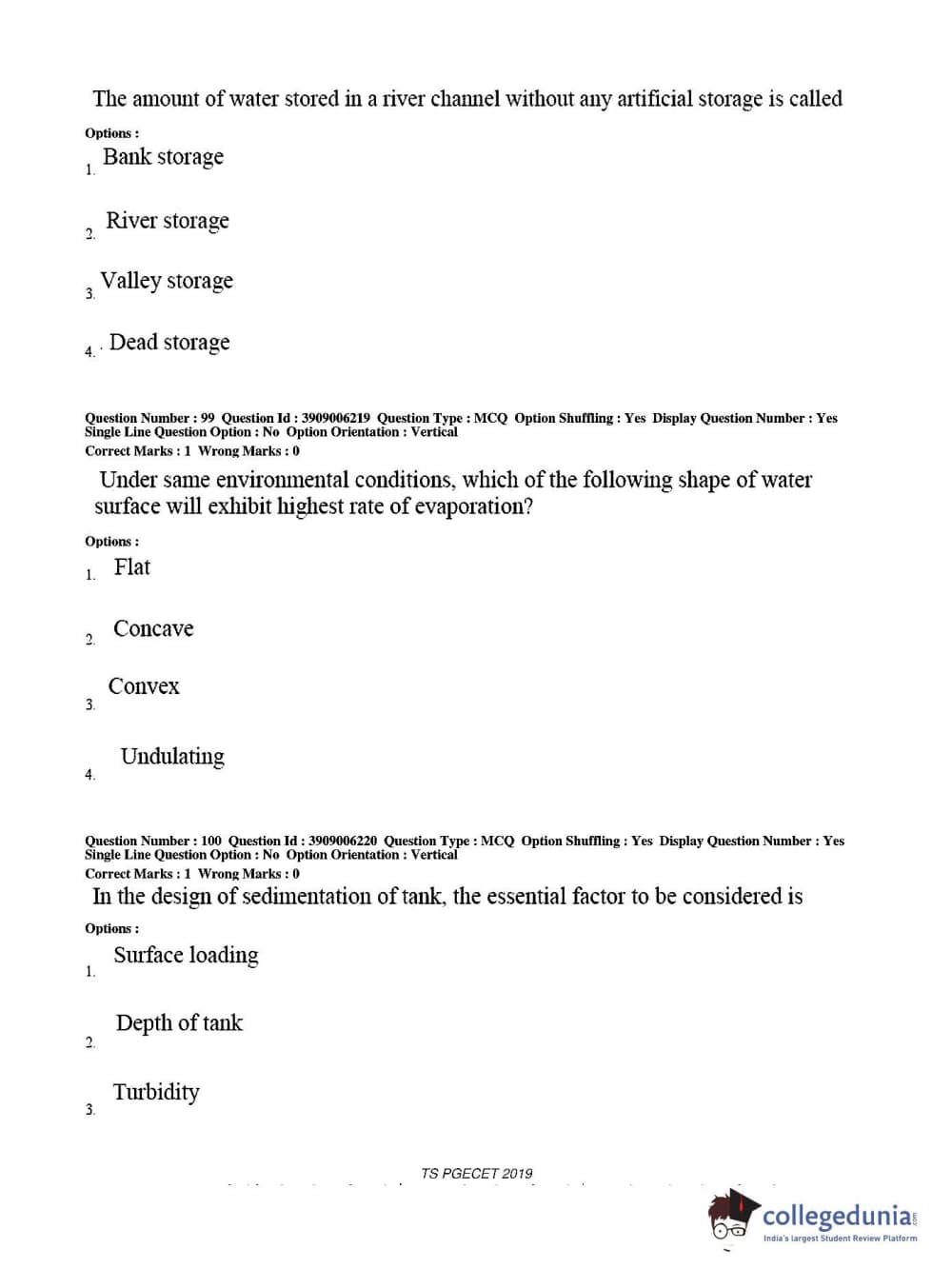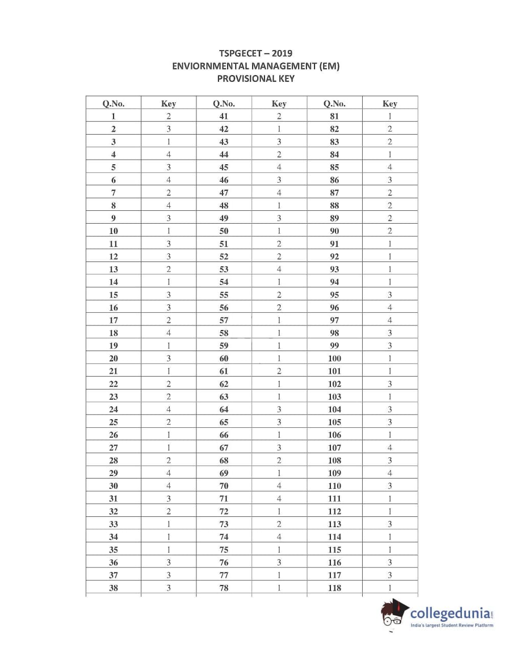 | TS PGECET 2019 Environmental Management Question Paper PDF | TS PGECET 2019 Environmental Management Answer Key PDF |