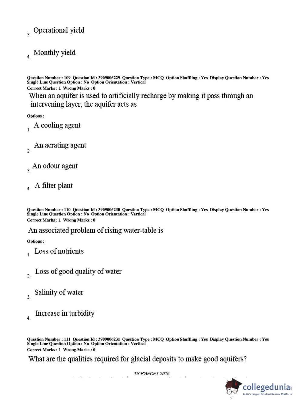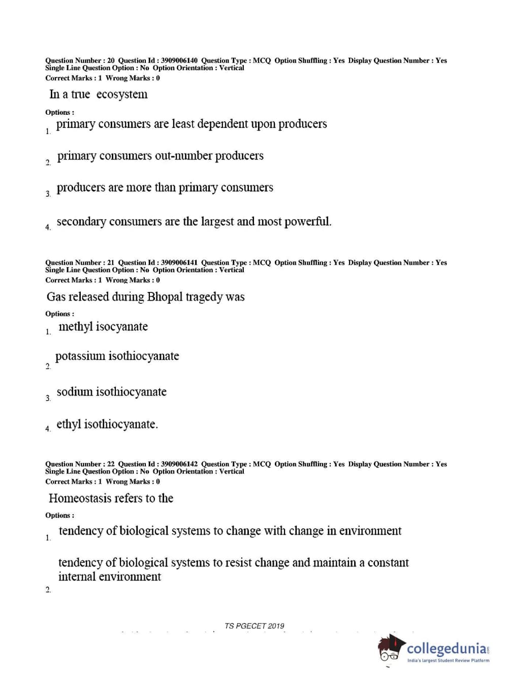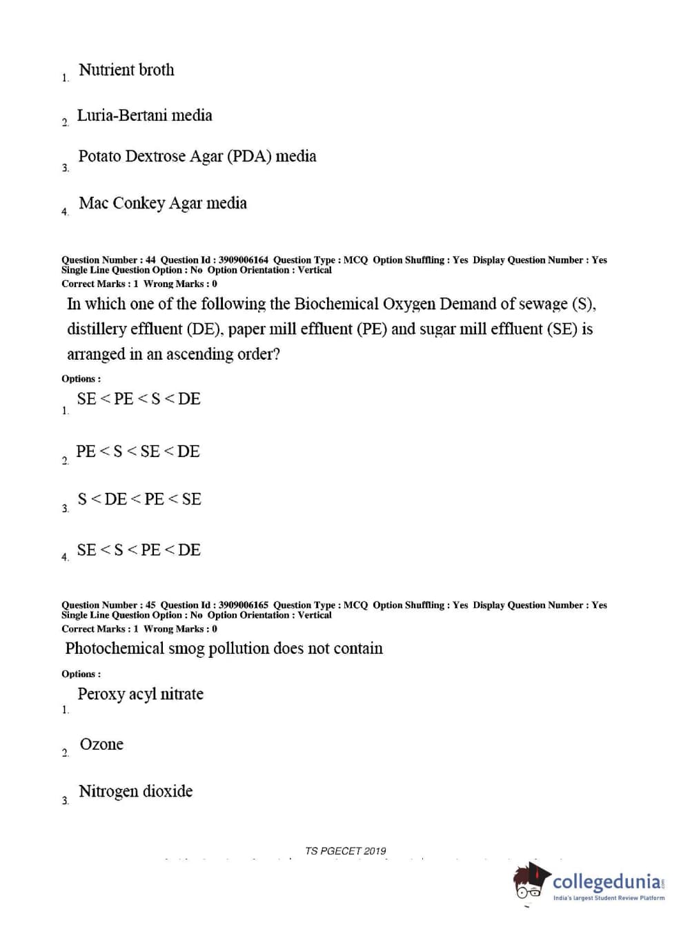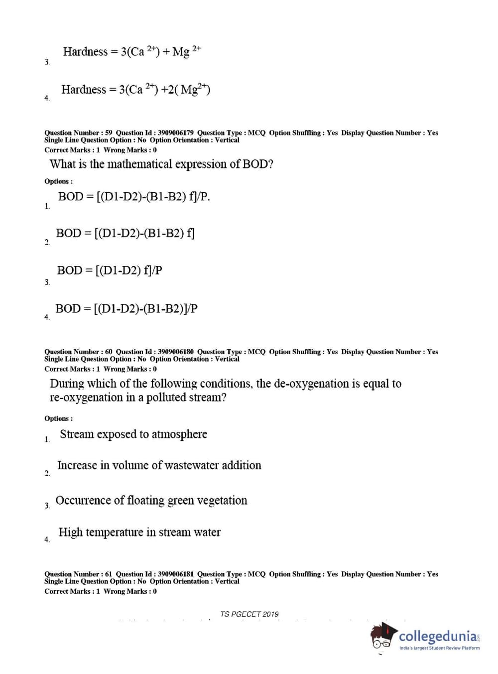 | TS PGECET 2019 Environmental Management Question Paper PDF | TS PGECET 2019 Environmental Management Answer Key PDF |