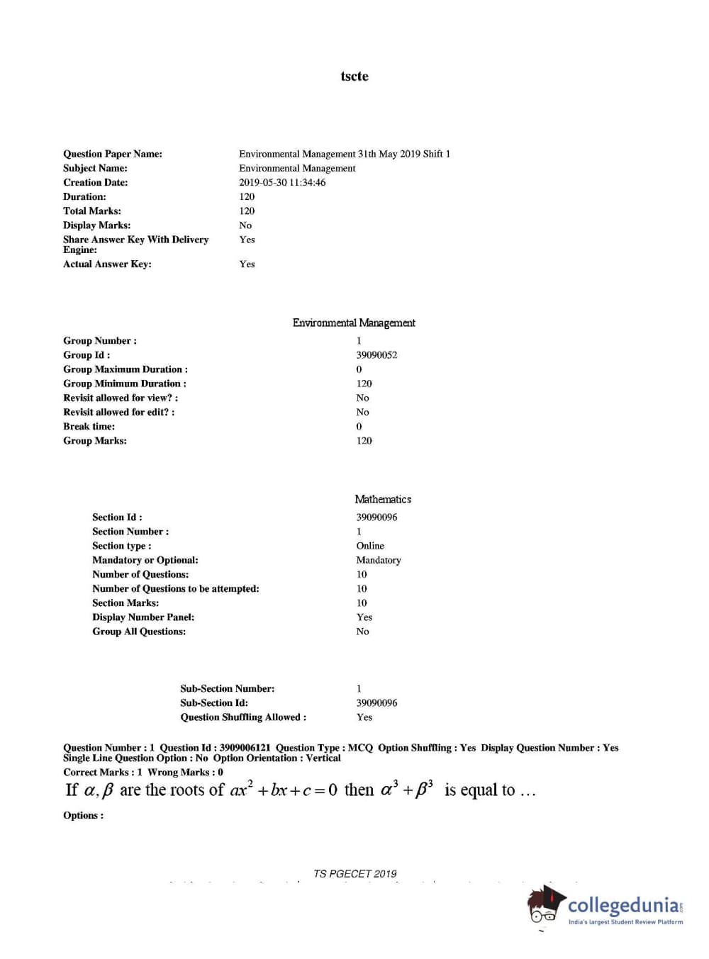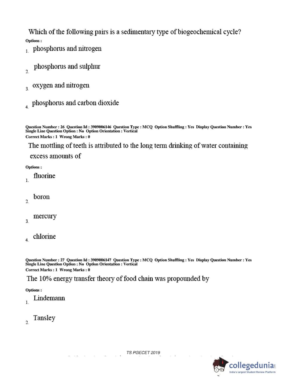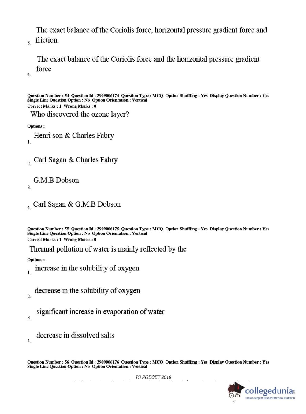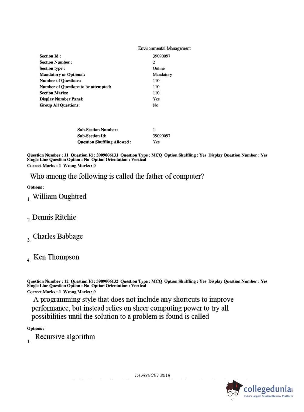 | TS PGECET 2019 Environmental Management Question Paper PDF | TS PGECET 2019 Environmental Management Answer Key PDF |