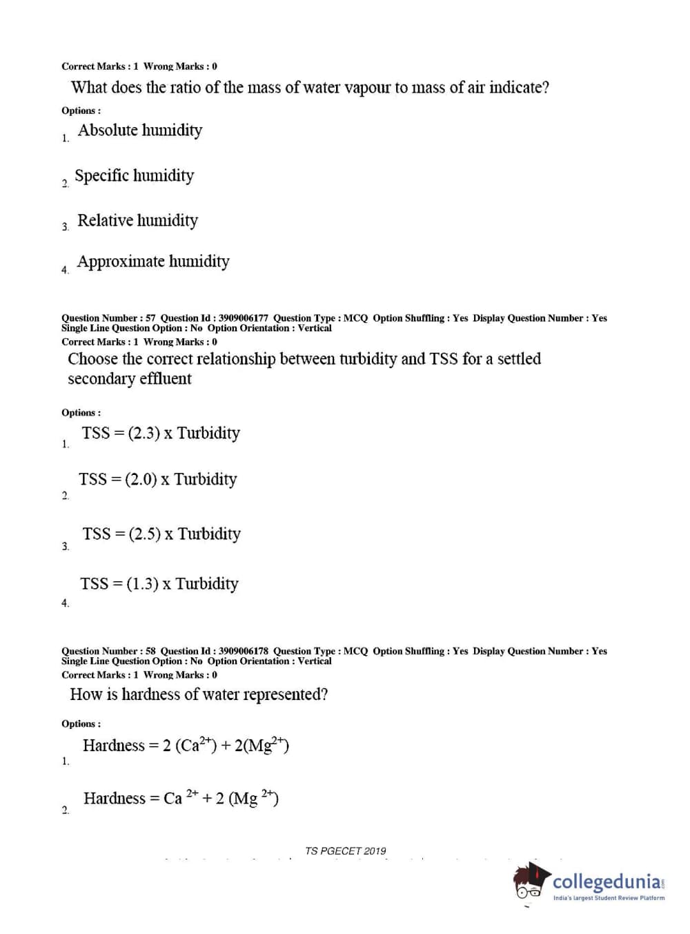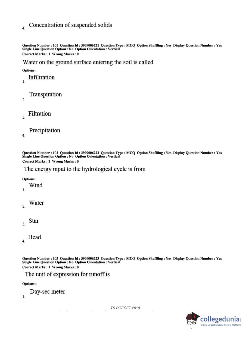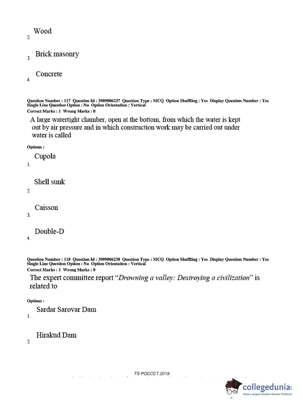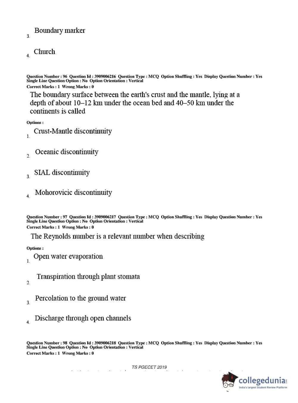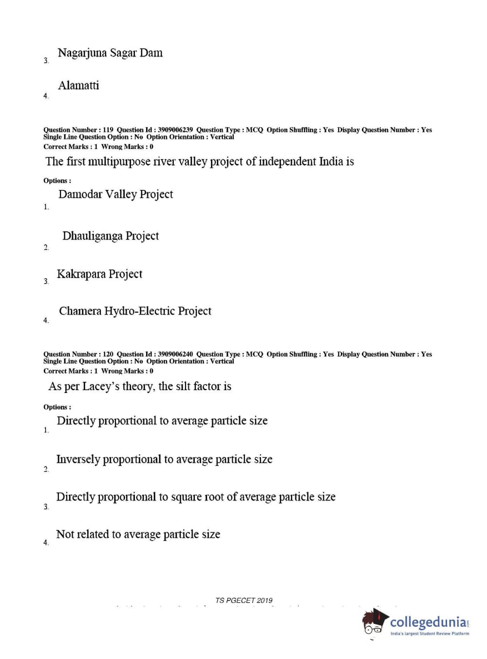 Collegedunia has provided TS PGECET Previous Year Question paper pdf with answer key in the links given below: