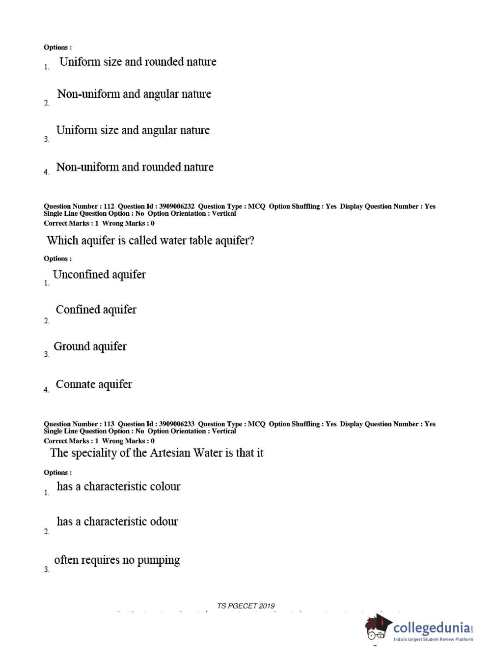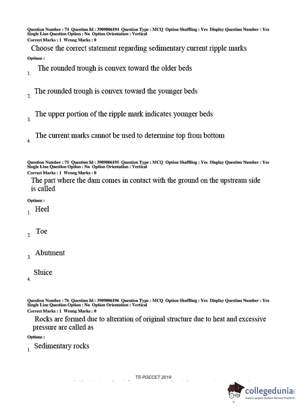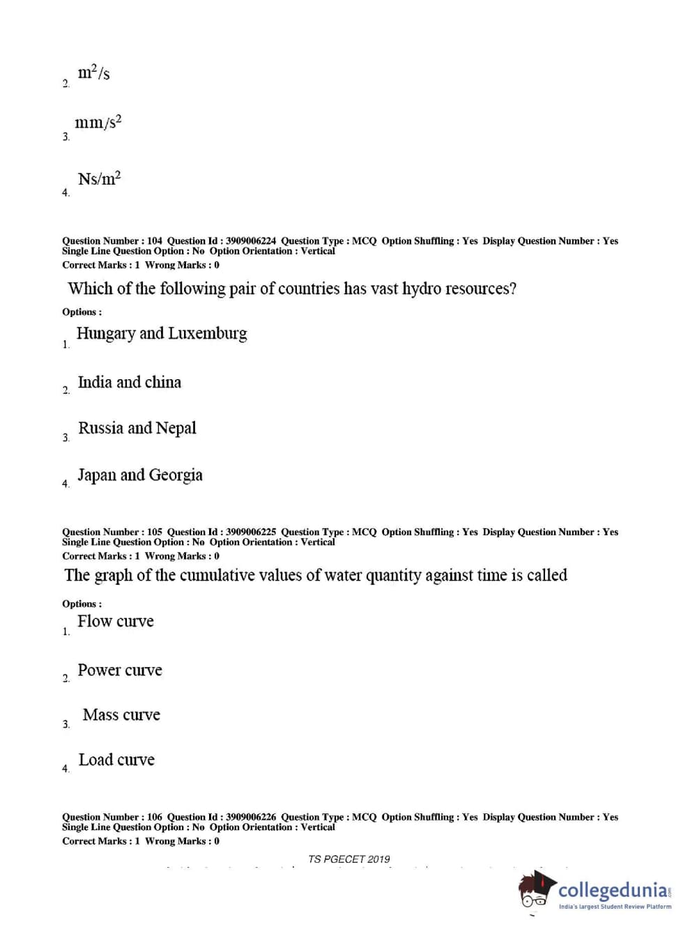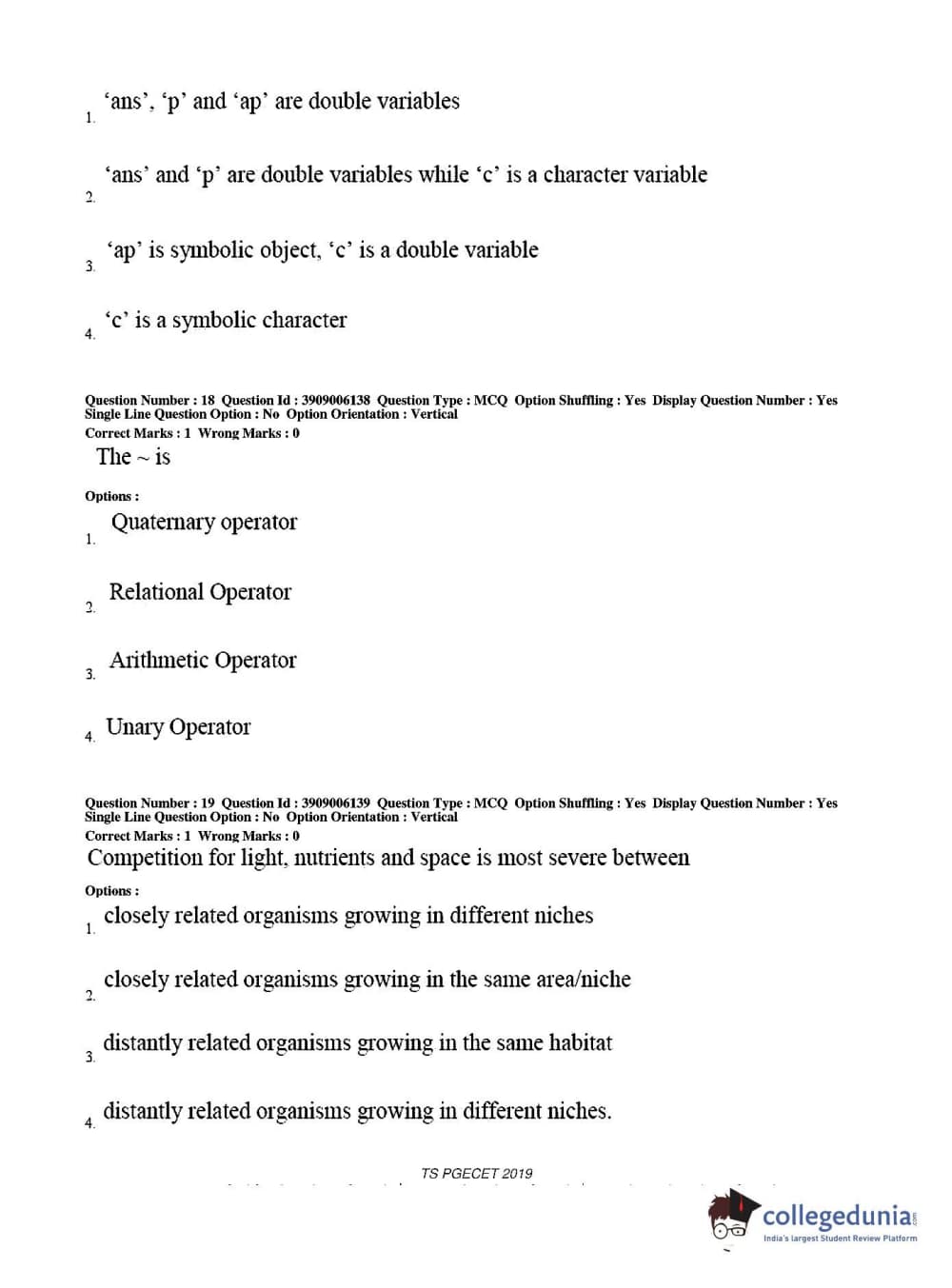 Collegedunia has provided TS PGECET Previous Year Question paper pdf with answer key in the links given below: