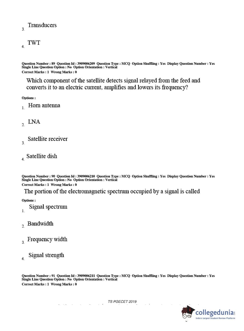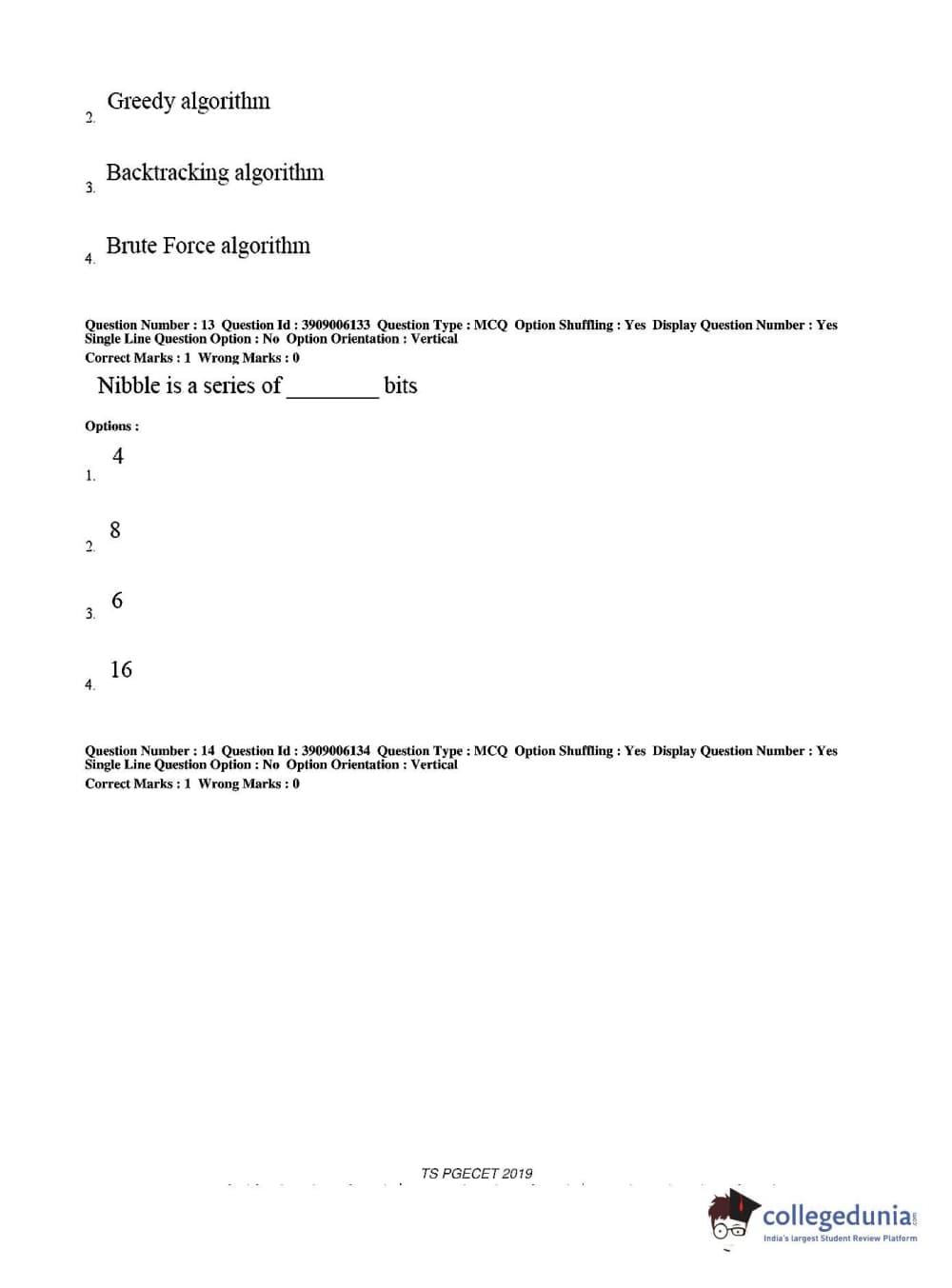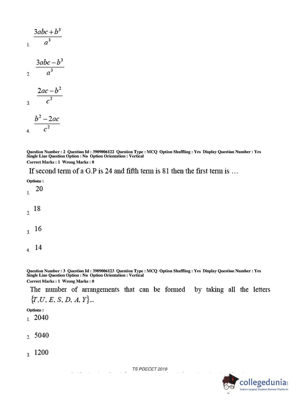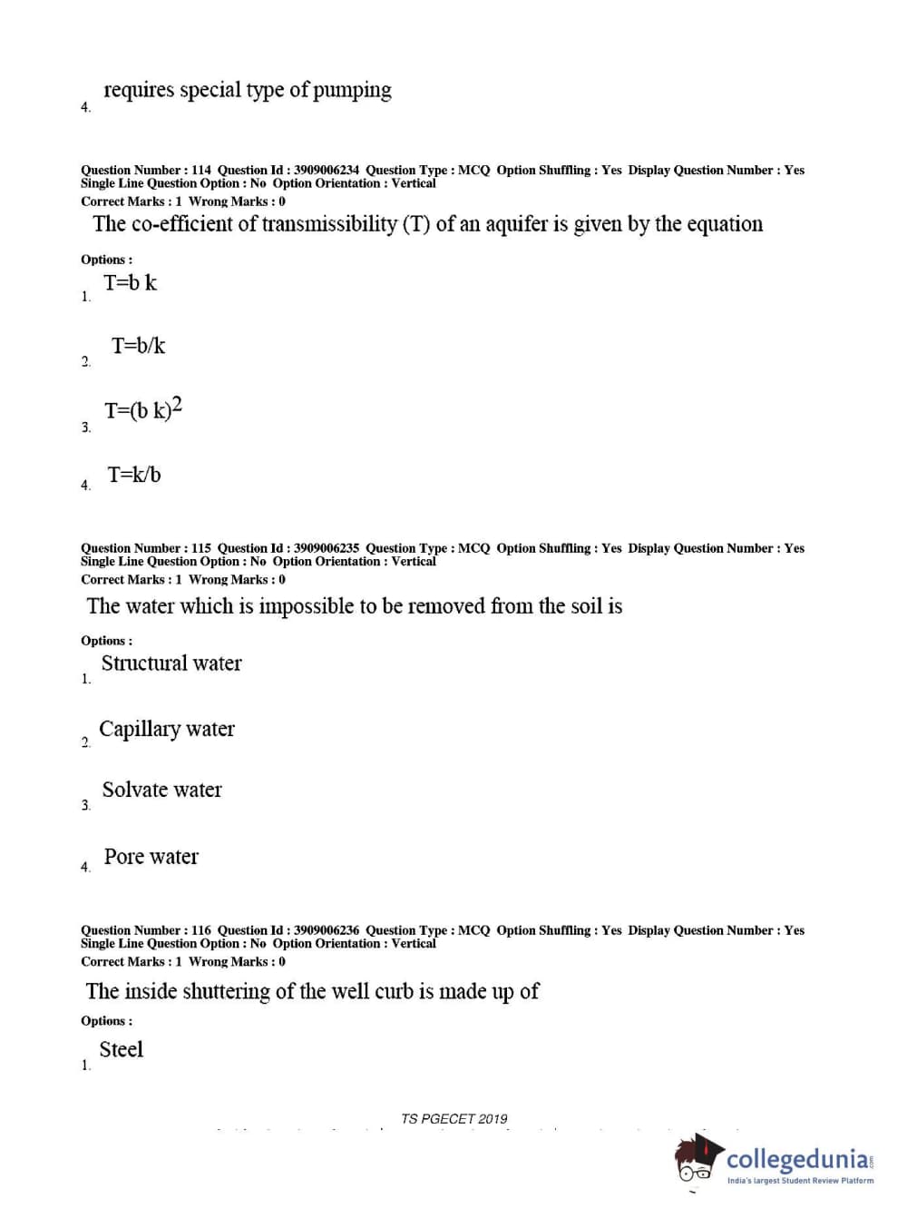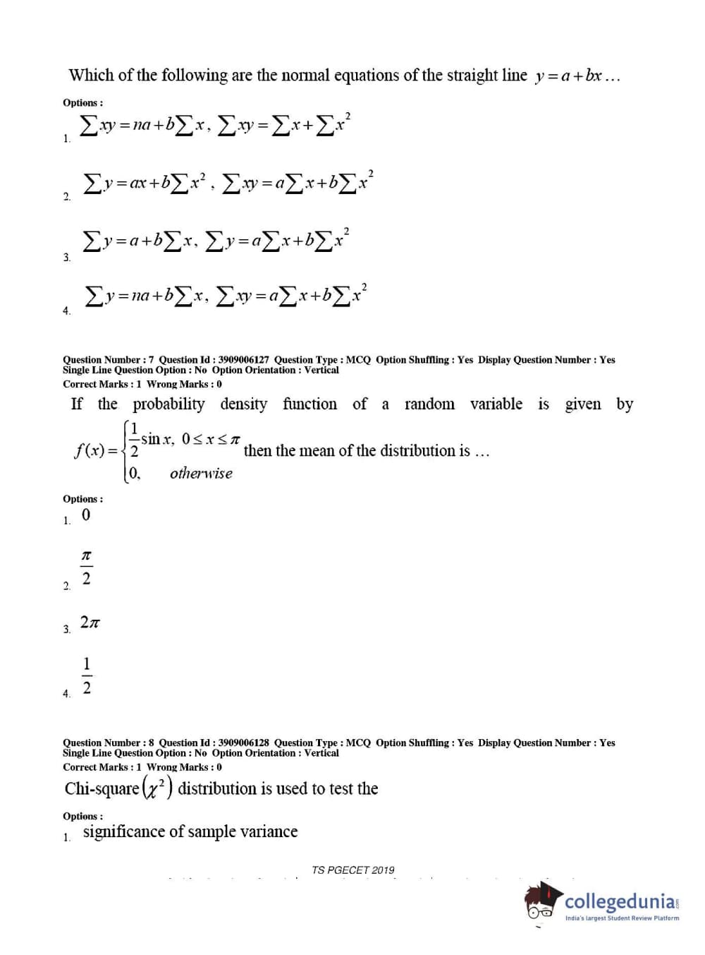 Collegedunia has provided TS PGECET Previous Year Question paper pdf with answer key in the links given below: