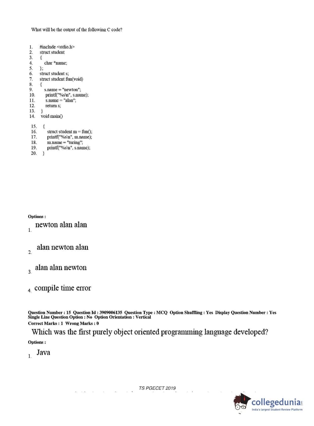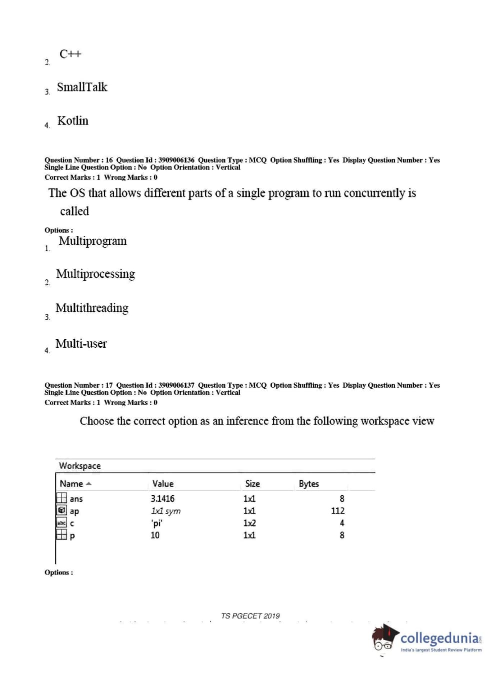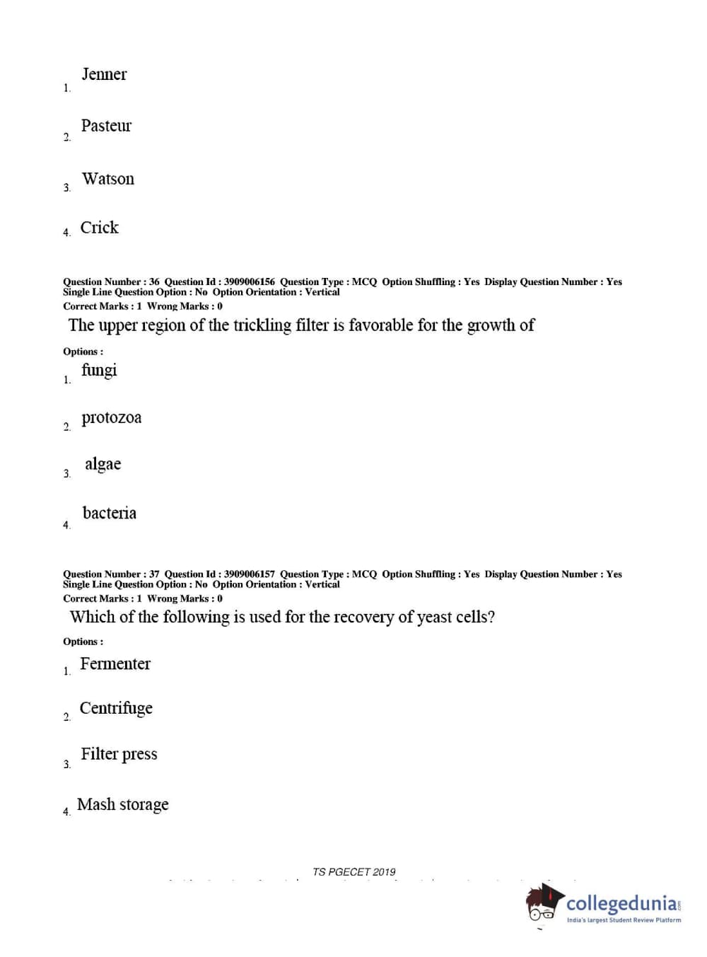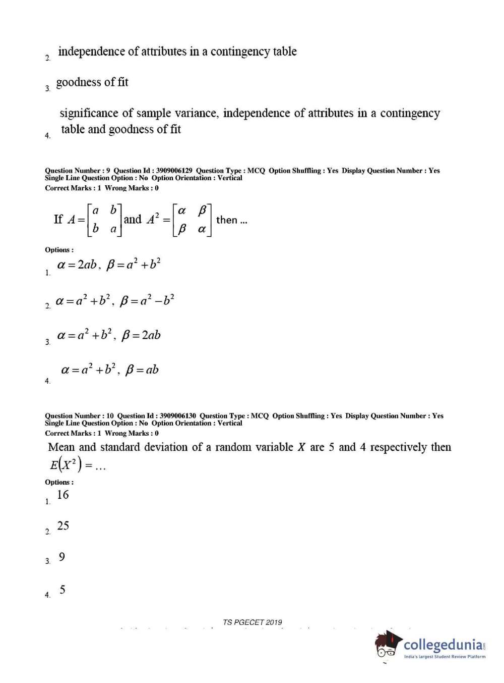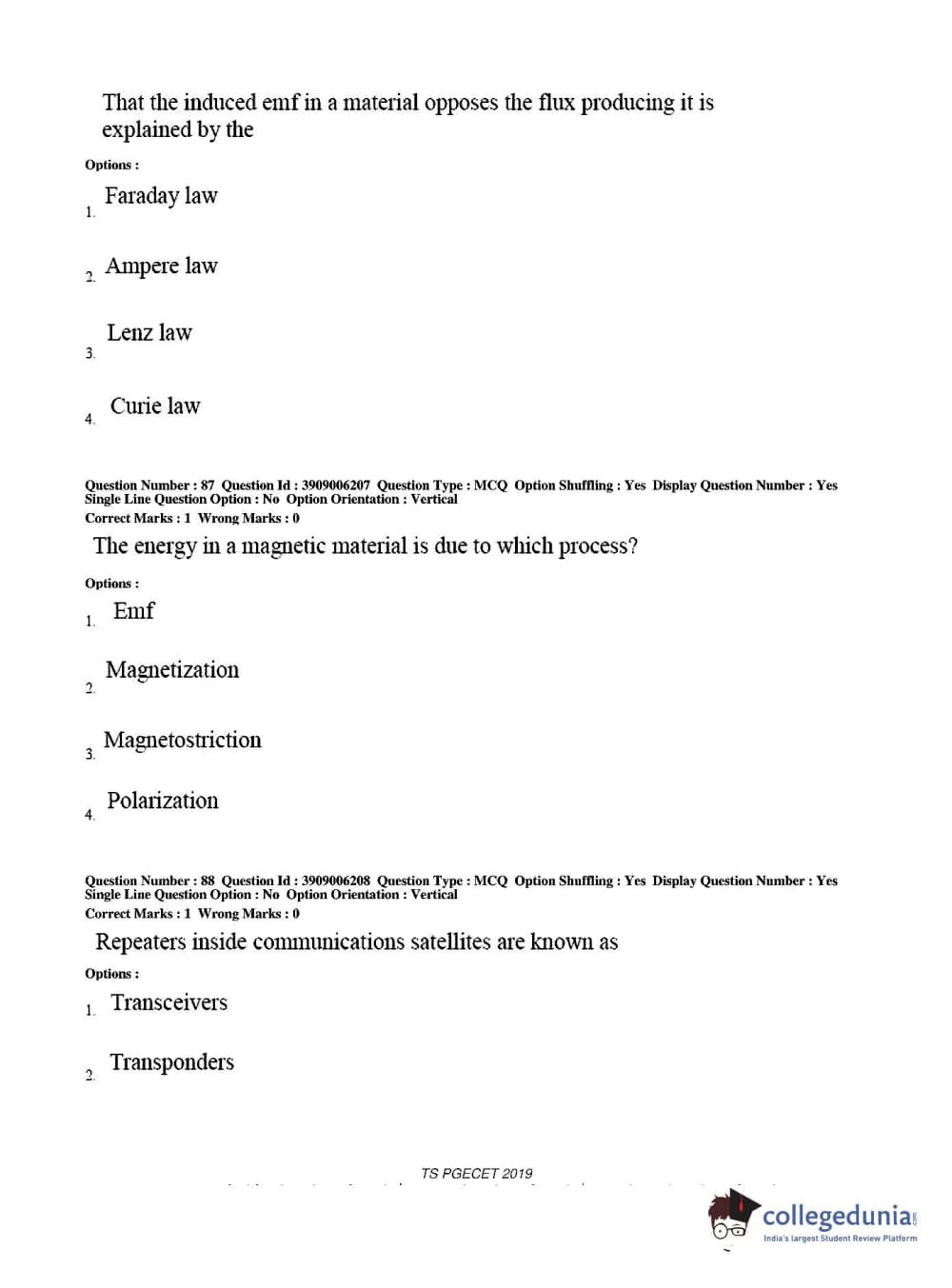Collegedunia has provided TS PGECET Previous Year Question paper pdf with answer key in the links given below: