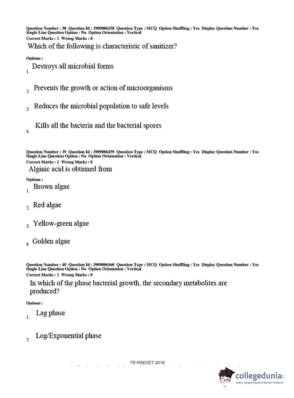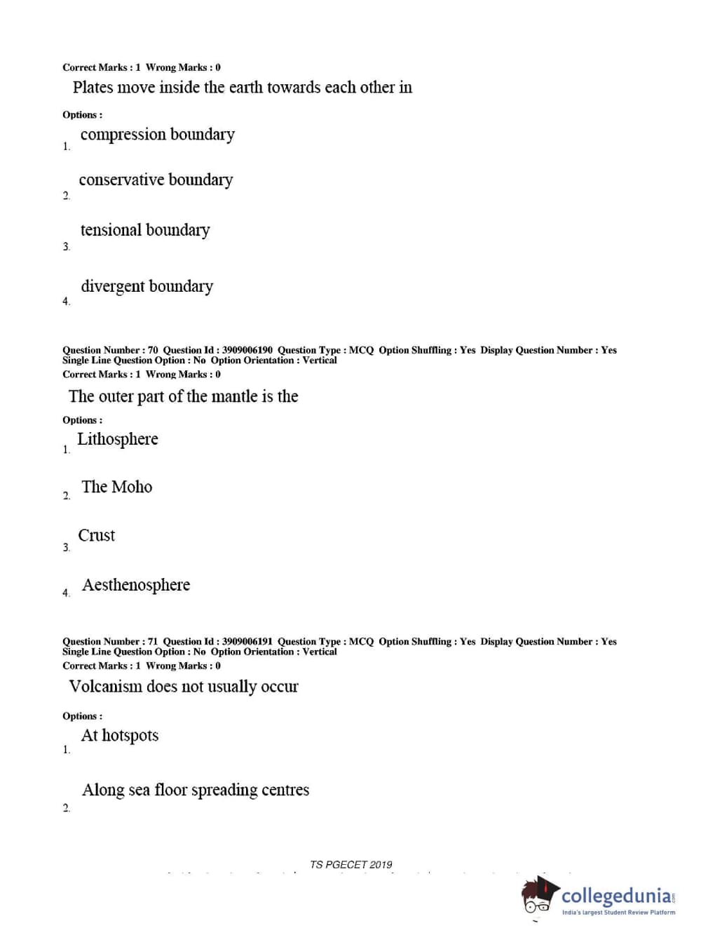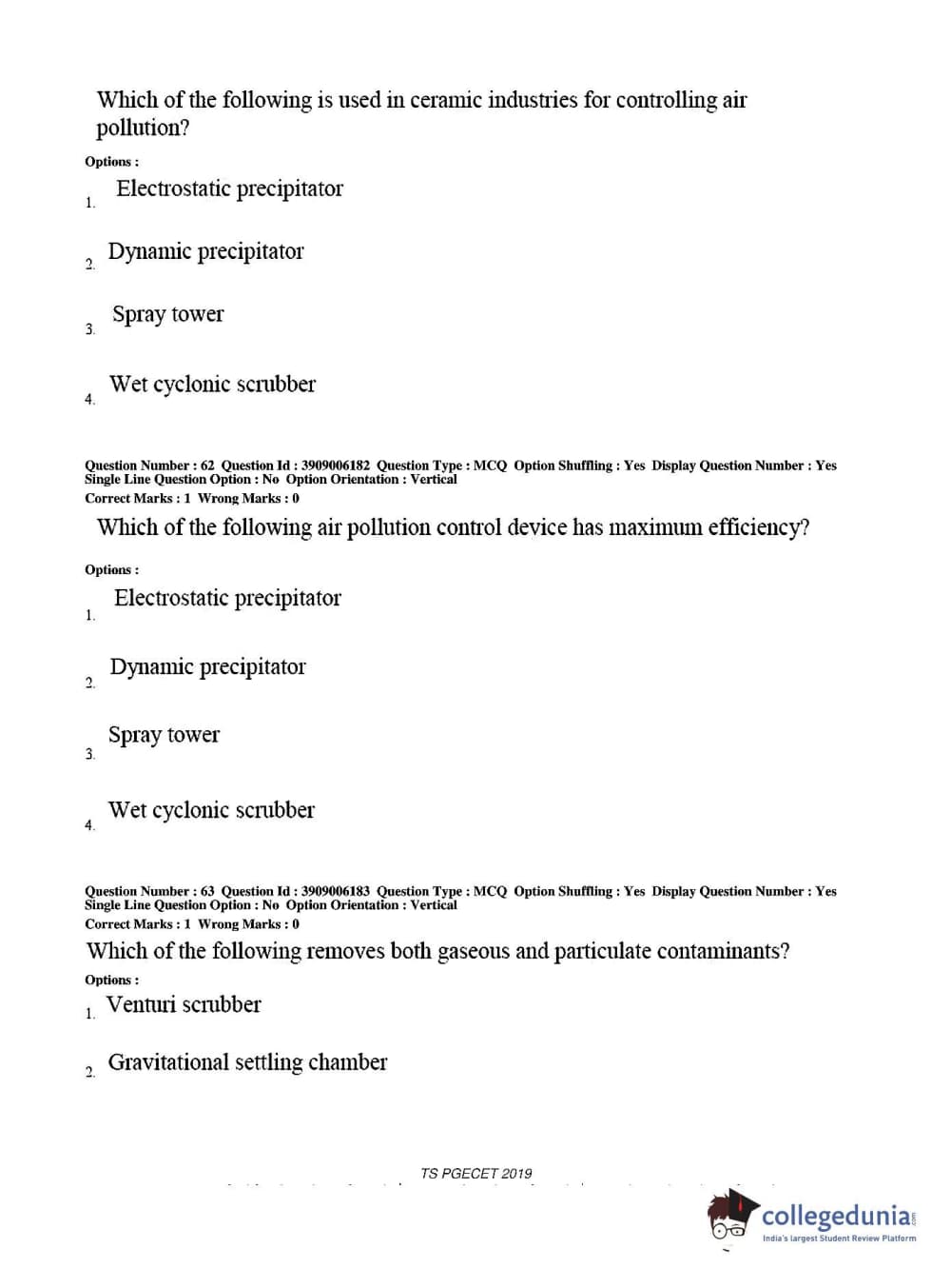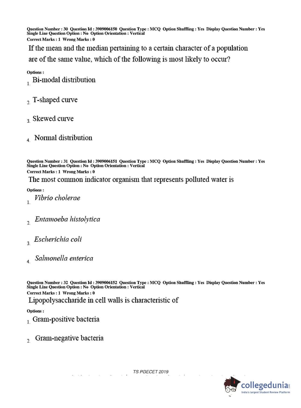 TS PGECET 2019 Environmental Management Question paper with answer key pdf conducted on May 31, 2019 from is available for download. The exam was successfully organized by Osmania University. The question paper comprised a total of 120 questions.
