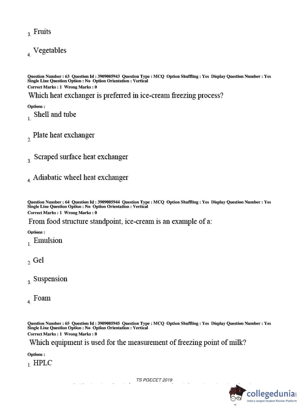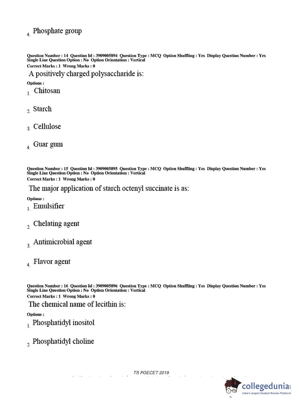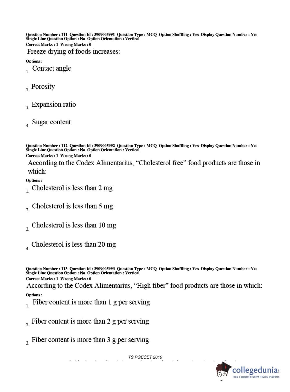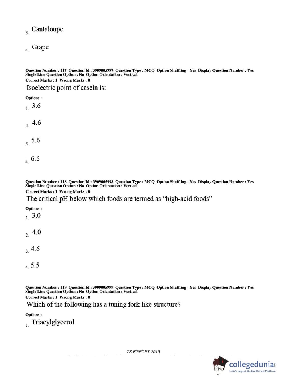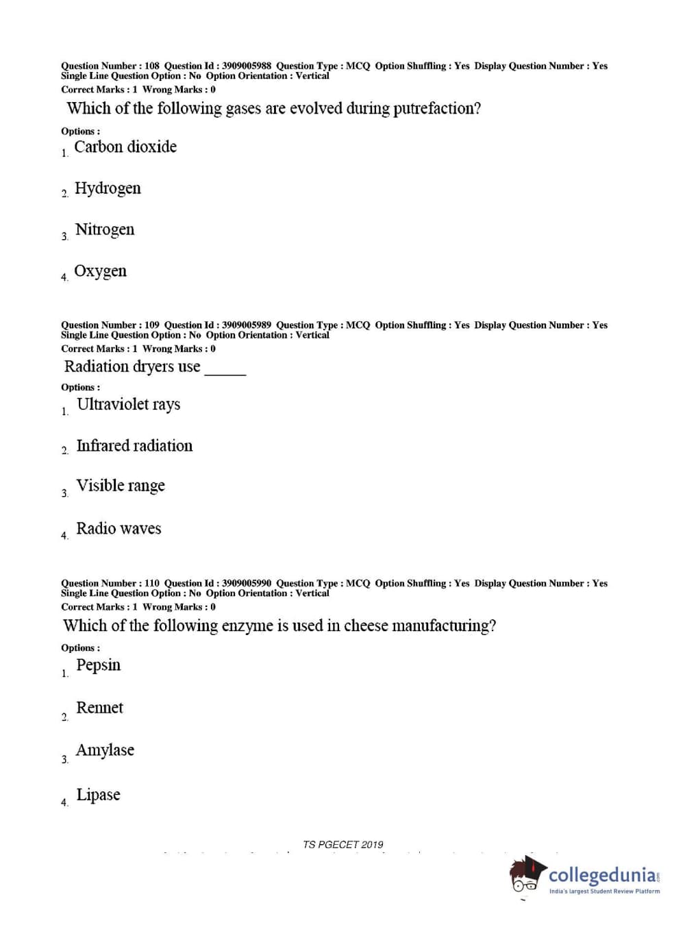TS PGECET 2019 Food Technology Question Paper with Answer Key PDF for Afternoon Session