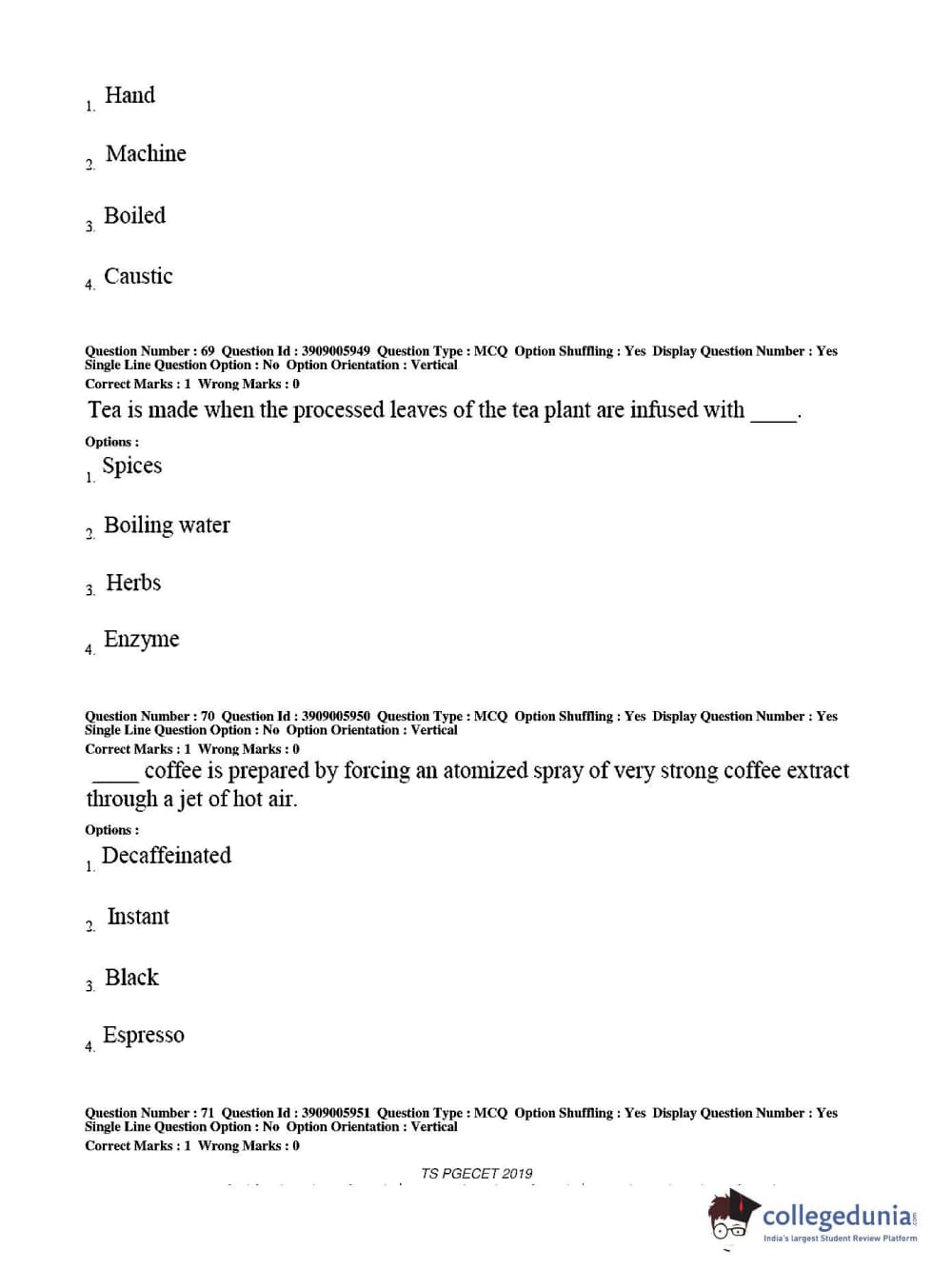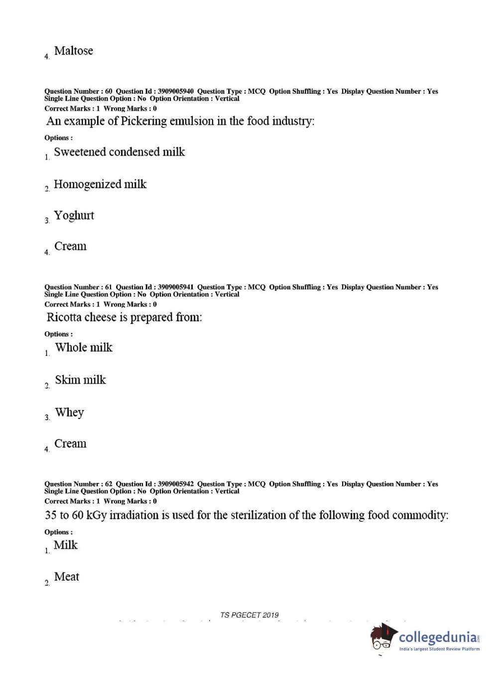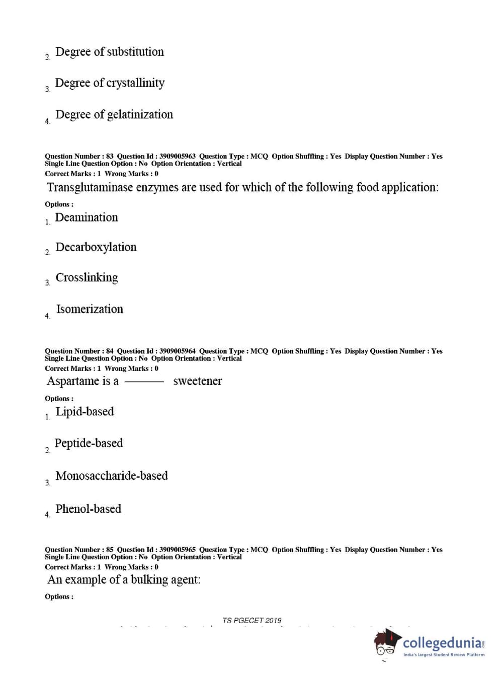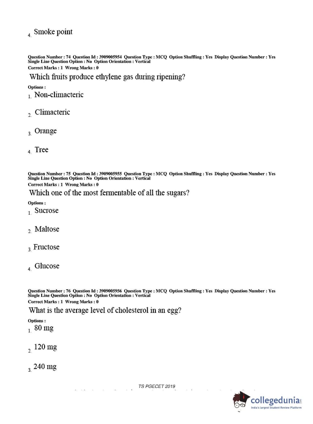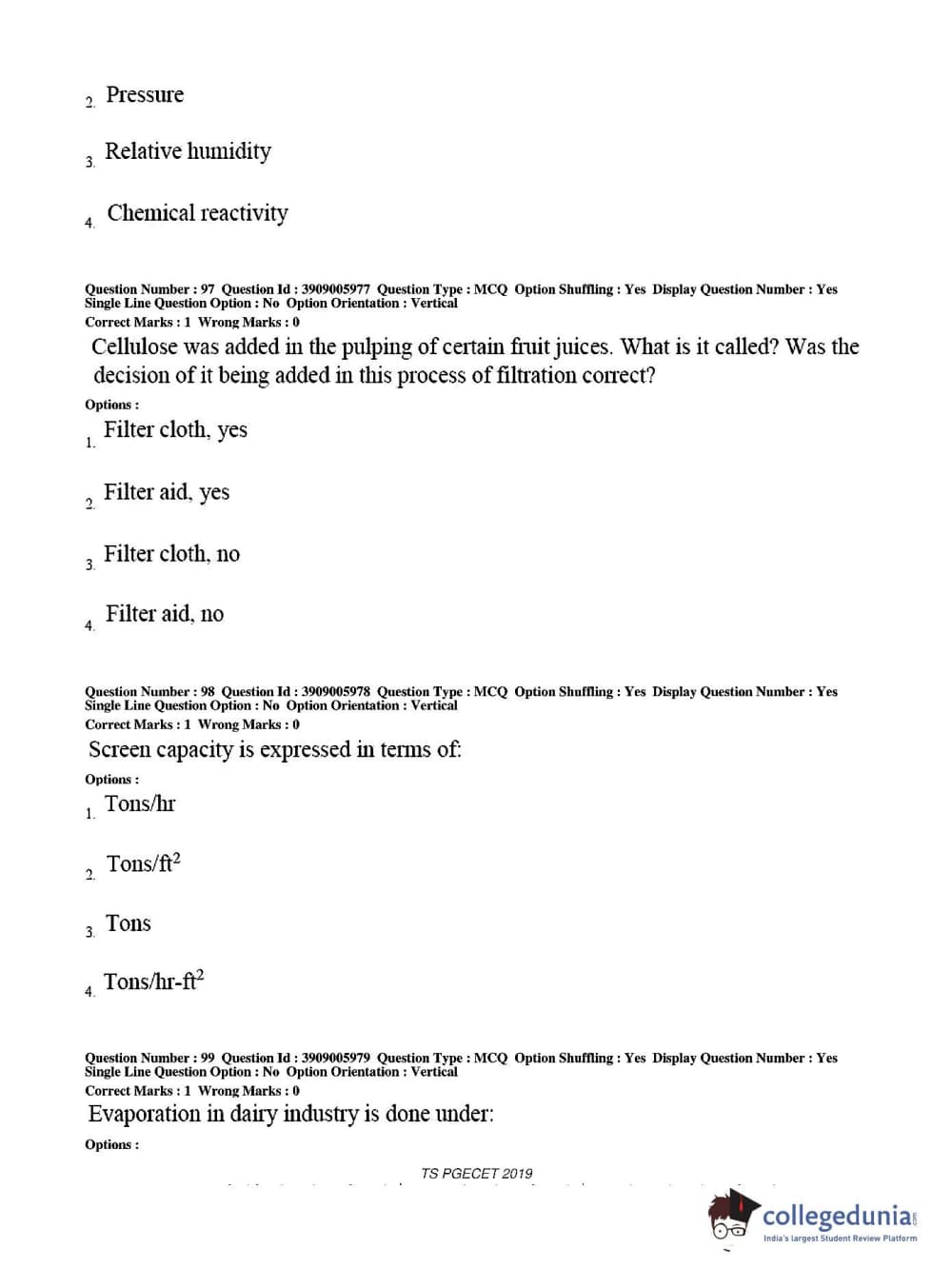 TS PGECET 2019 Food Technology Question Paper with Answer Key PDF for Afternoon Session