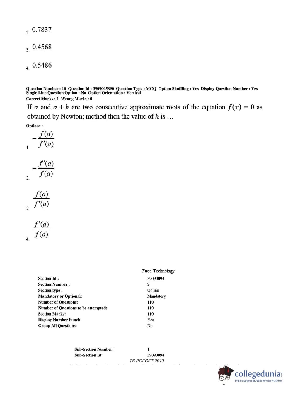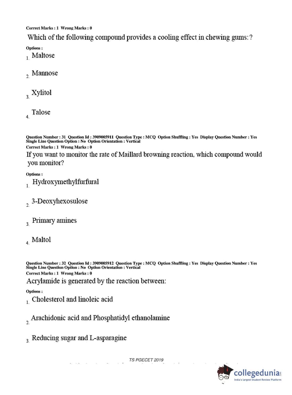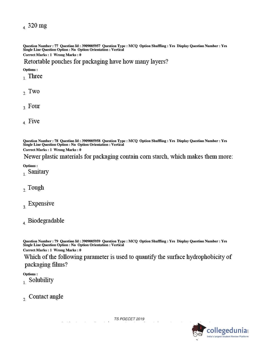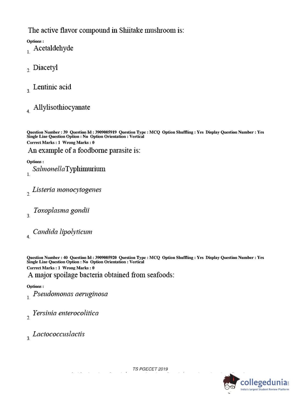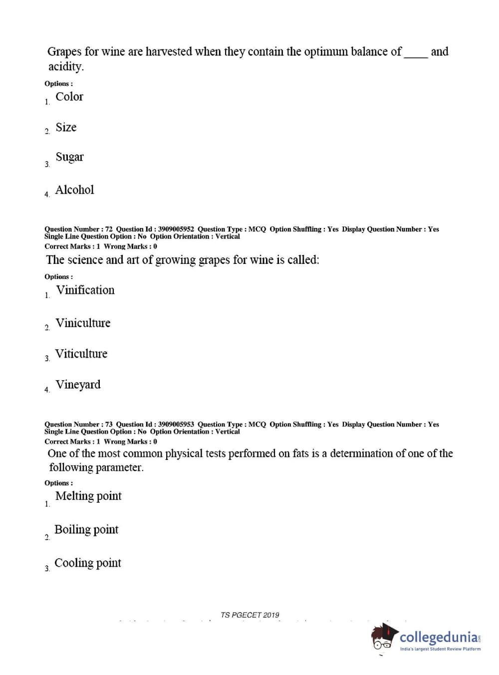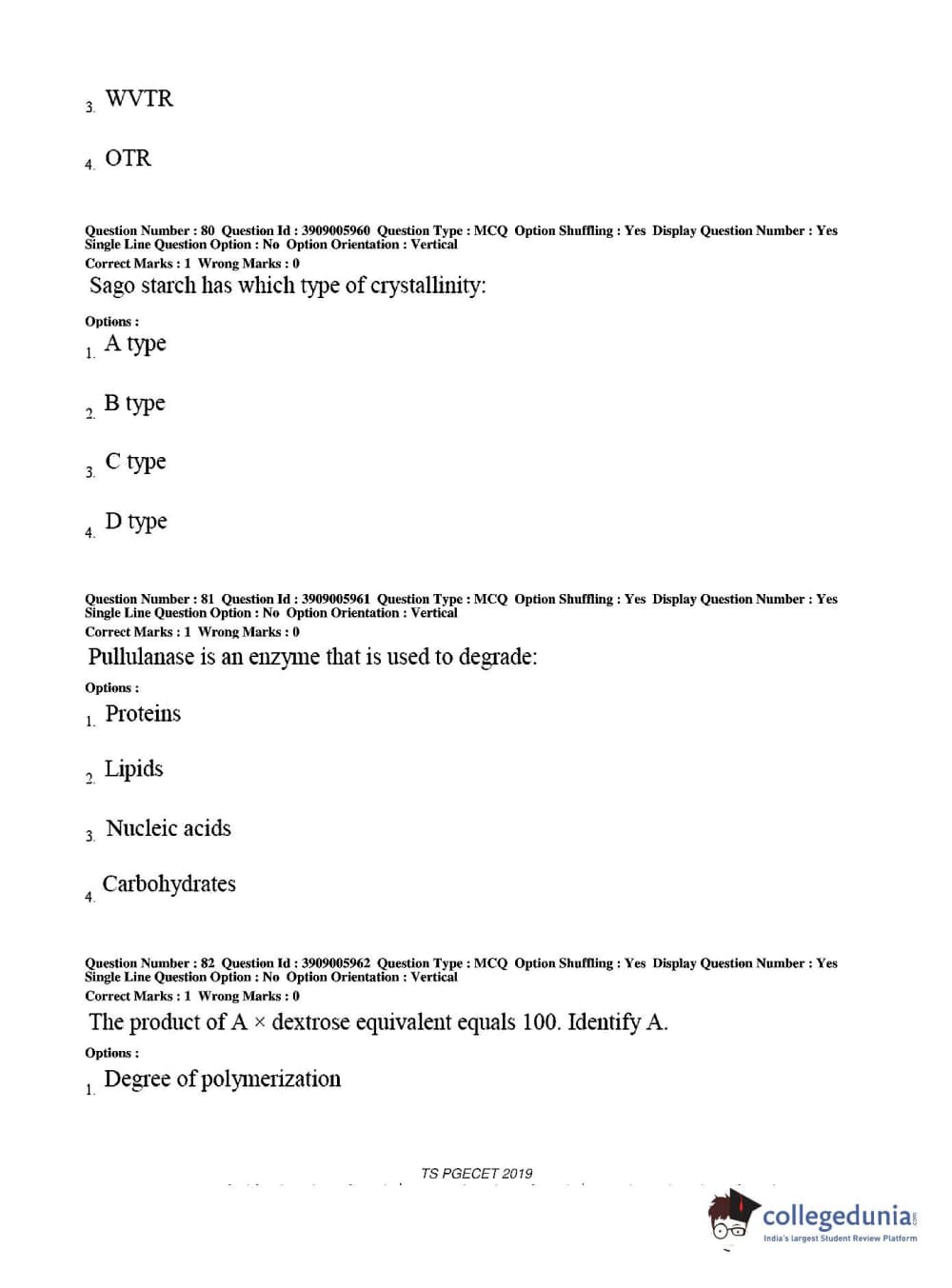 TS PGECET 2019 Food Technology Question Paper with Answer Key PDF for Afternoon Session
