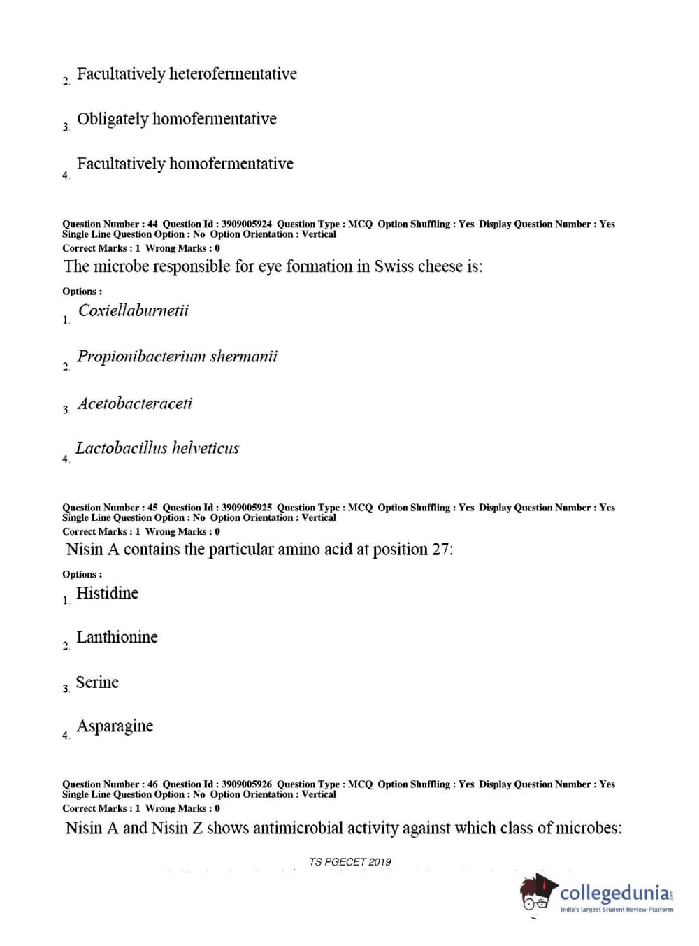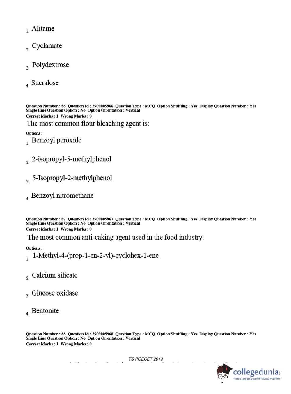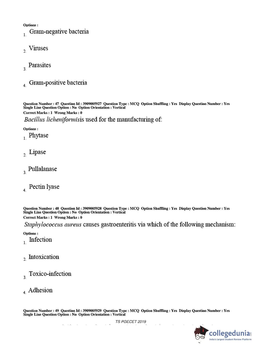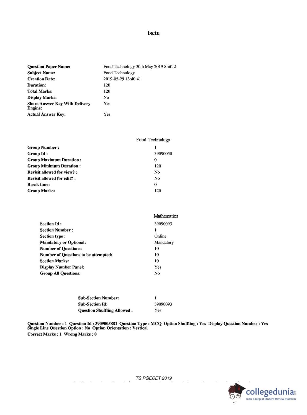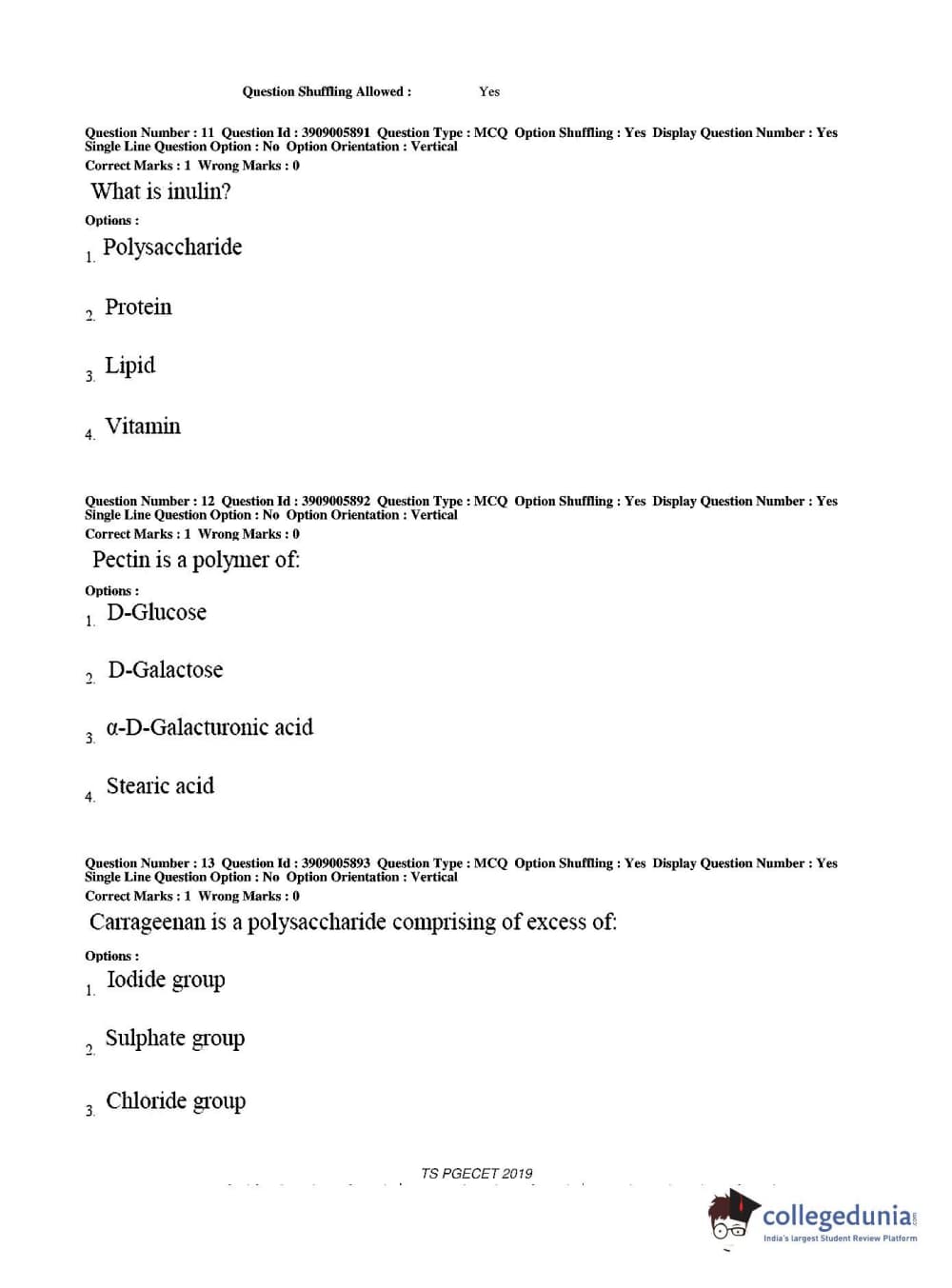 TS PGECET 2019 Food Technology Question Paper with Answer Key PDF for Afternoon Session