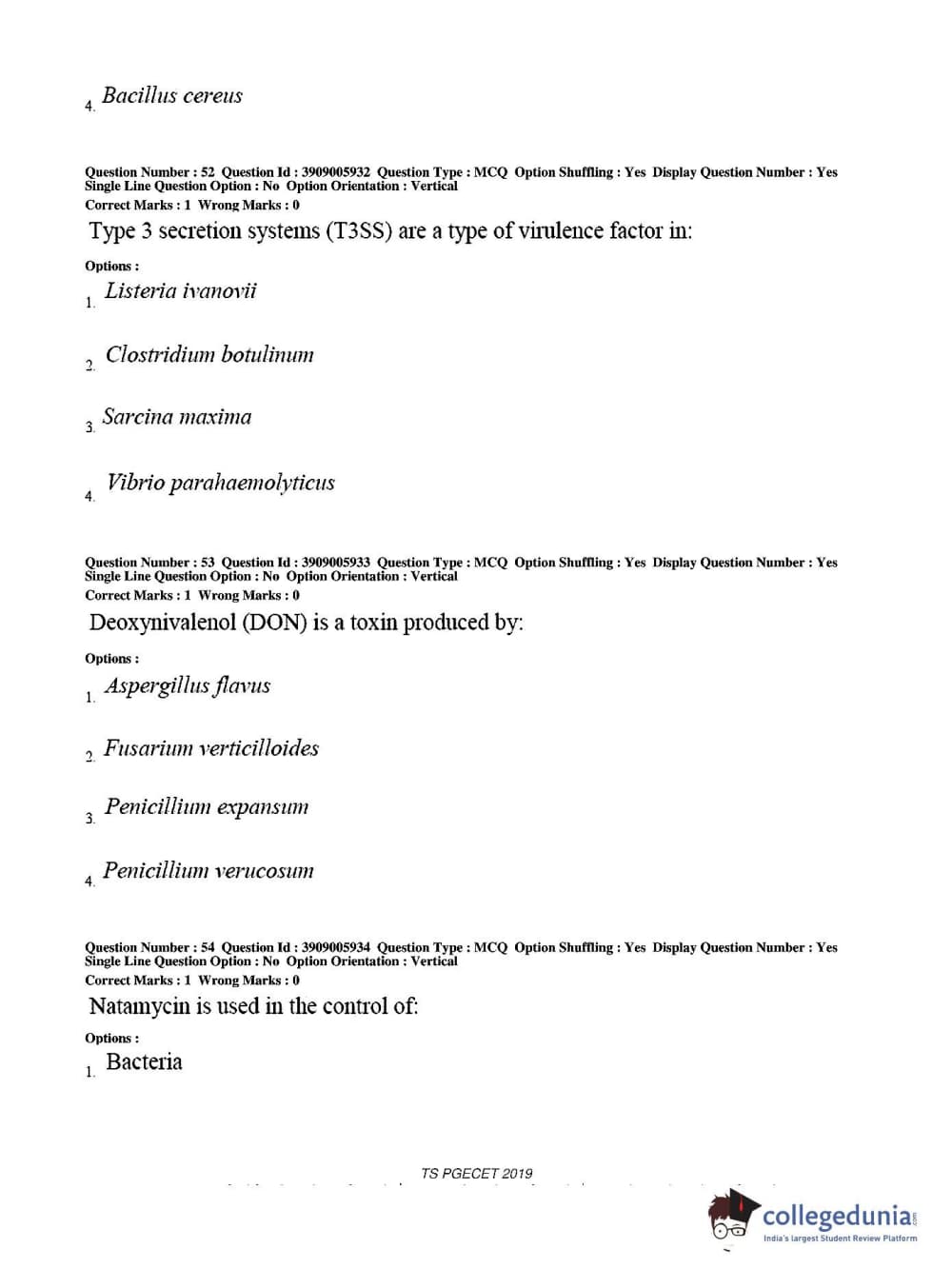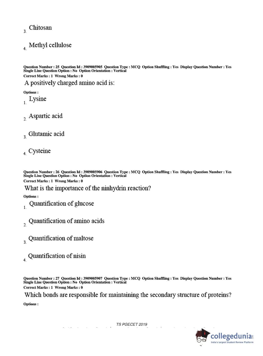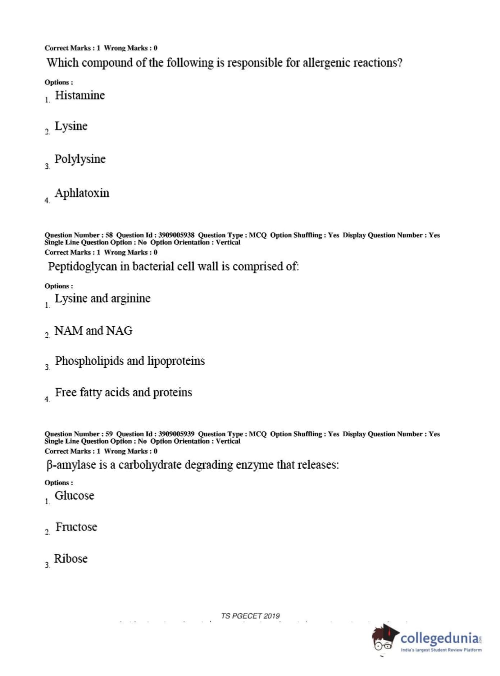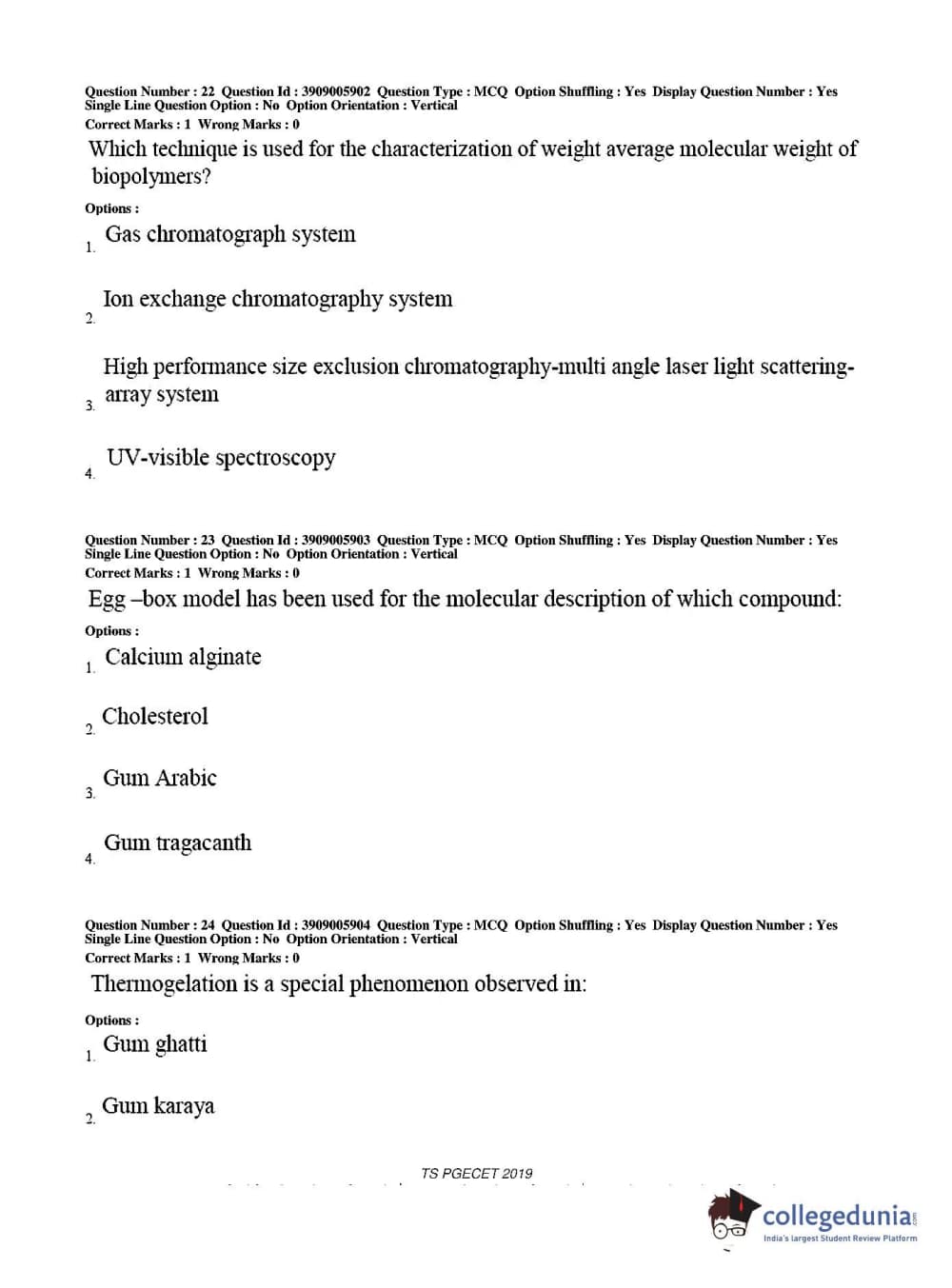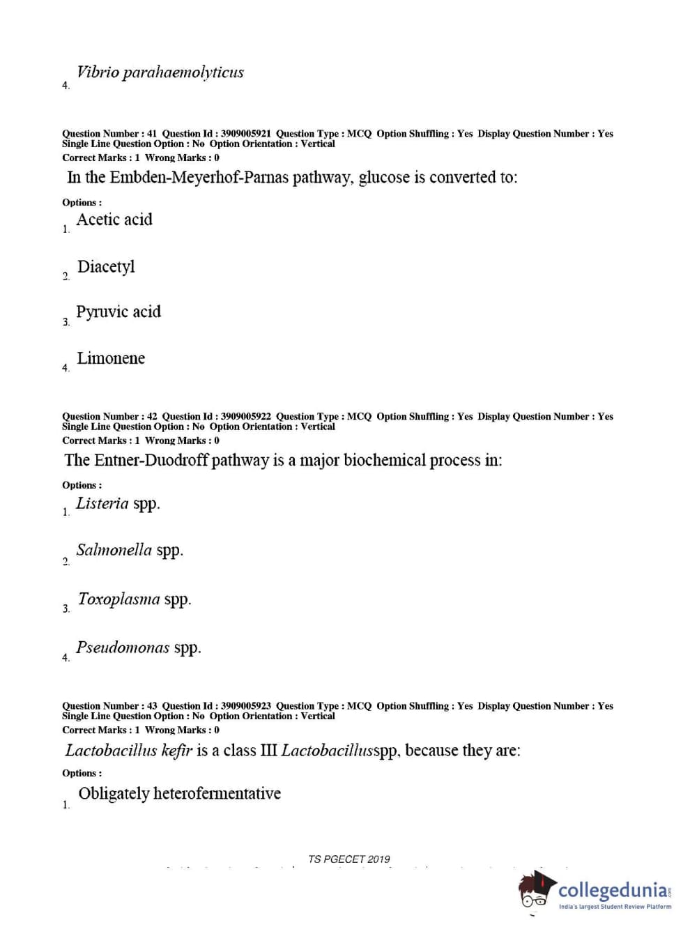 TS PGECET 2019 Food Technology Question Paper with Answer Key PDF for Afternoon Session