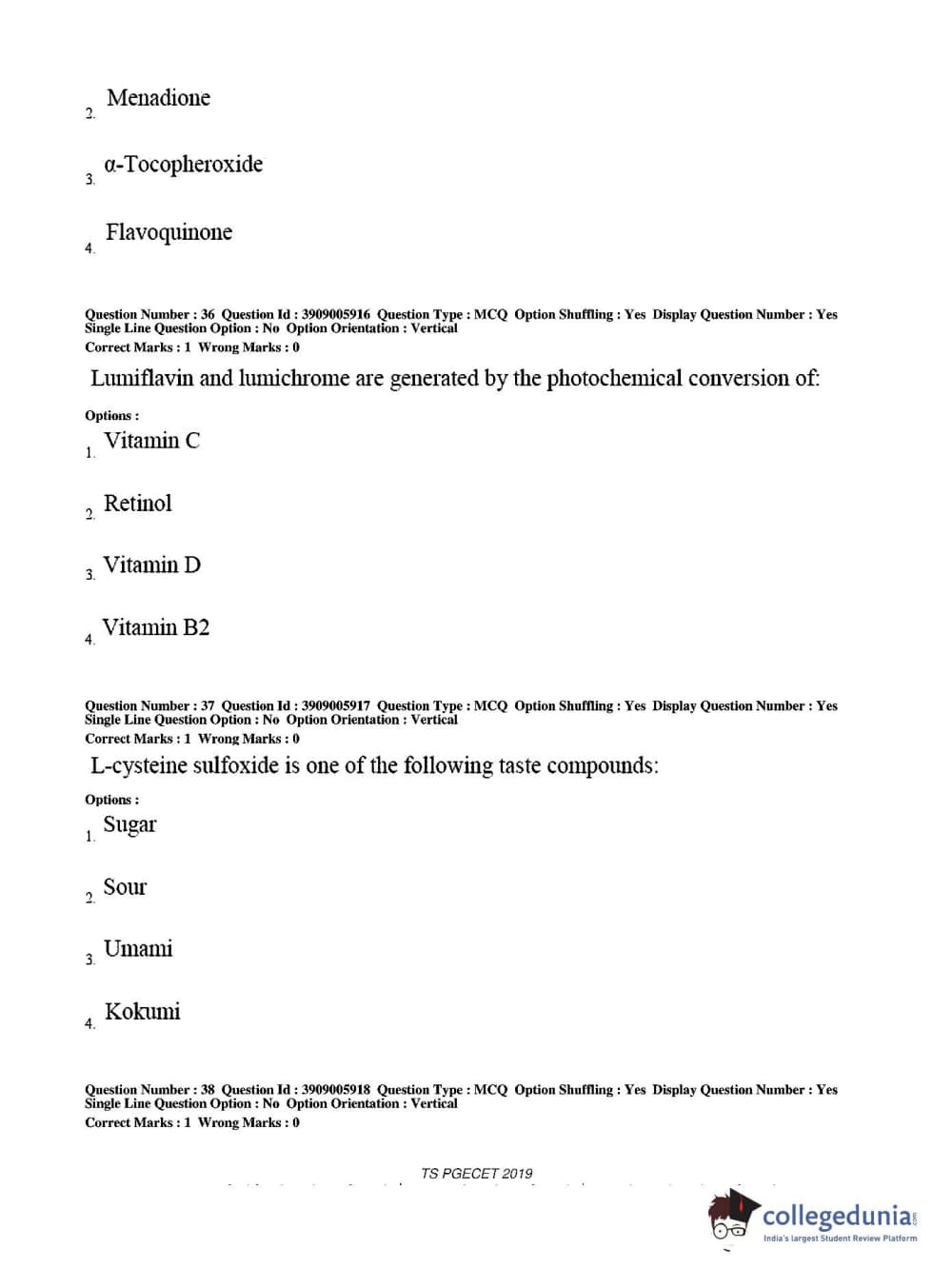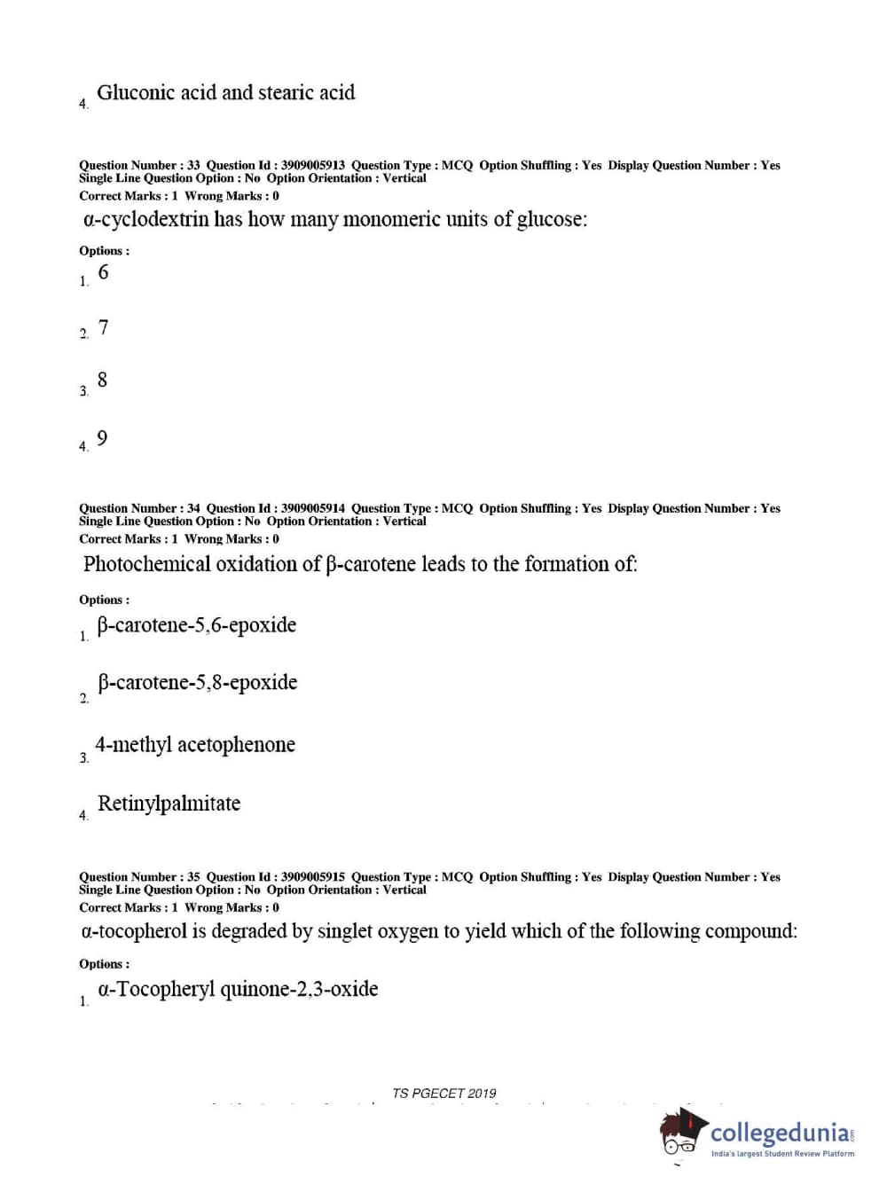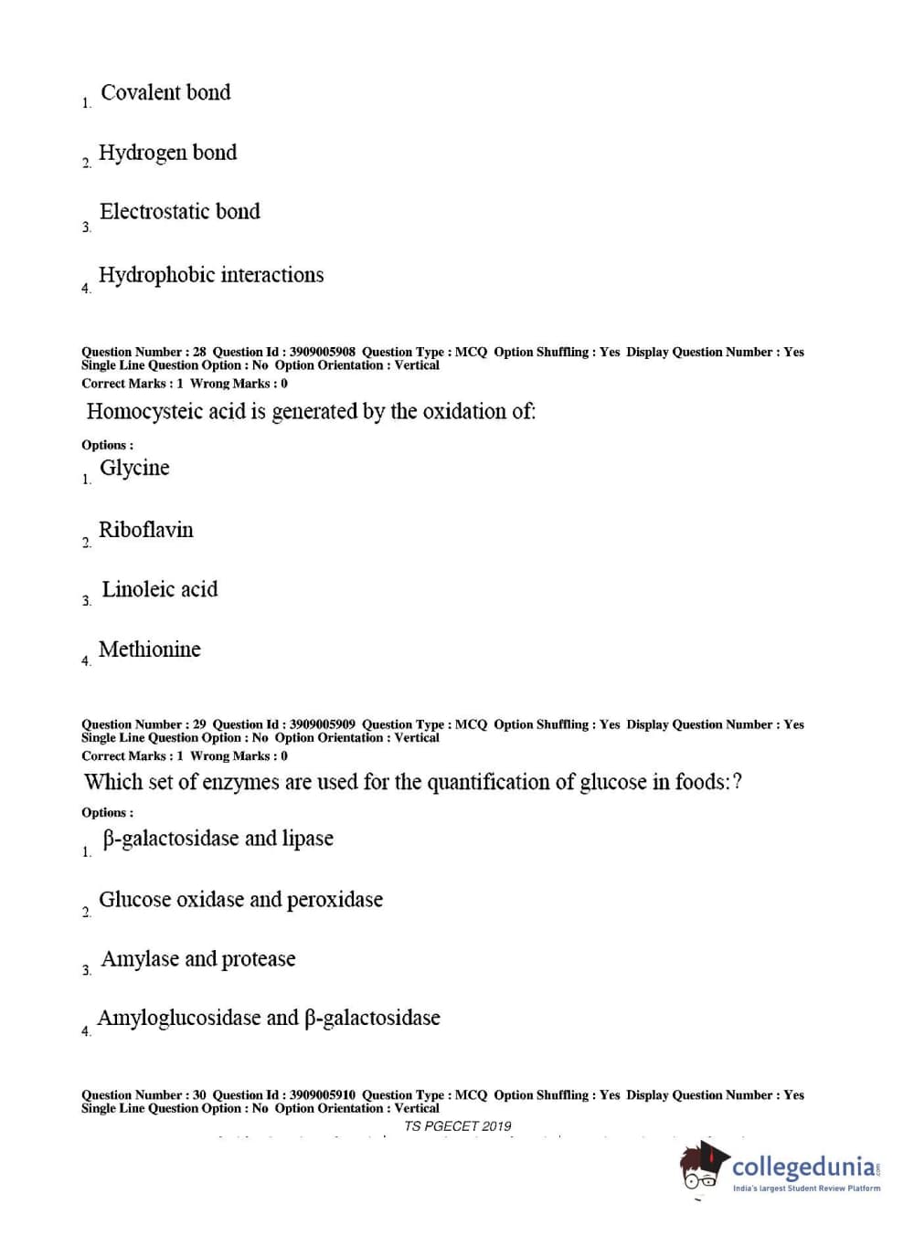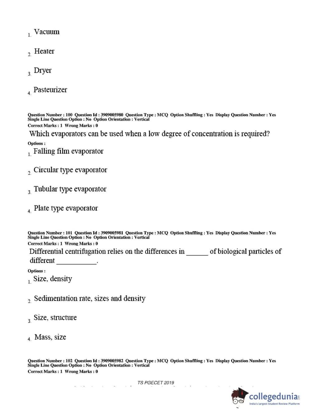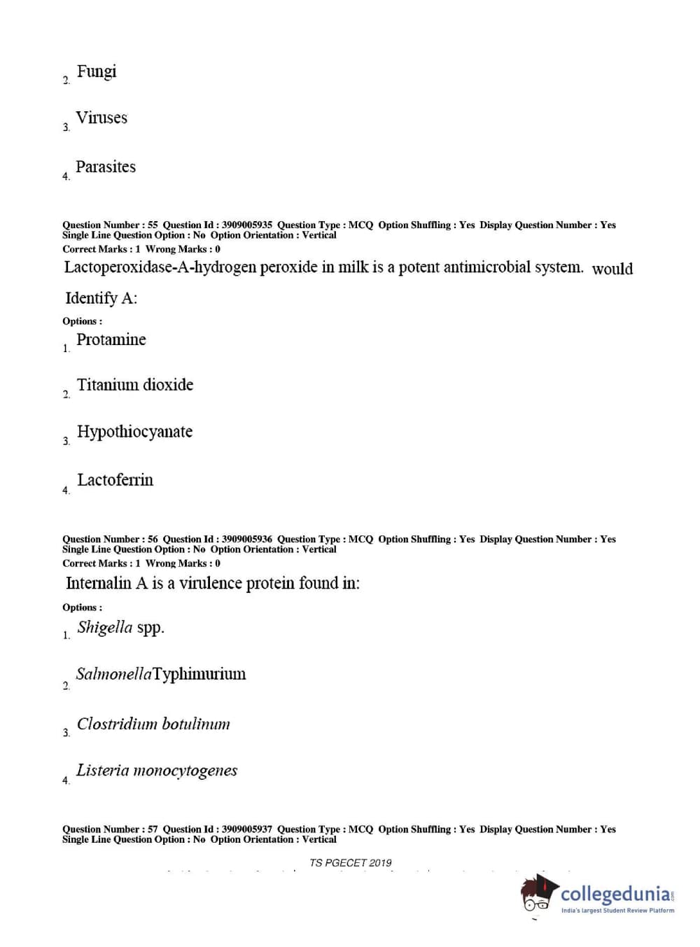 TS PGECET 2019 Food Technology Question Paper with Answer Key PDF for Afternoon Session