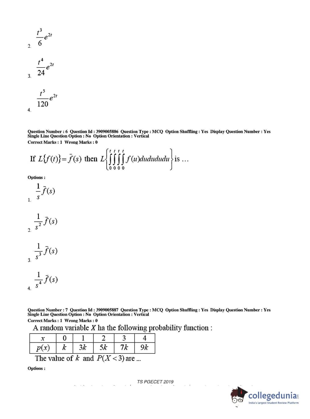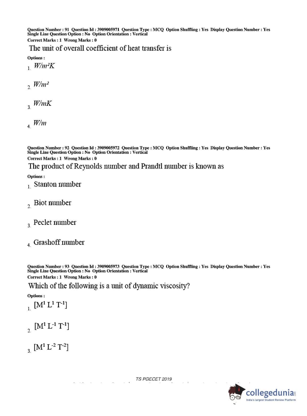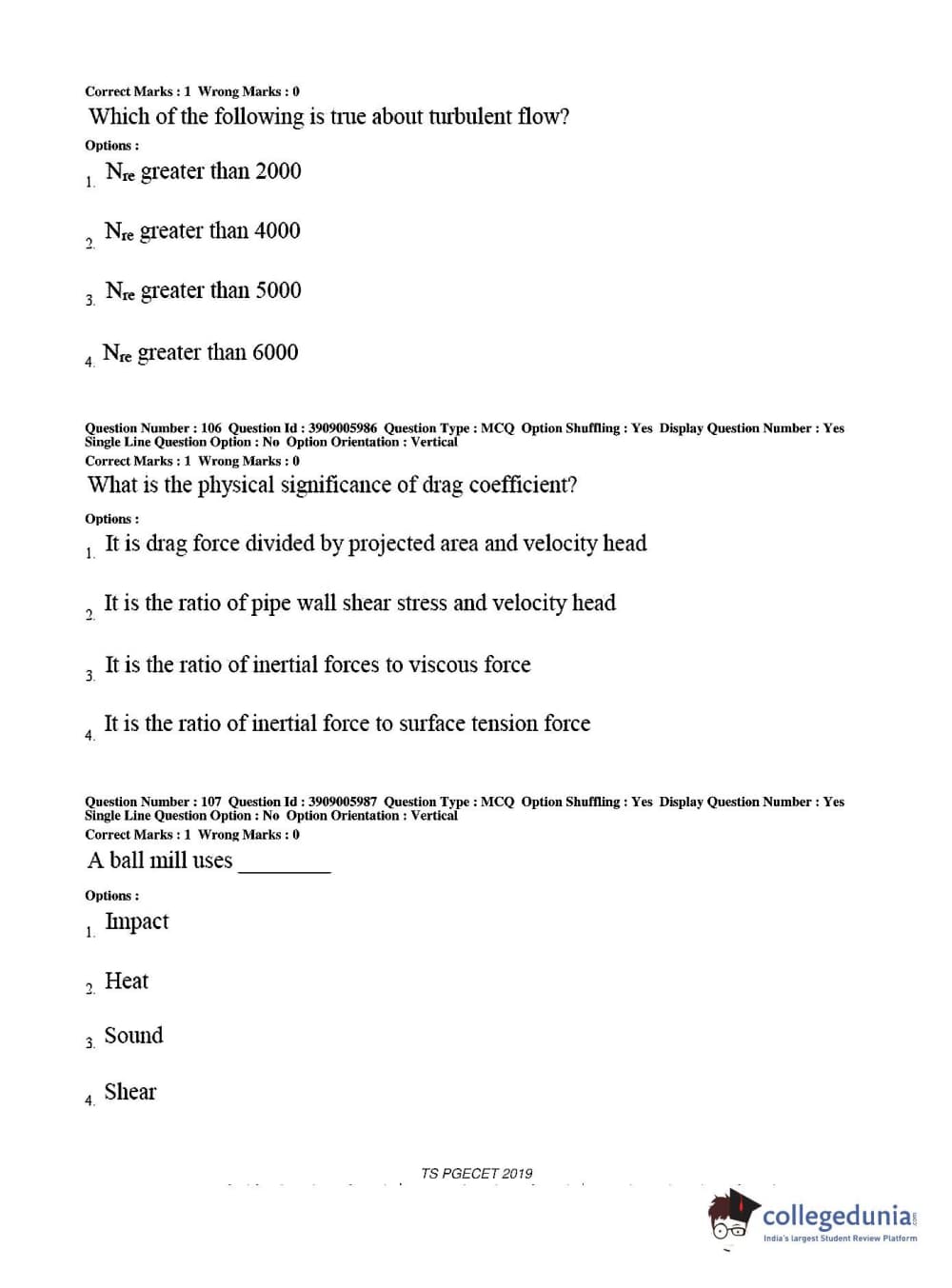 Collegedunia has provided TS PGECET Previous Year Question paper pdf with answer key in the links given below: