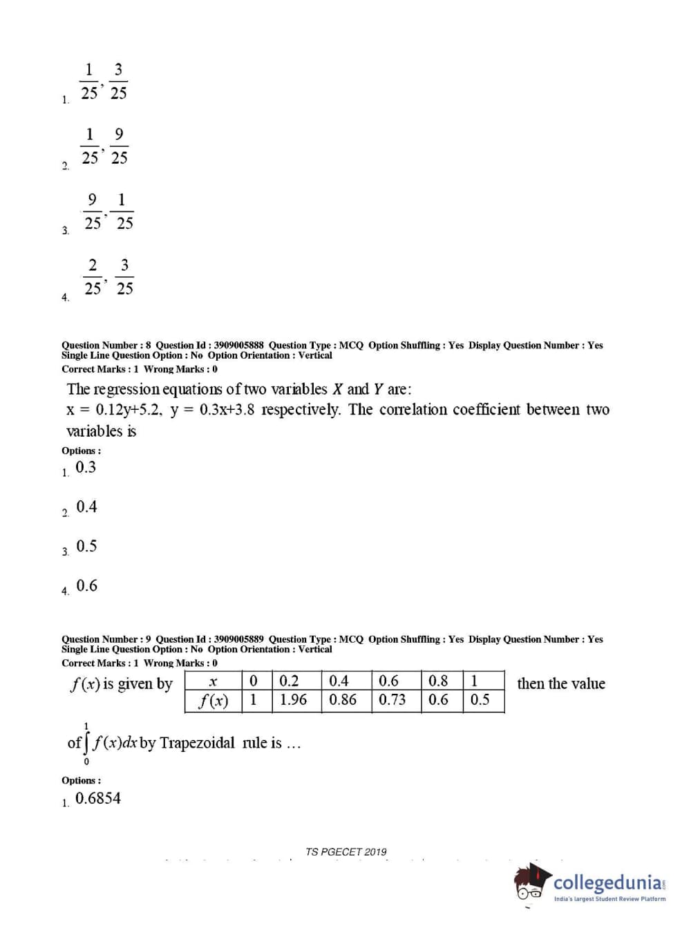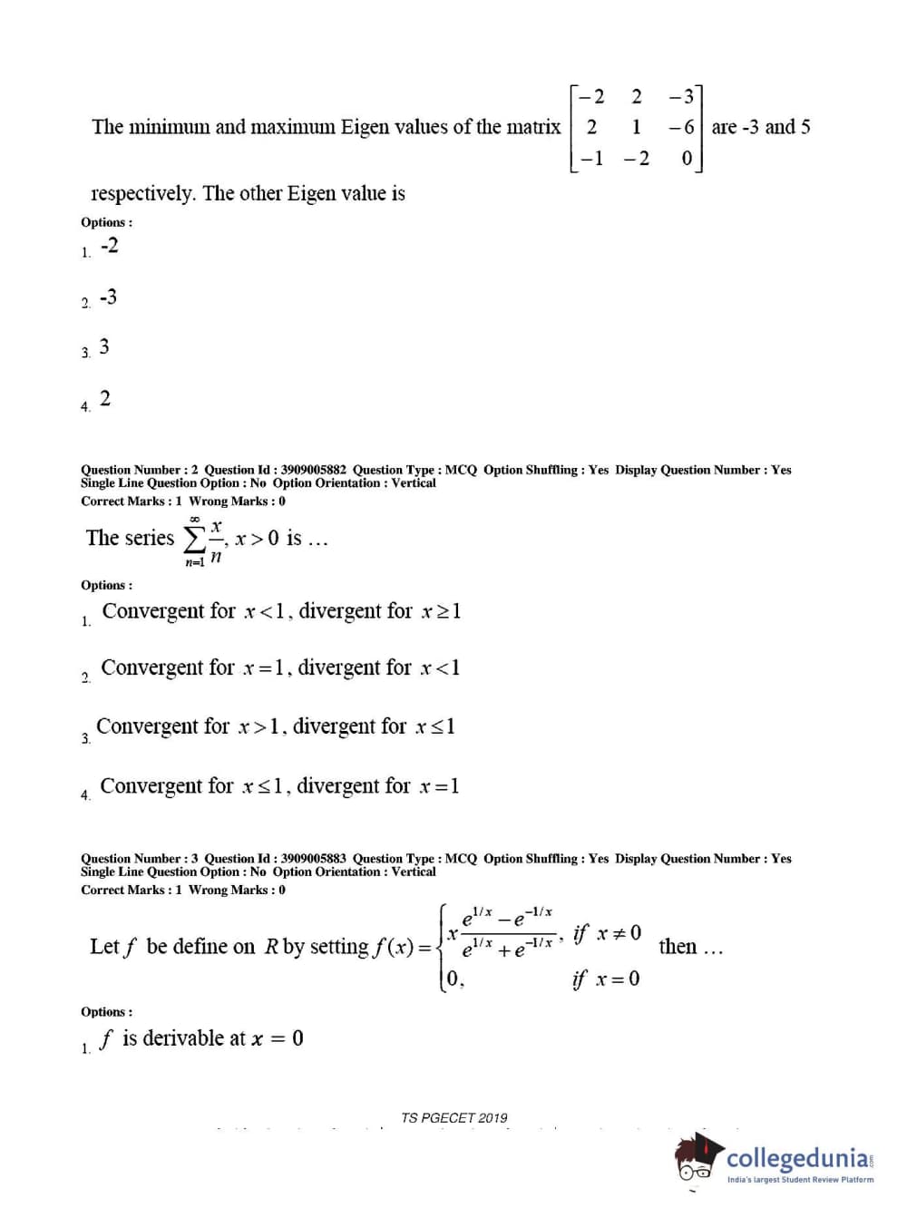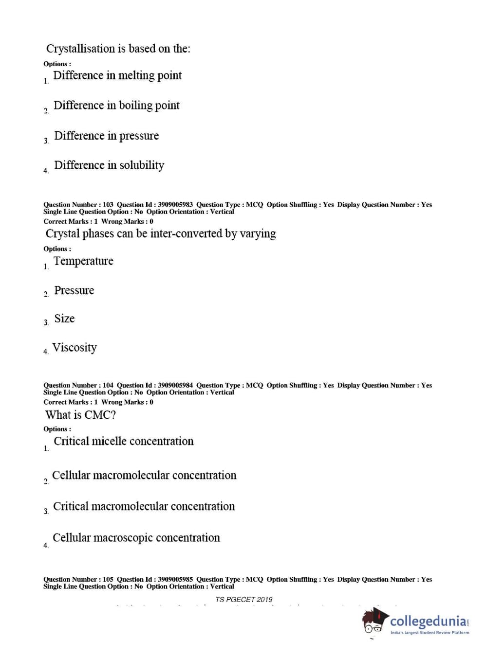 Collegedunia has provided TS PGECET Previous Year Question paper pdf with answer key in the links given below: