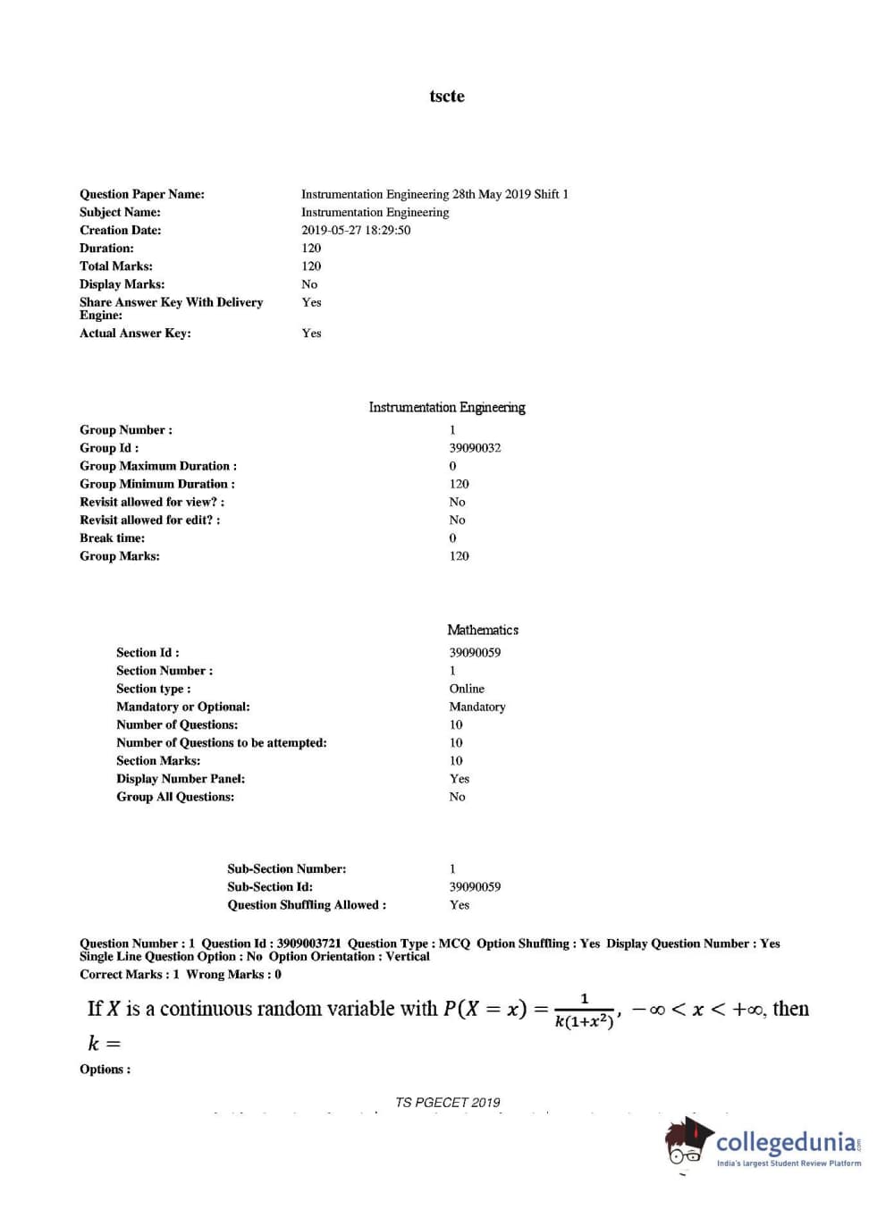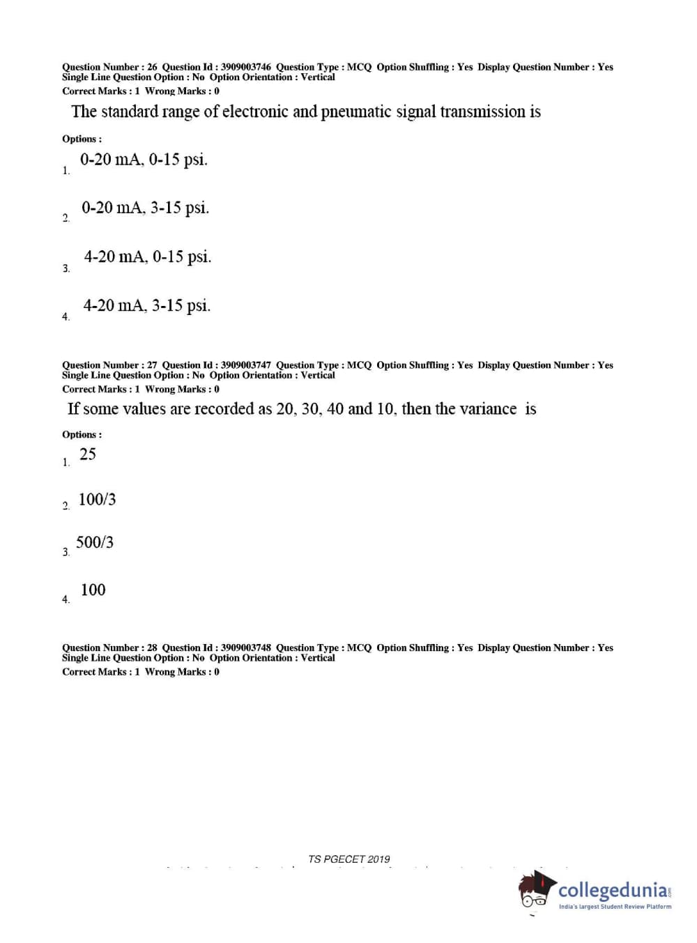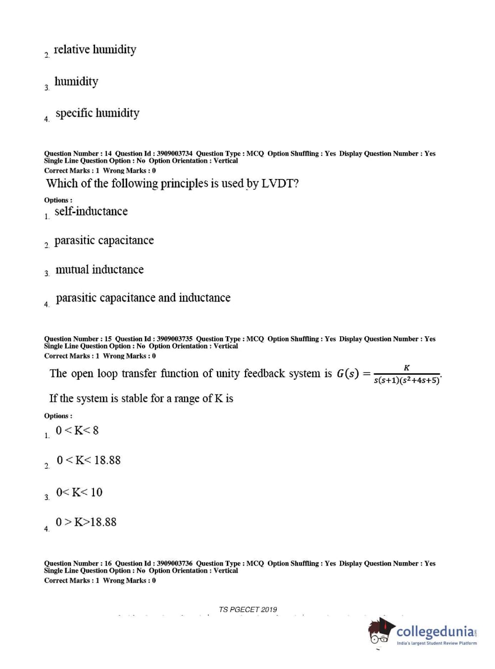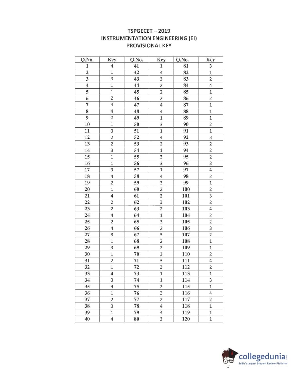 | TS PGECET 2019 Instrumentation Engineering Question Paper PDF | TS PGECET 2019 Instrumentation Engineering Answer Key PDF |