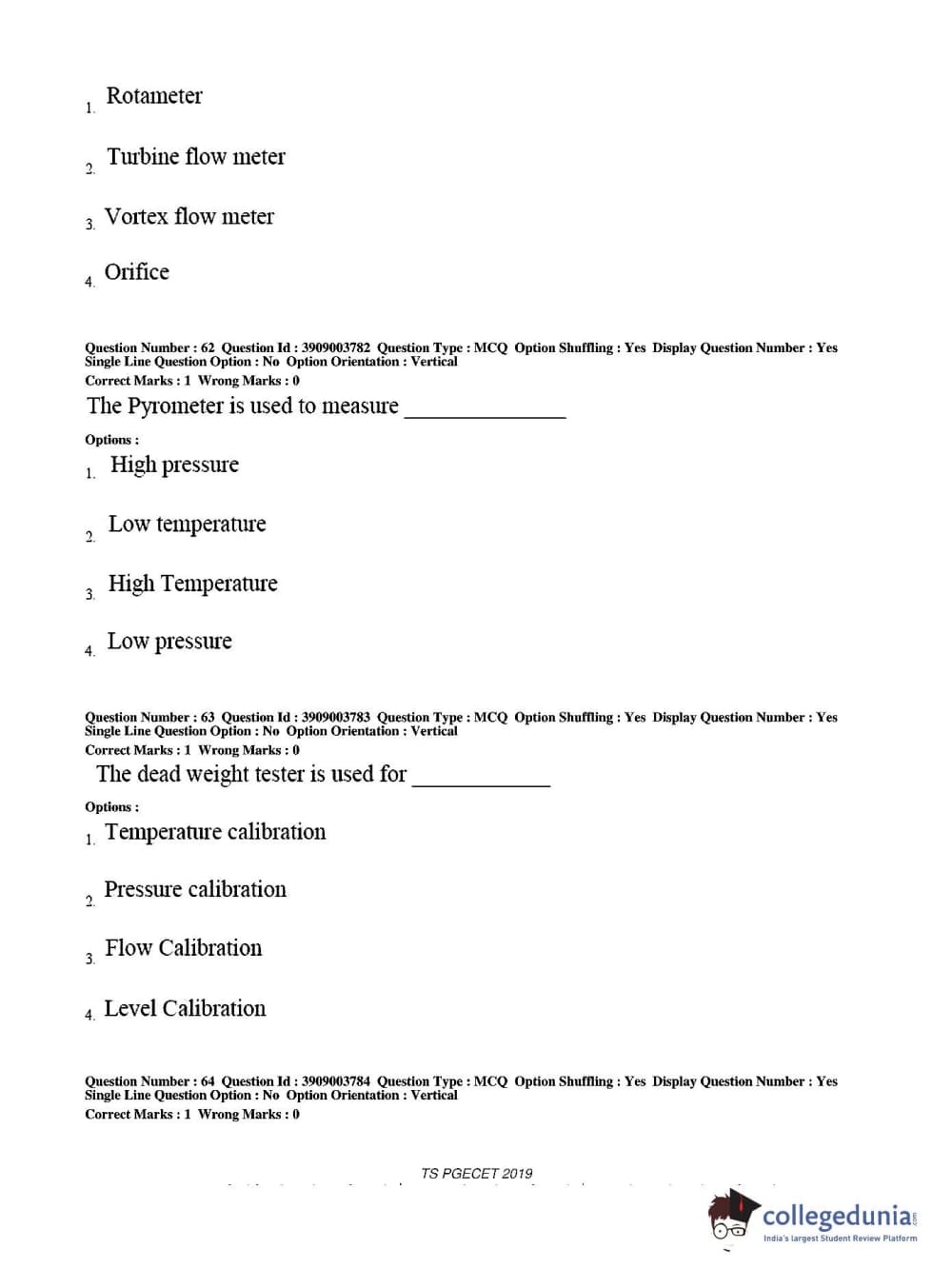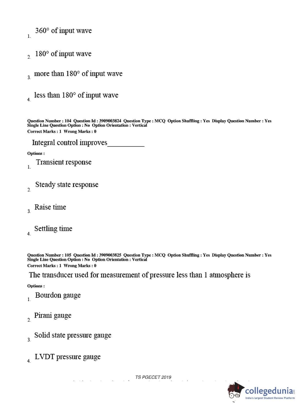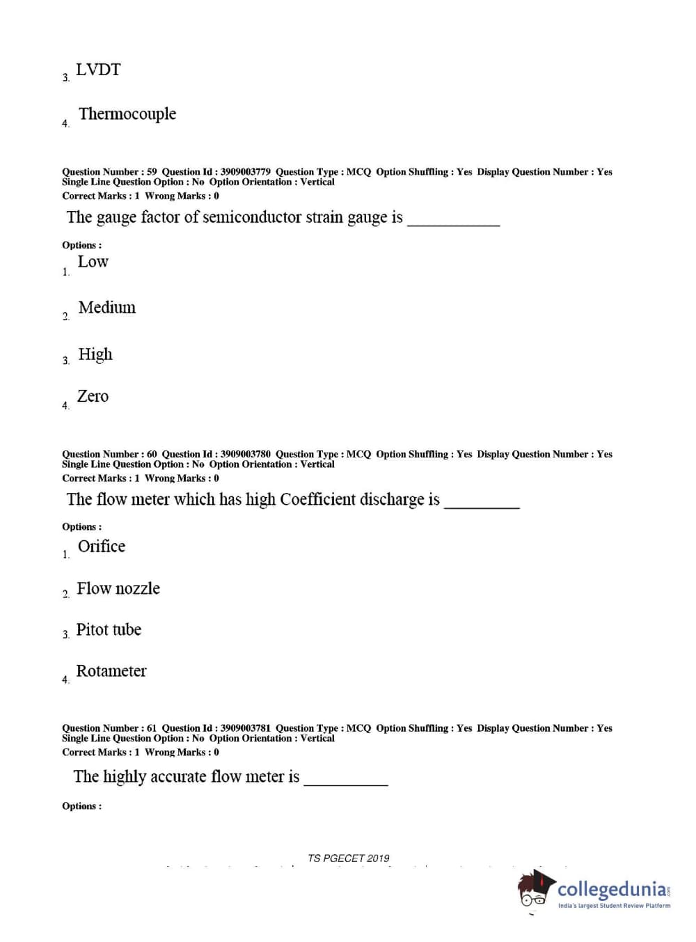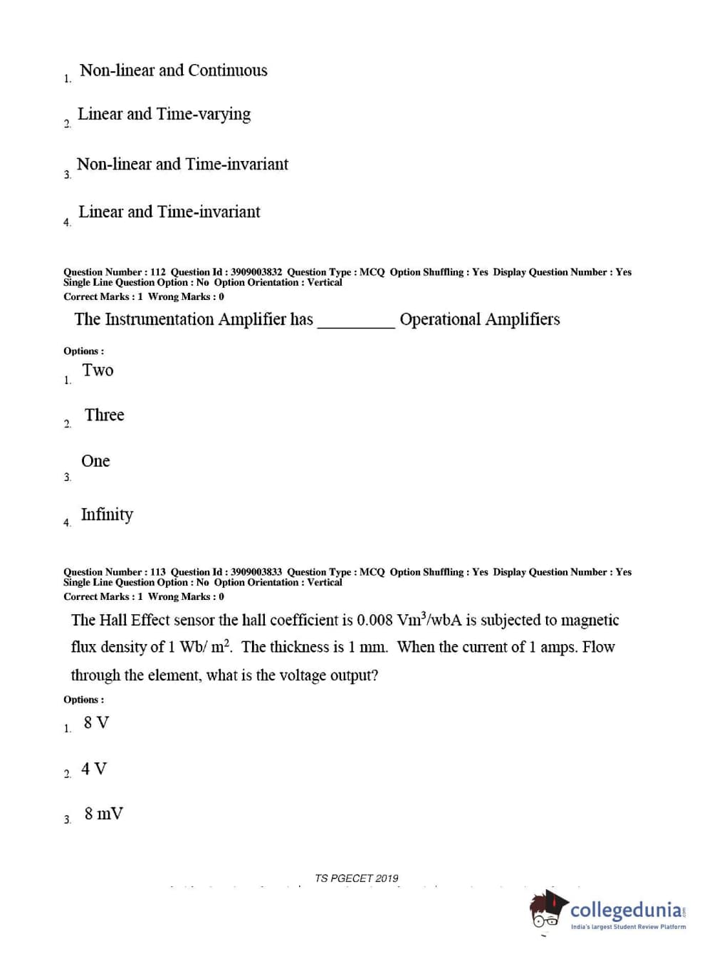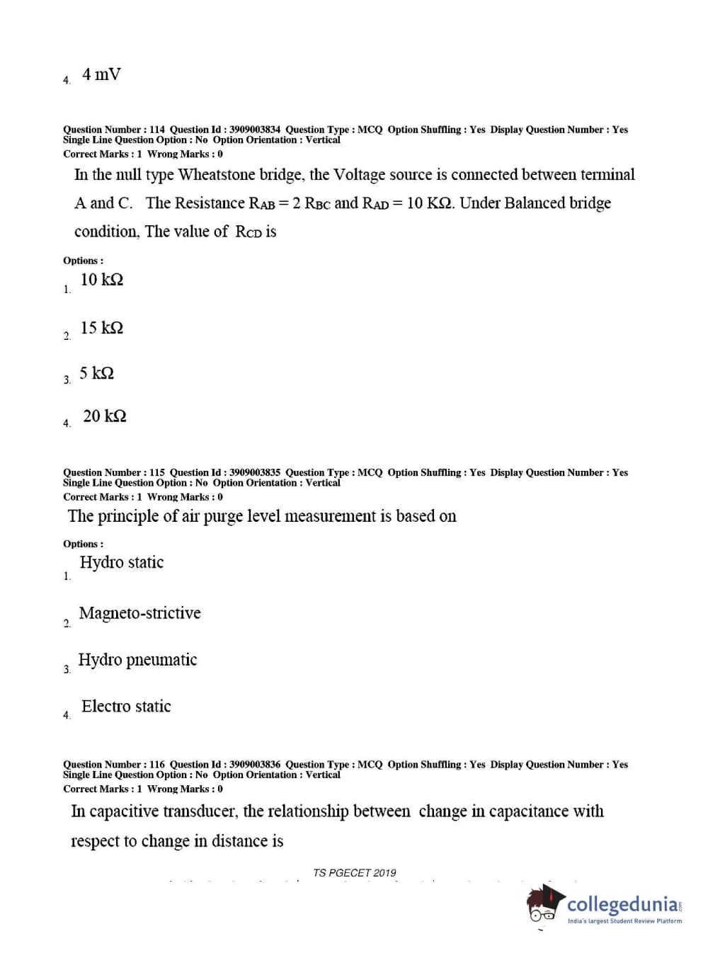 | TS PGECET 2019 Instrumentation Engineering Question Paper PDF | TS PGECET 2019 Instrumentation Engineering Answer Key PDF |