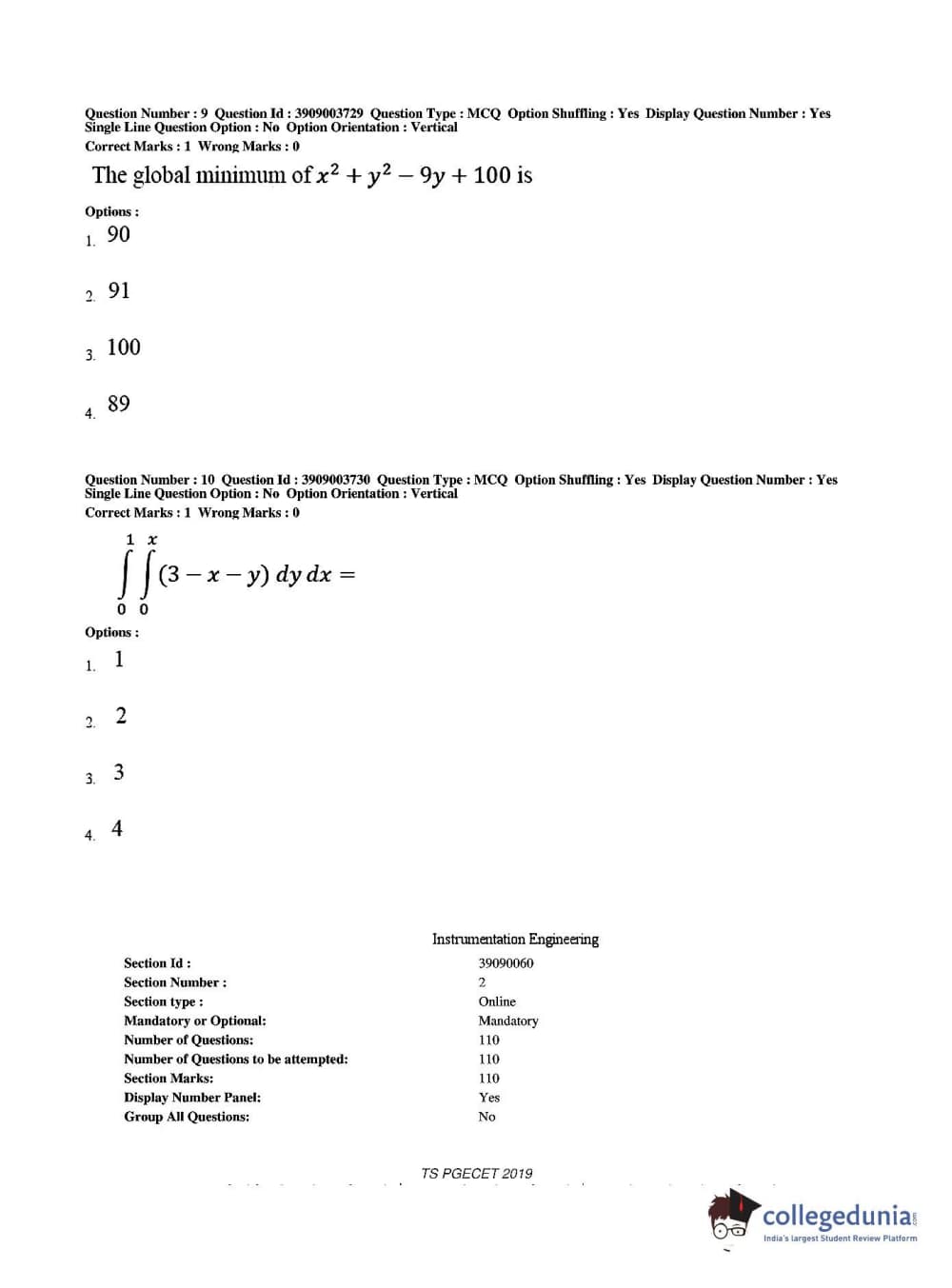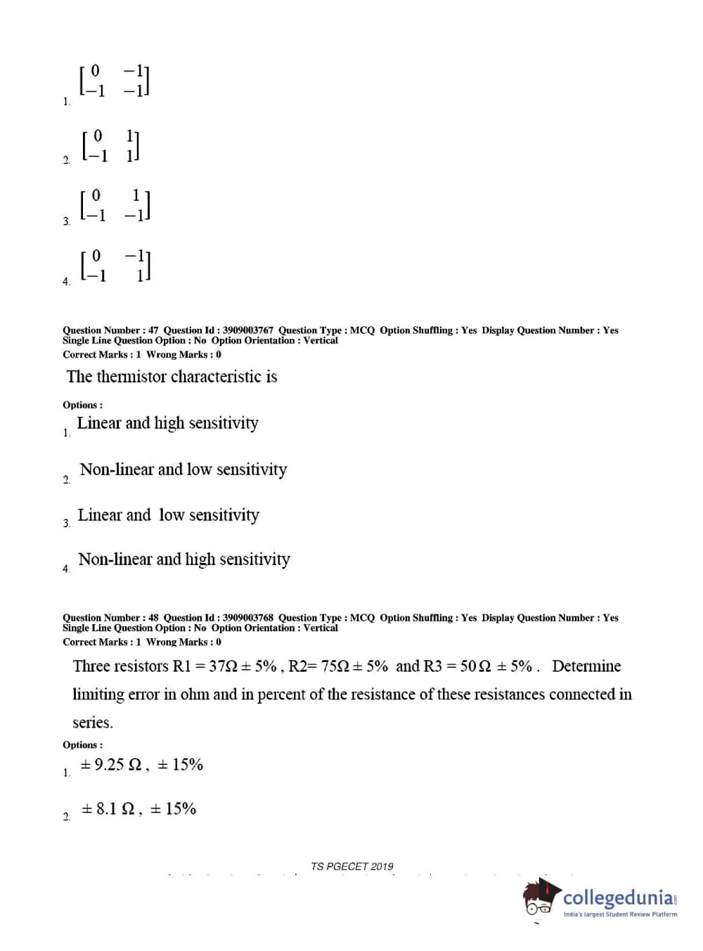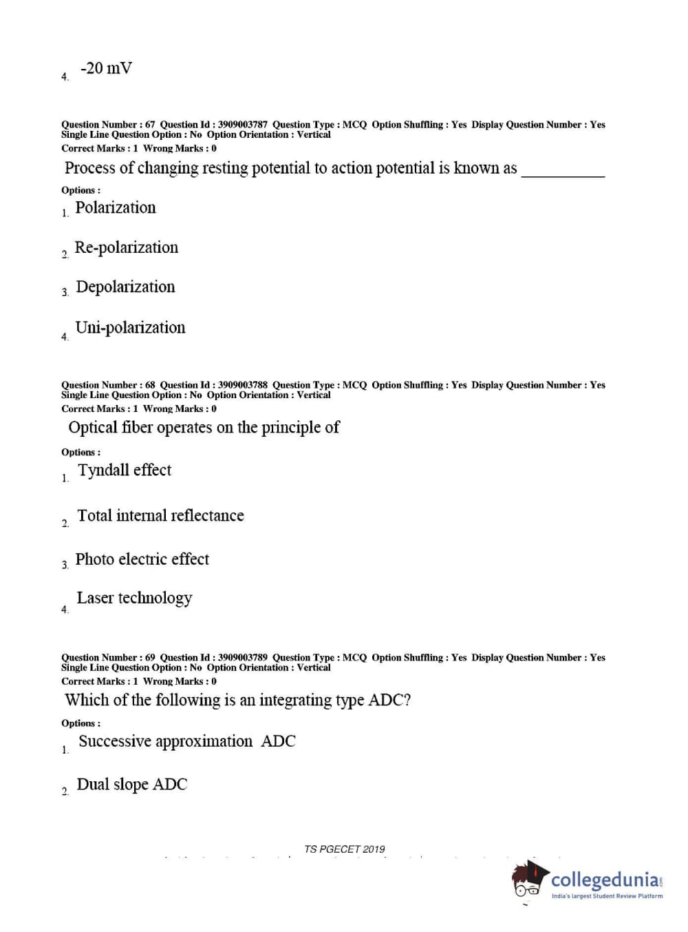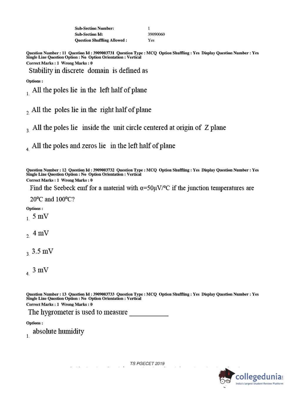 | TS PGECET 2019 Instrumentation Engineering Question Paper PDF | TS PGECET 2019 Instrumentation Engineering Answer Key PDF |