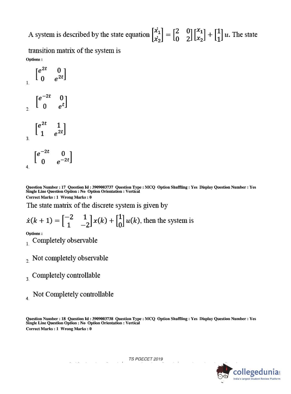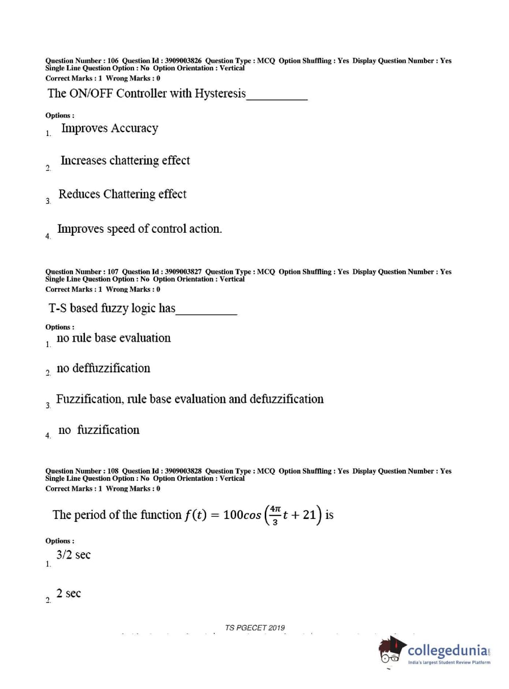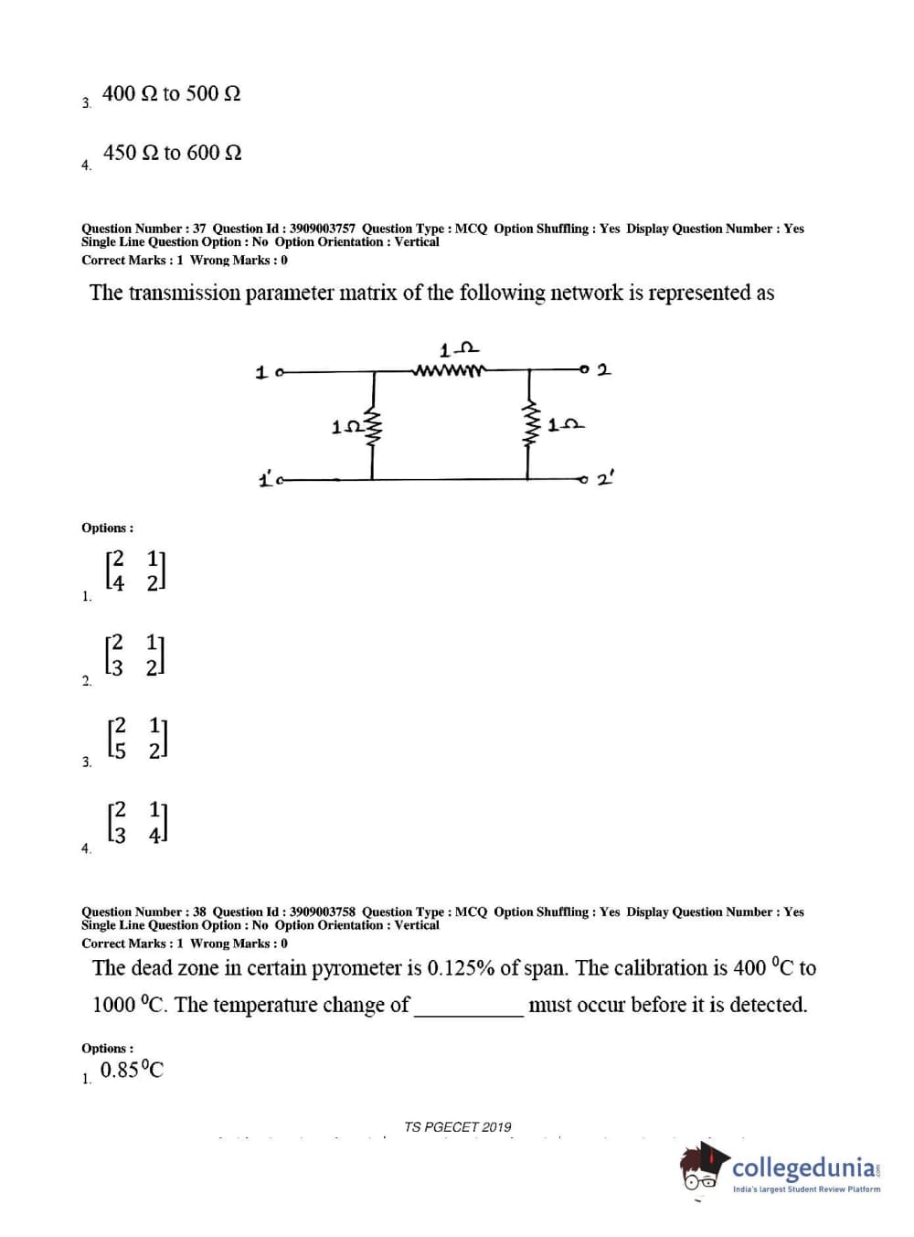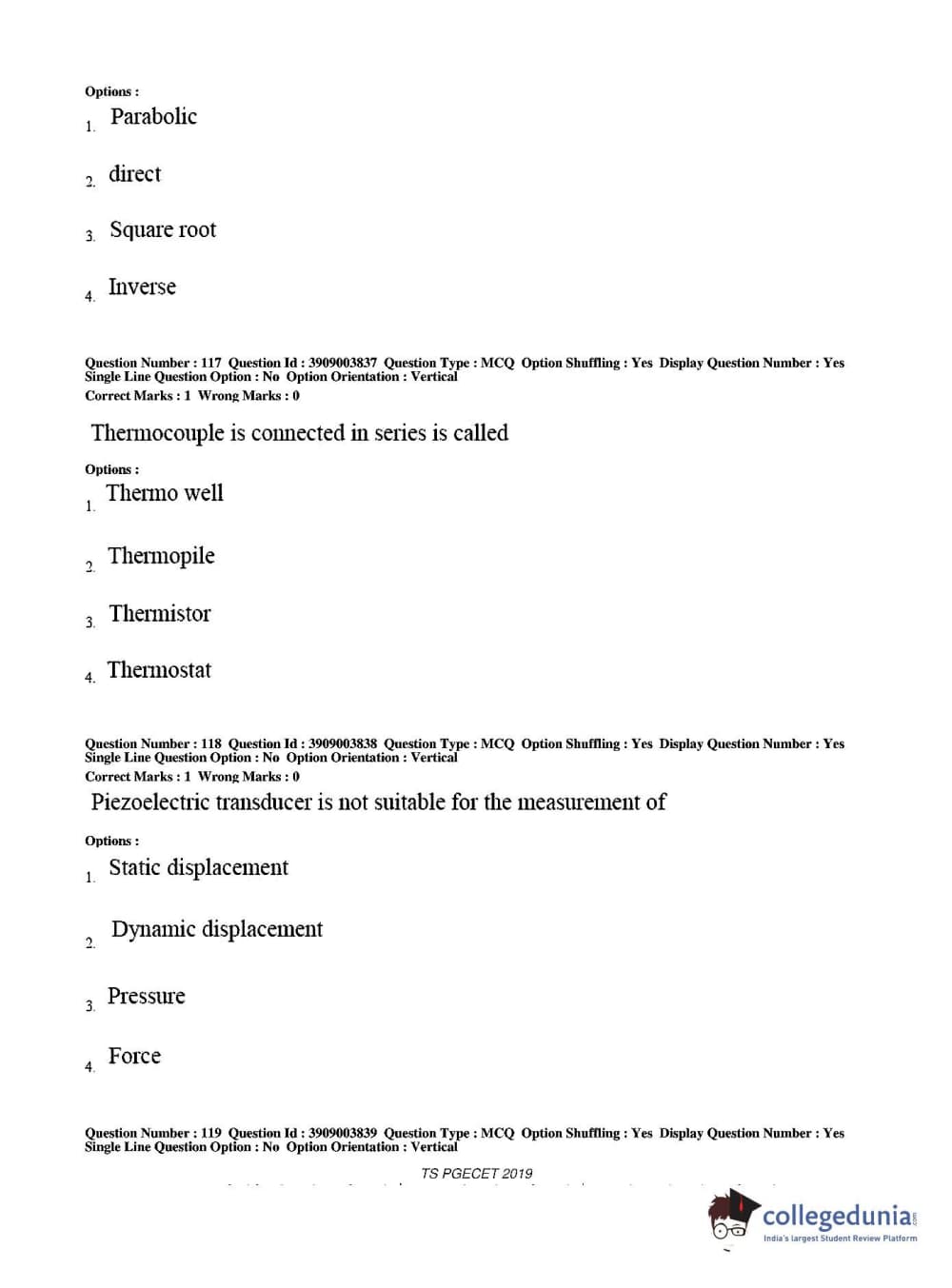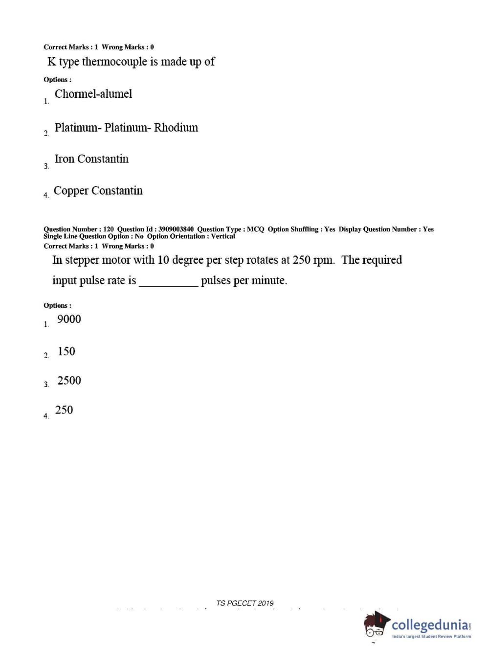 | TS PGECET 2019 Instrumentation Engineering Question Paper PDF | TS PGECET 2019 Instrumentation Engineering Answer Key PDF |
