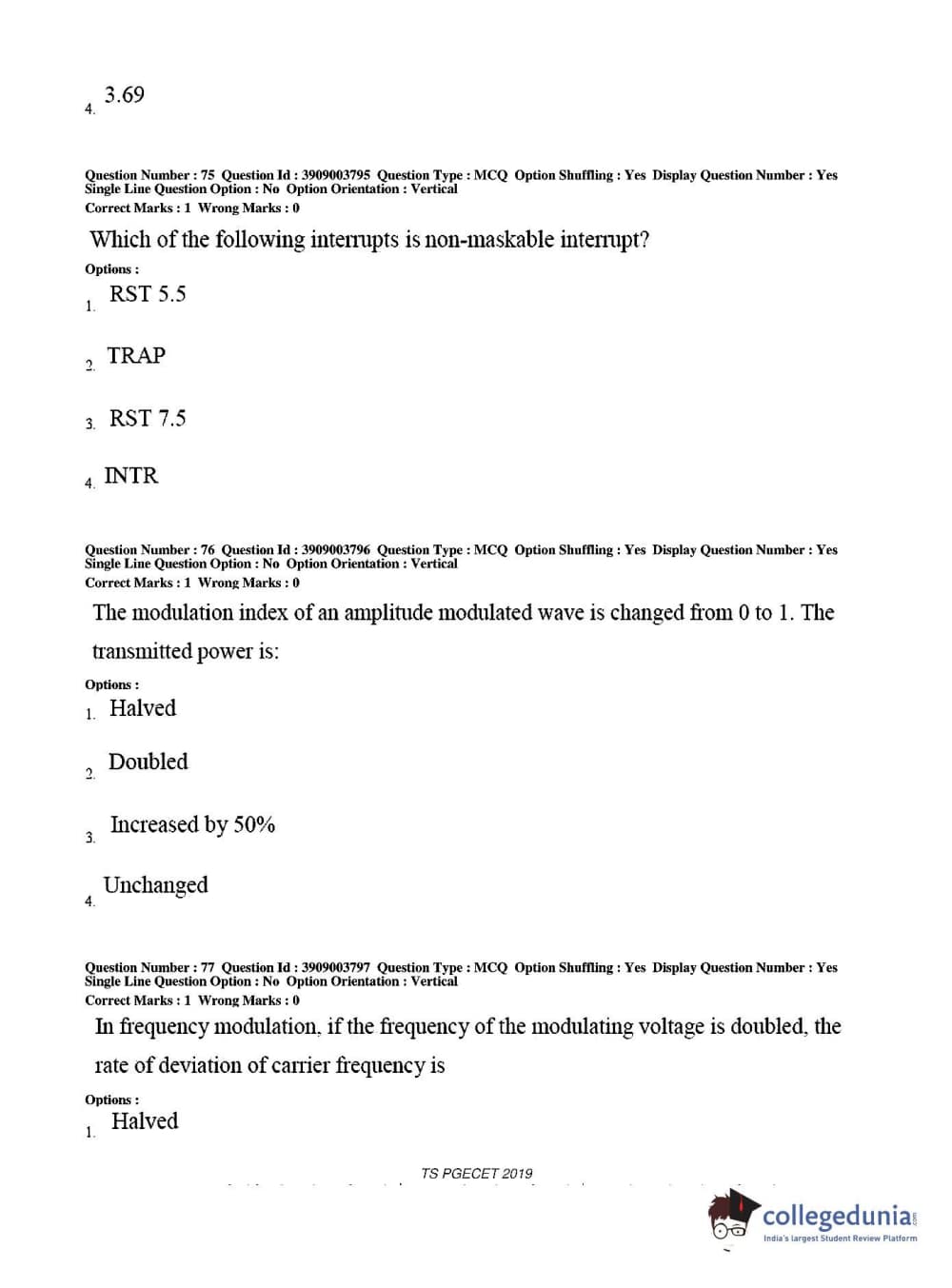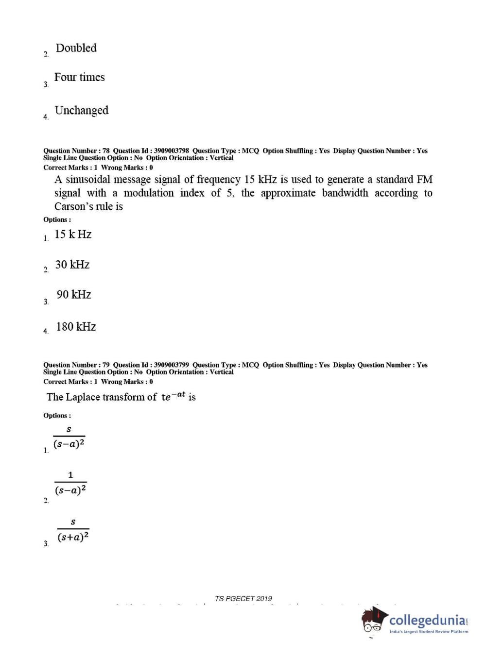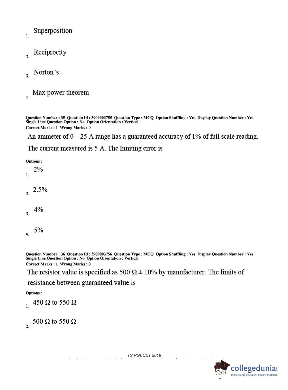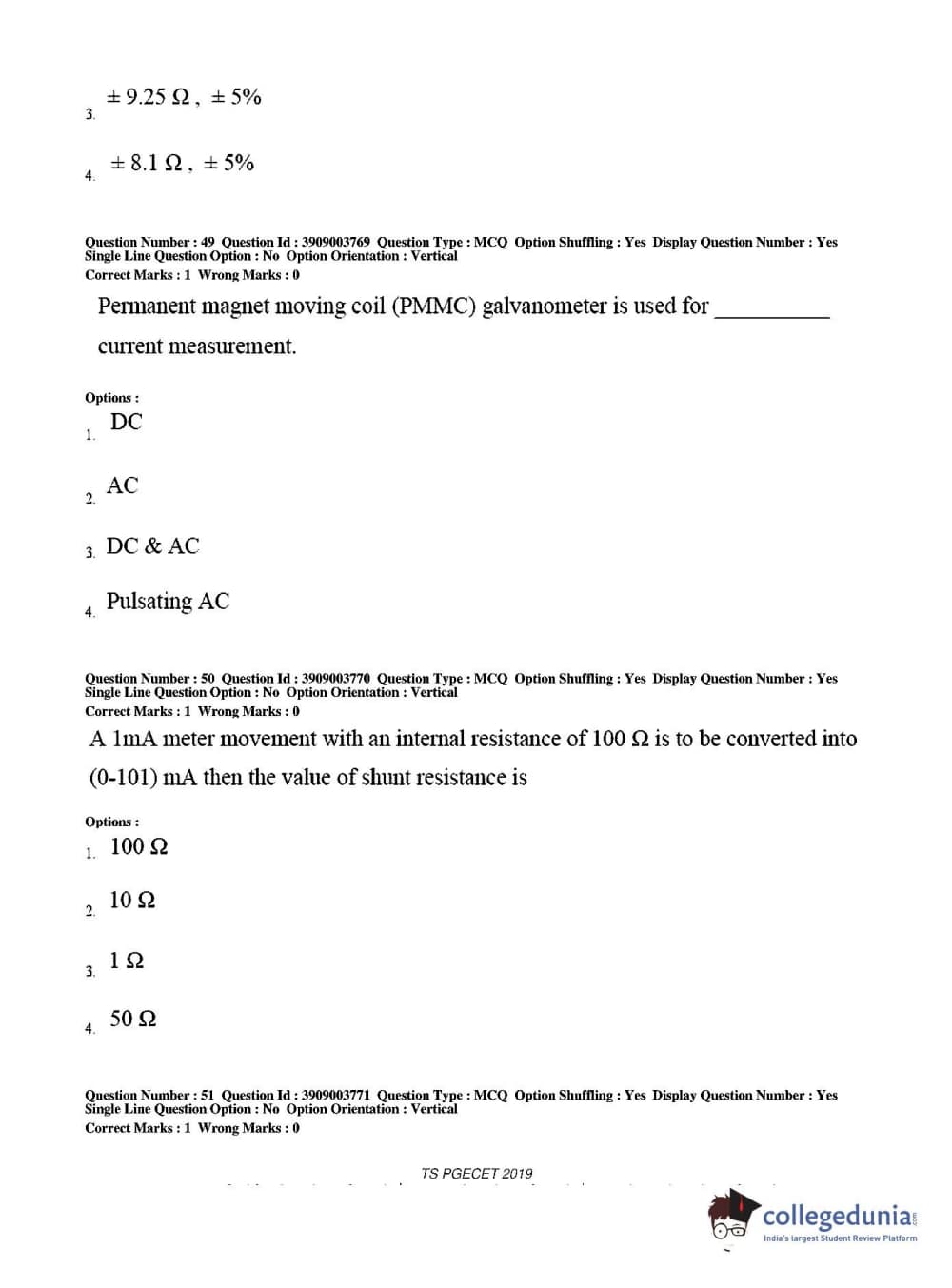 | TS PGECET 2019 Instrumentation Engineering Question Paper PDF | TS PGECET 2019 Instrumentation Engineering Answer Key PDF |
