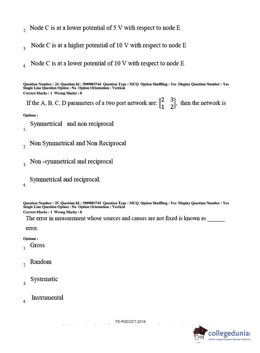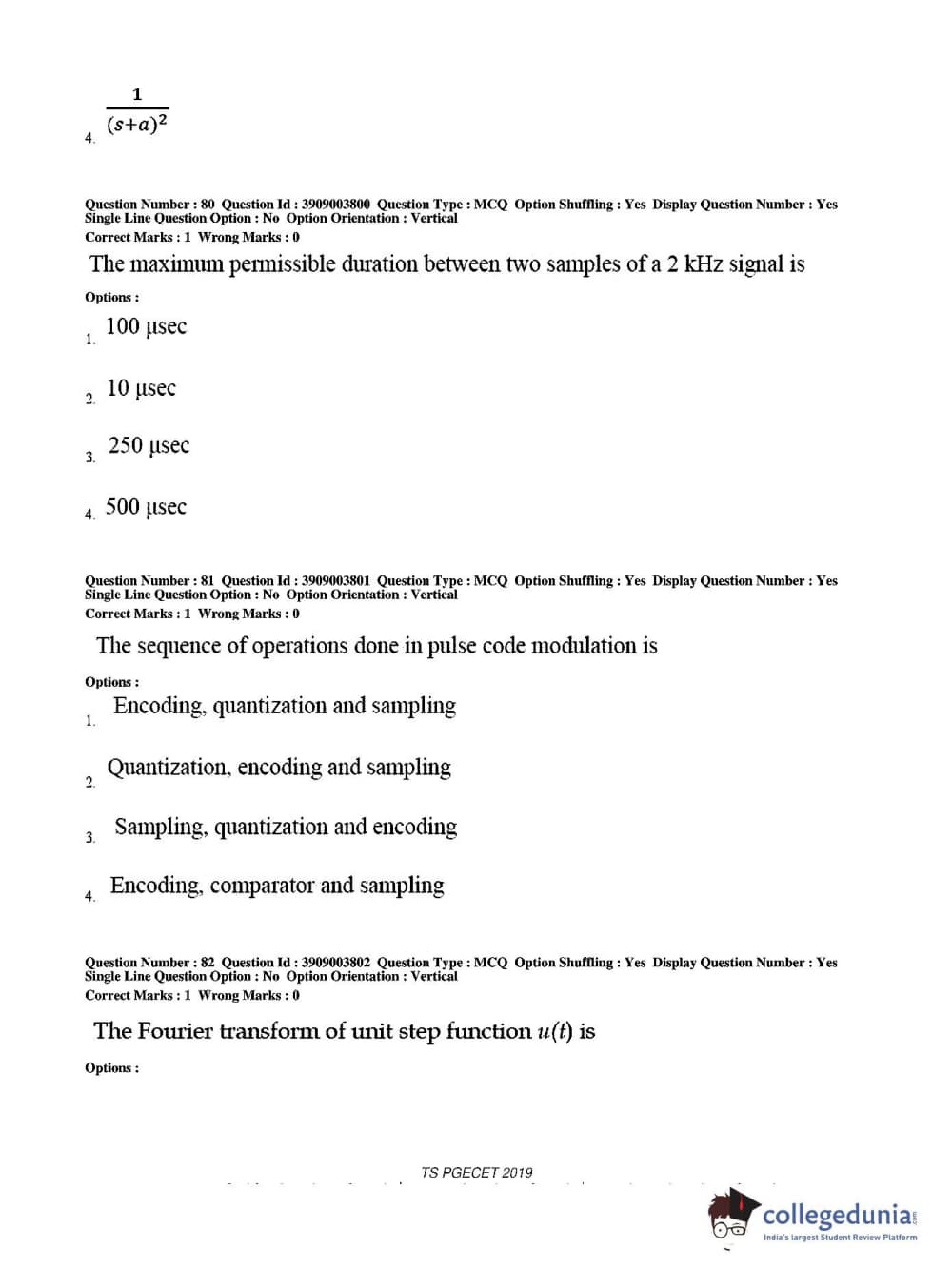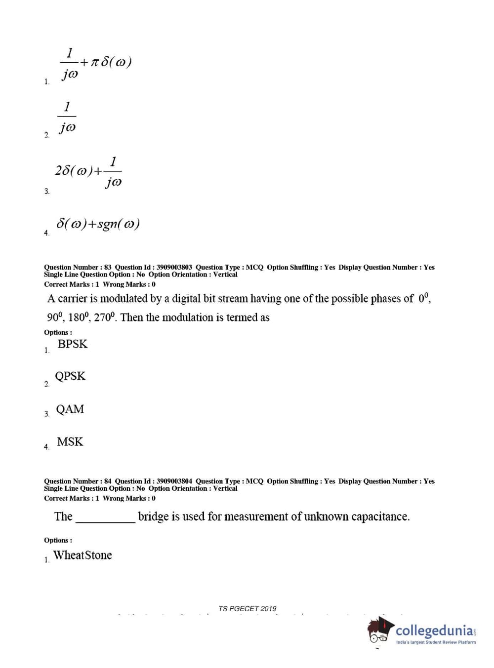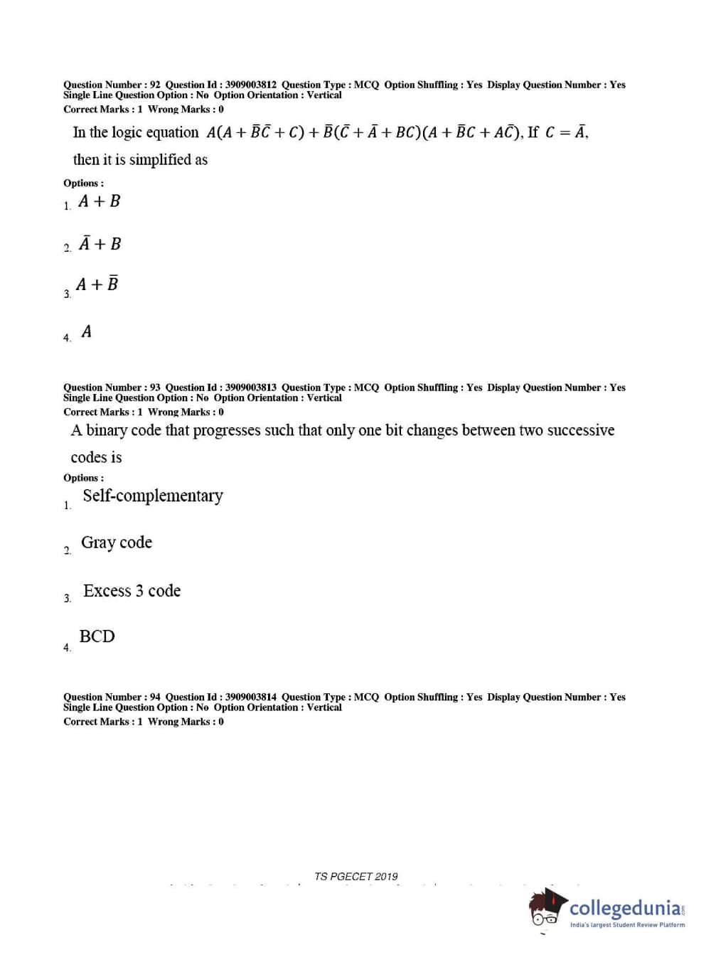 Collegedunia has provided TS PGECET Previous Year Question paper pdf with answer key in the links given below: