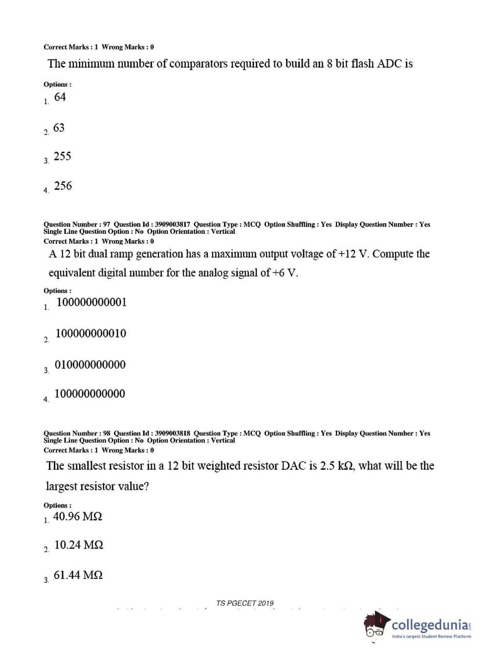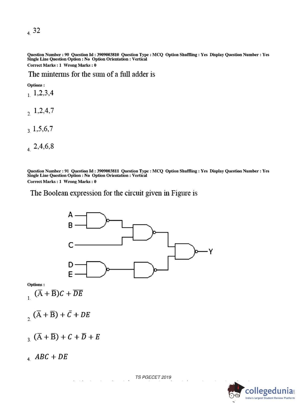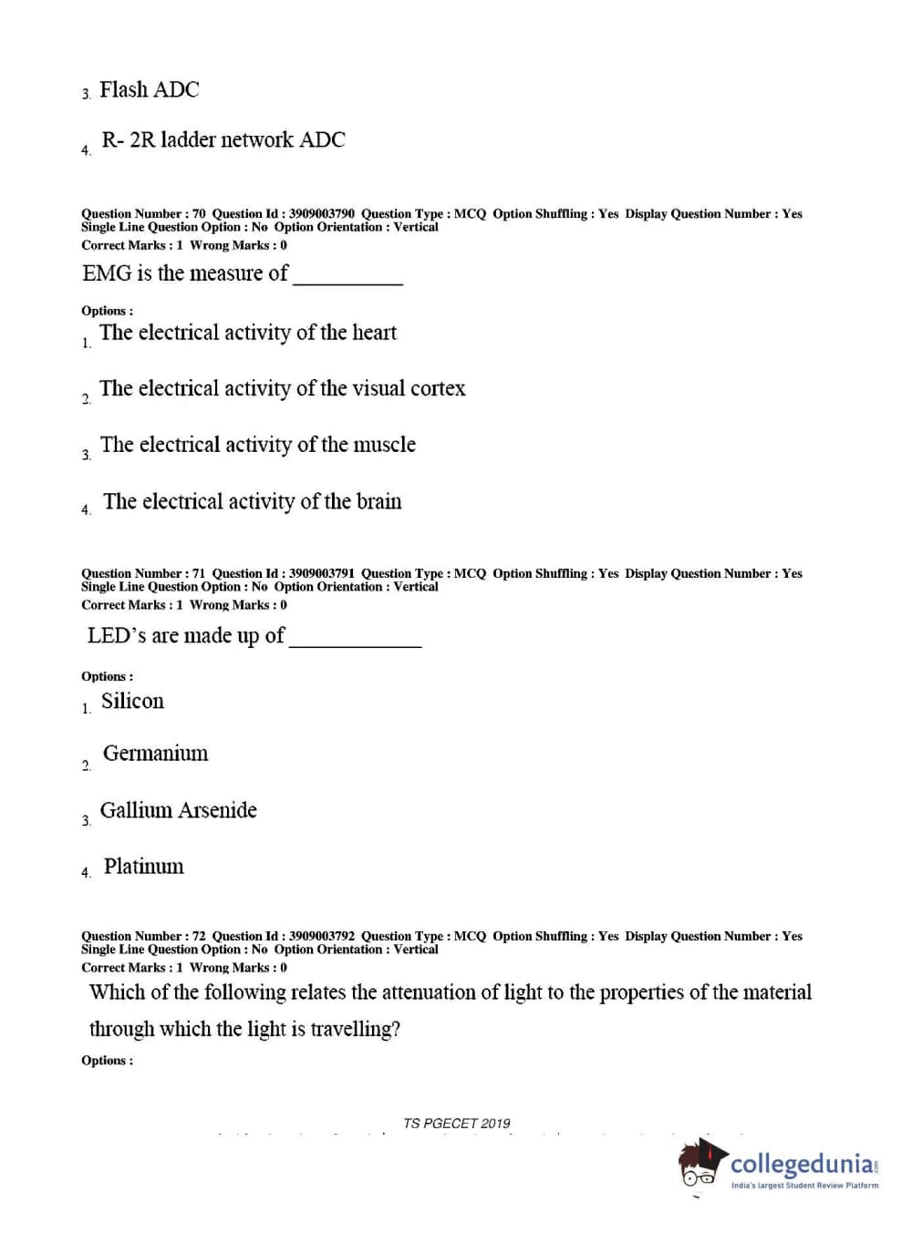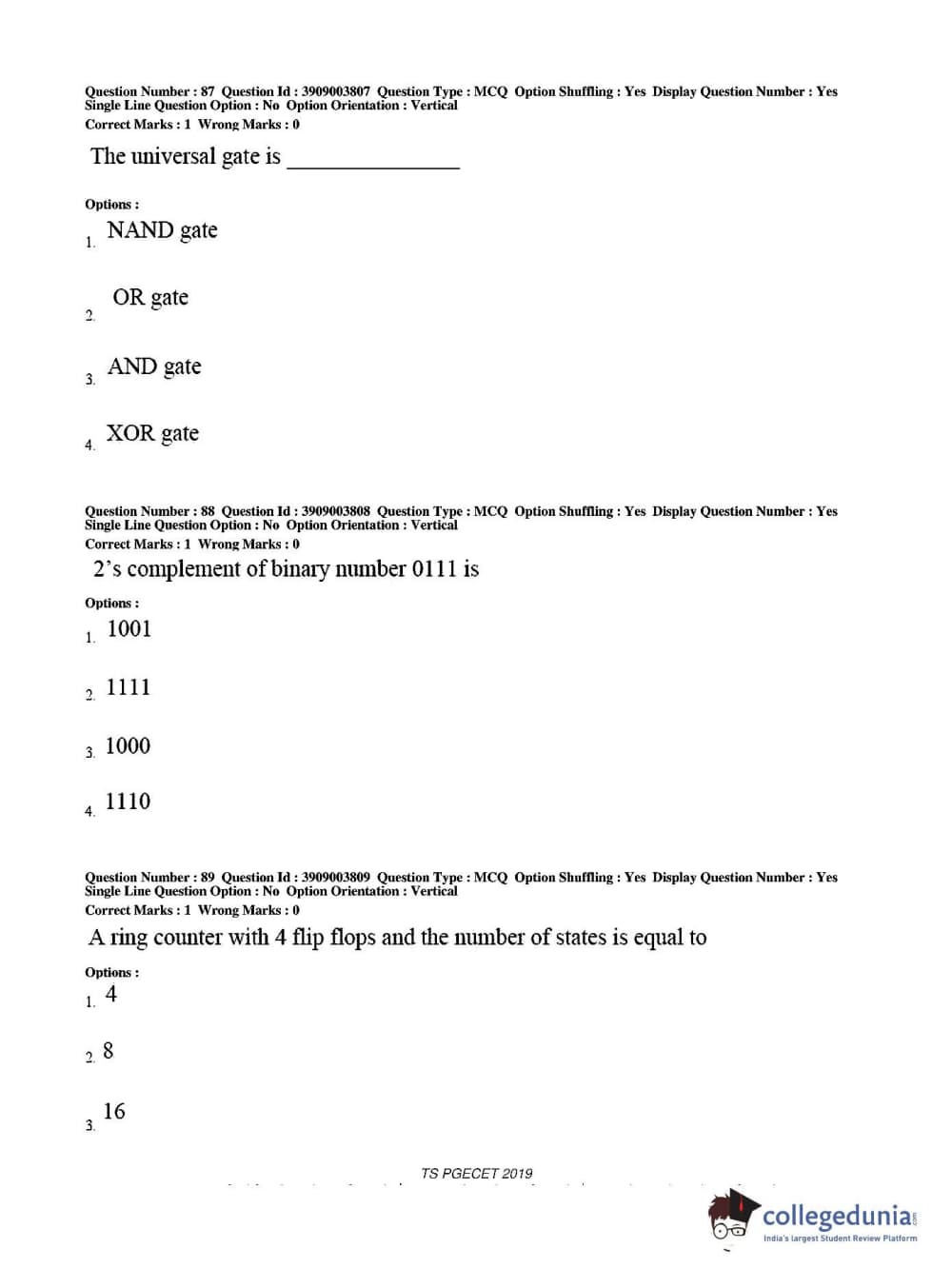 Collegedunia has provided TS PGECET Previous Year Question paper pdf with answer key in the links given below: