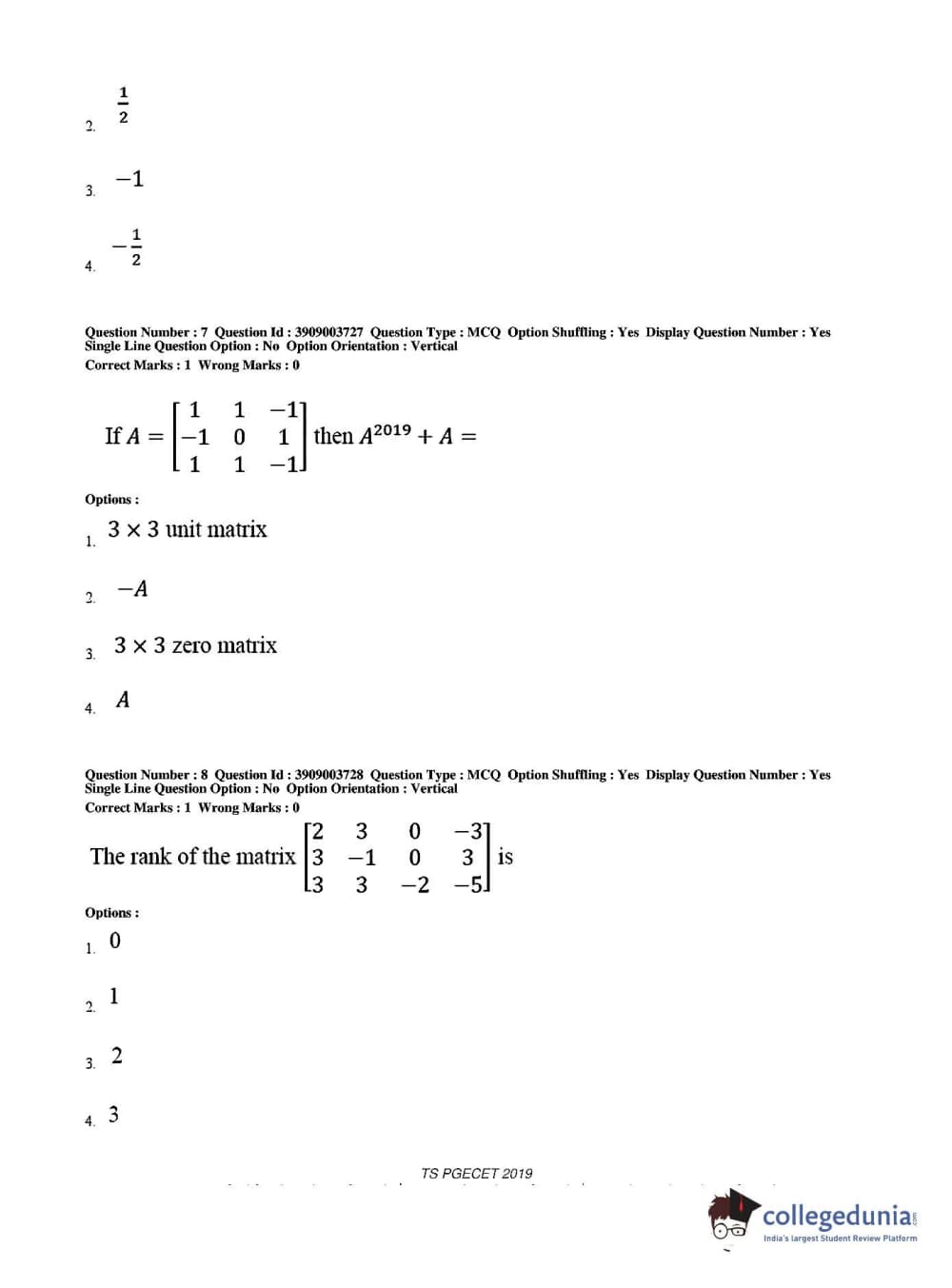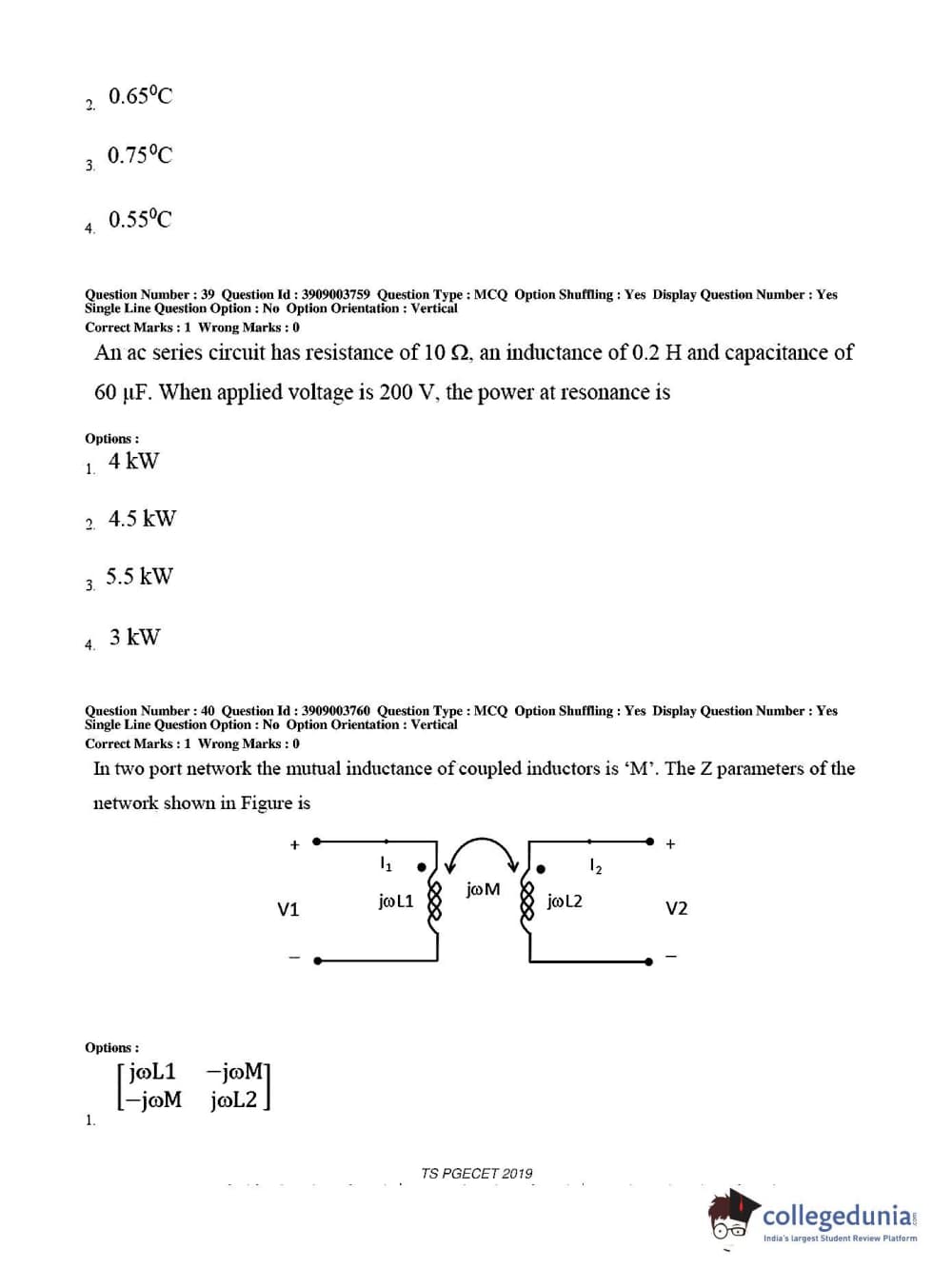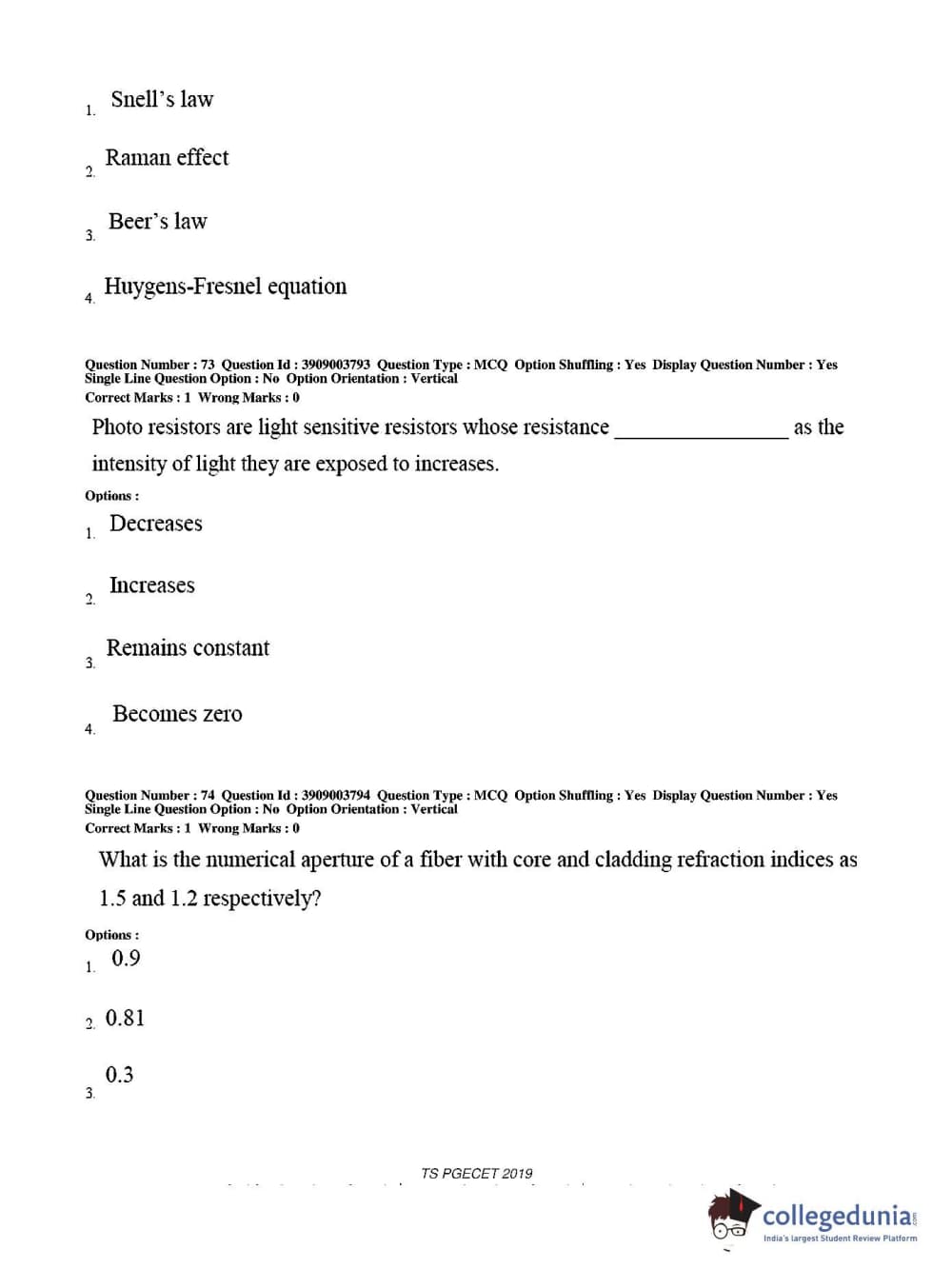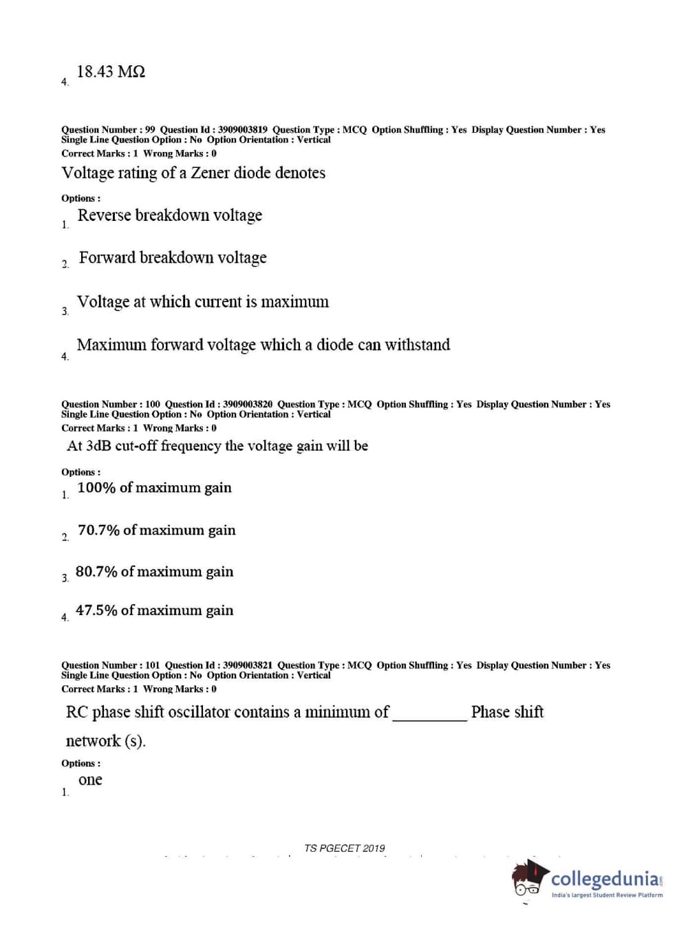 Collegedunia has provided TS PGECET Previous Year Question paper pdf with answer key in the links given below: