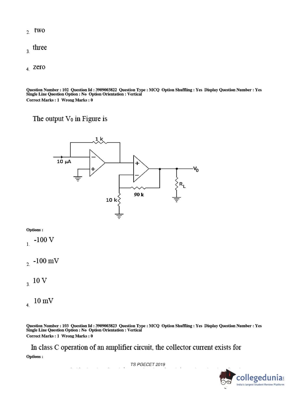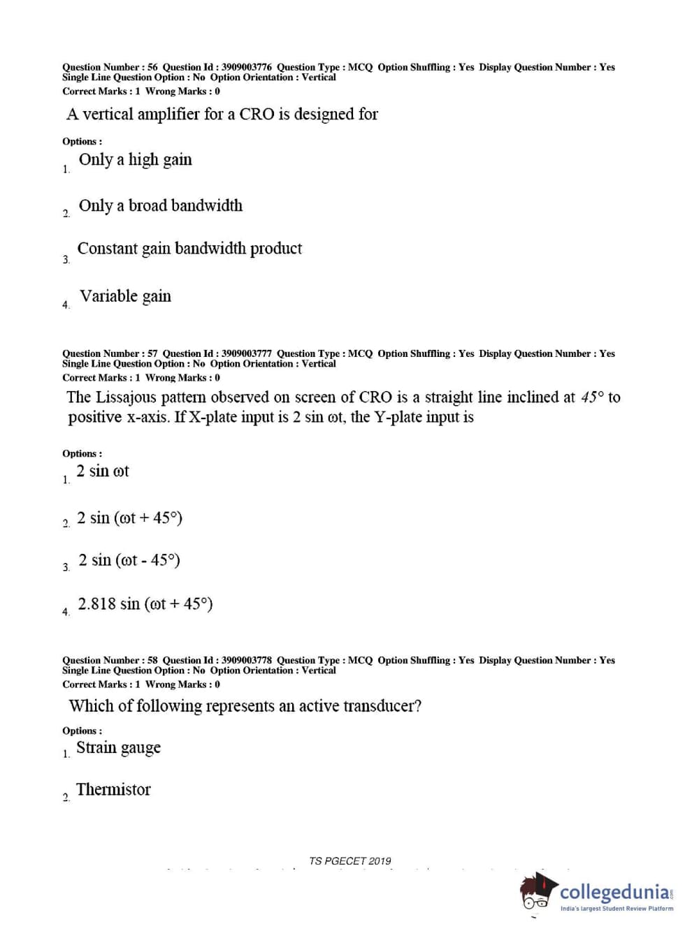 TS PGECET 2019 Instrumentation Engineering Question paper with answer key pdf conducted on May 28, 2019 from is available for download. The exam was successfully organized by Osmania University. The question paper comprised a total of 120 questions.