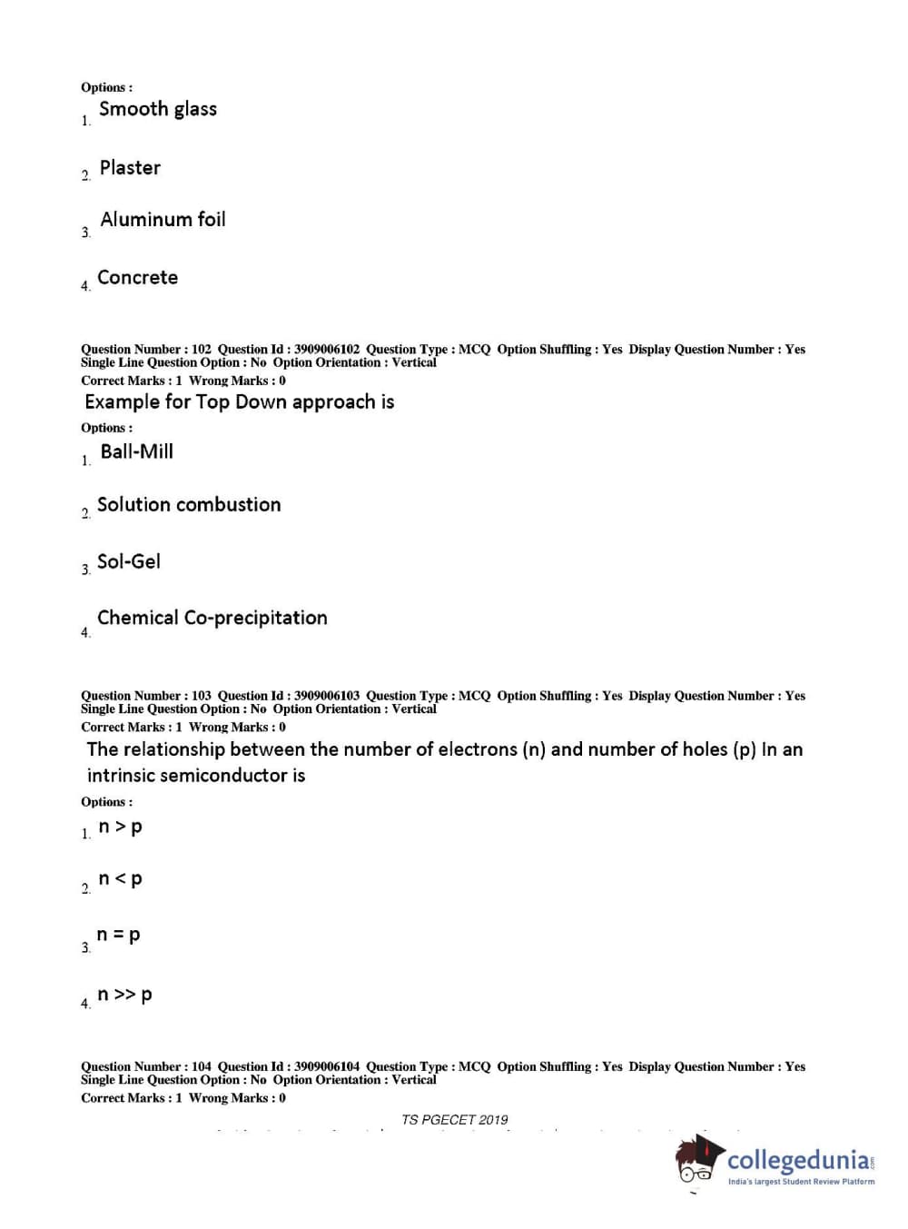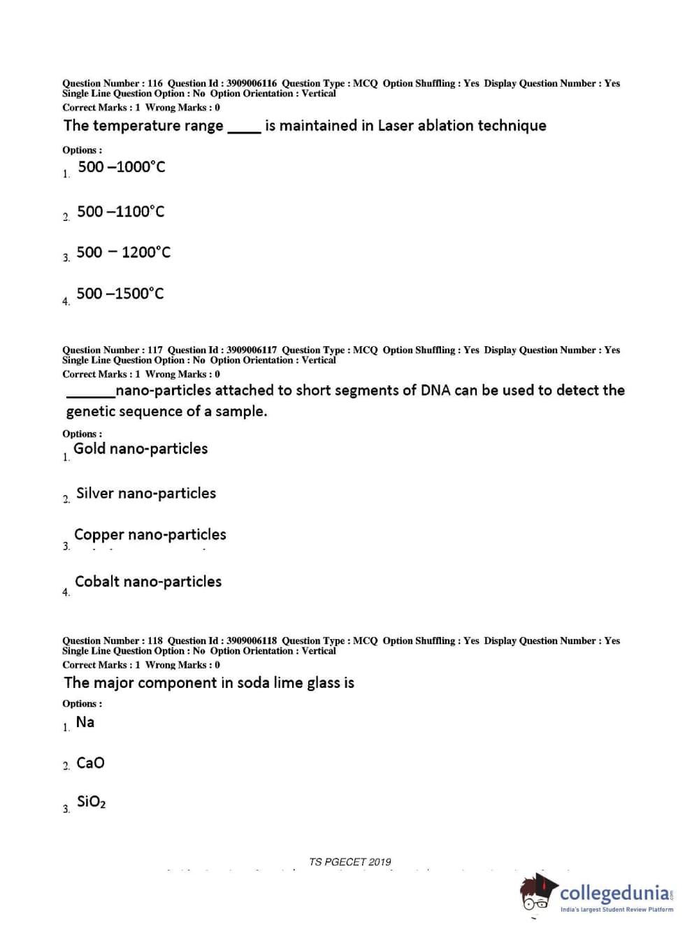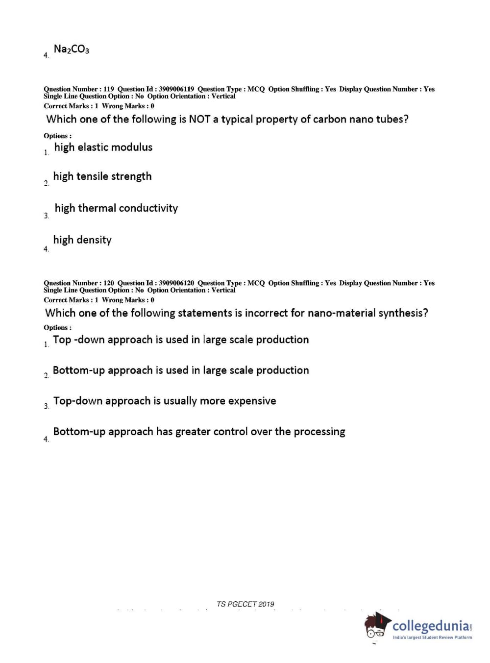 TS PGECET 2019 Nano Technology Question Paper with Answer Key PDF for Afternoon Session