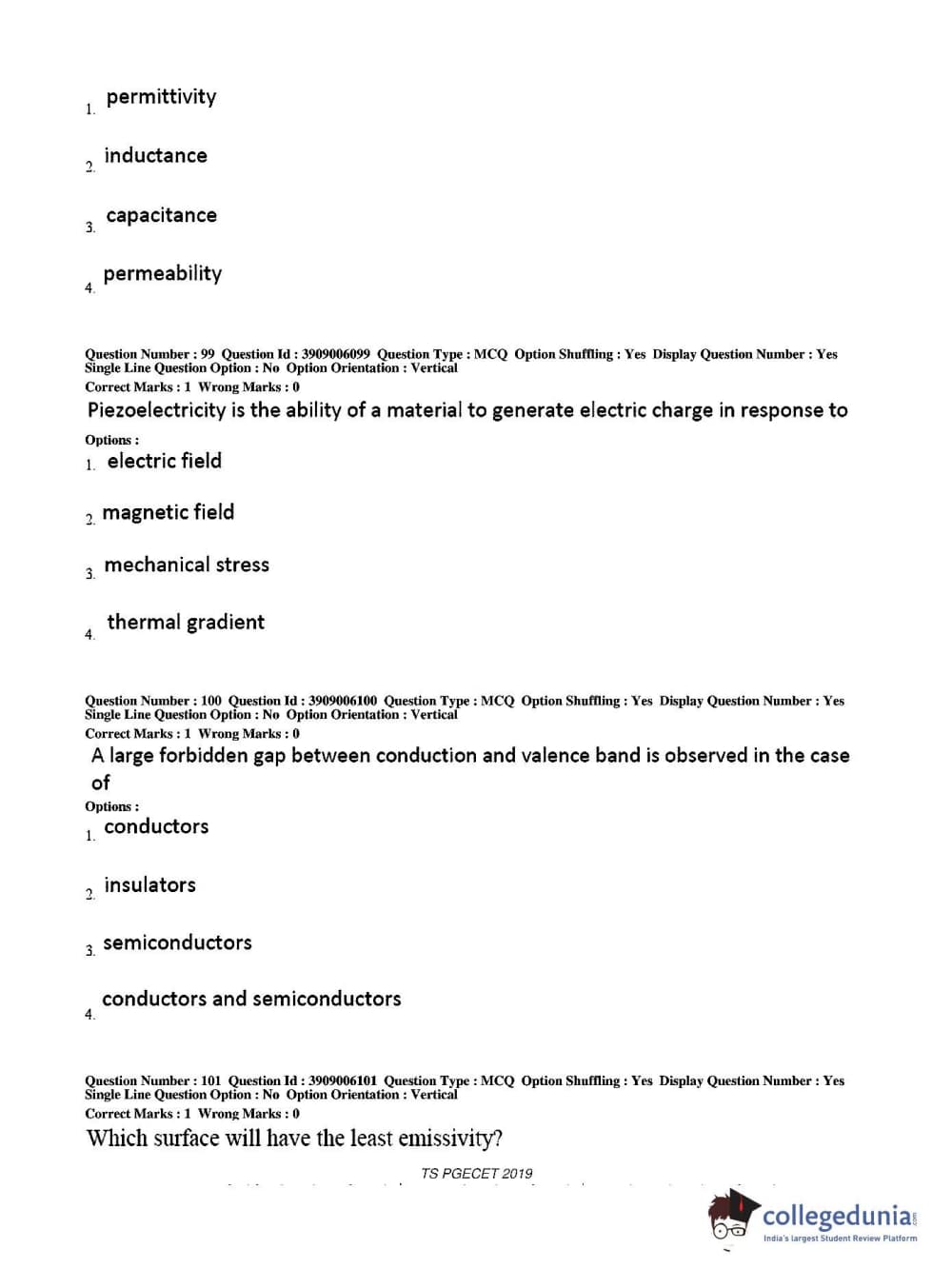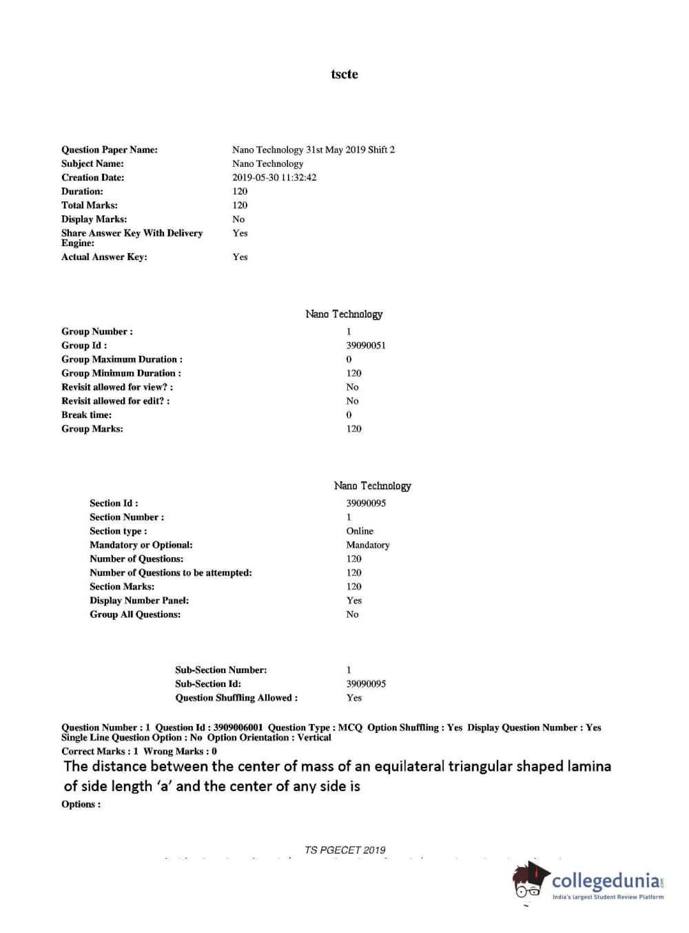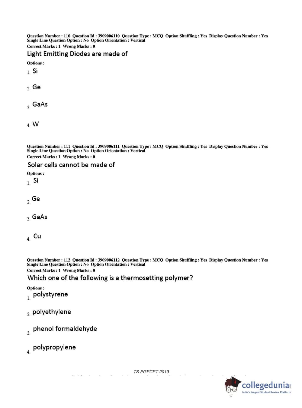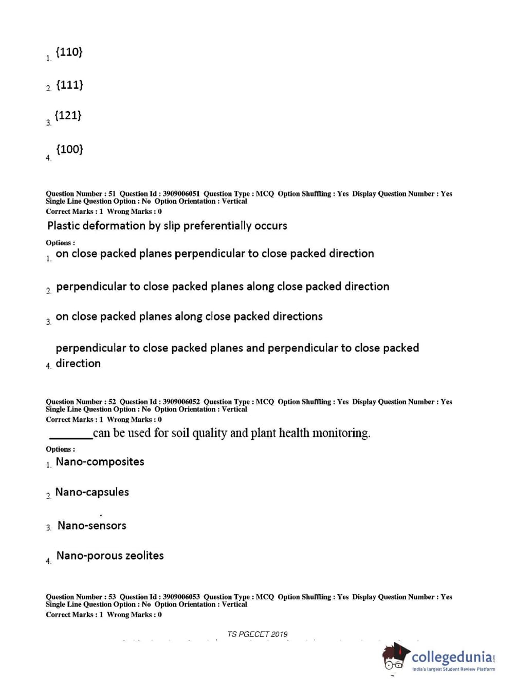 TS PGECET 2019 Nano Technology Question Paper with Answer Key PDF for Afternoon Session