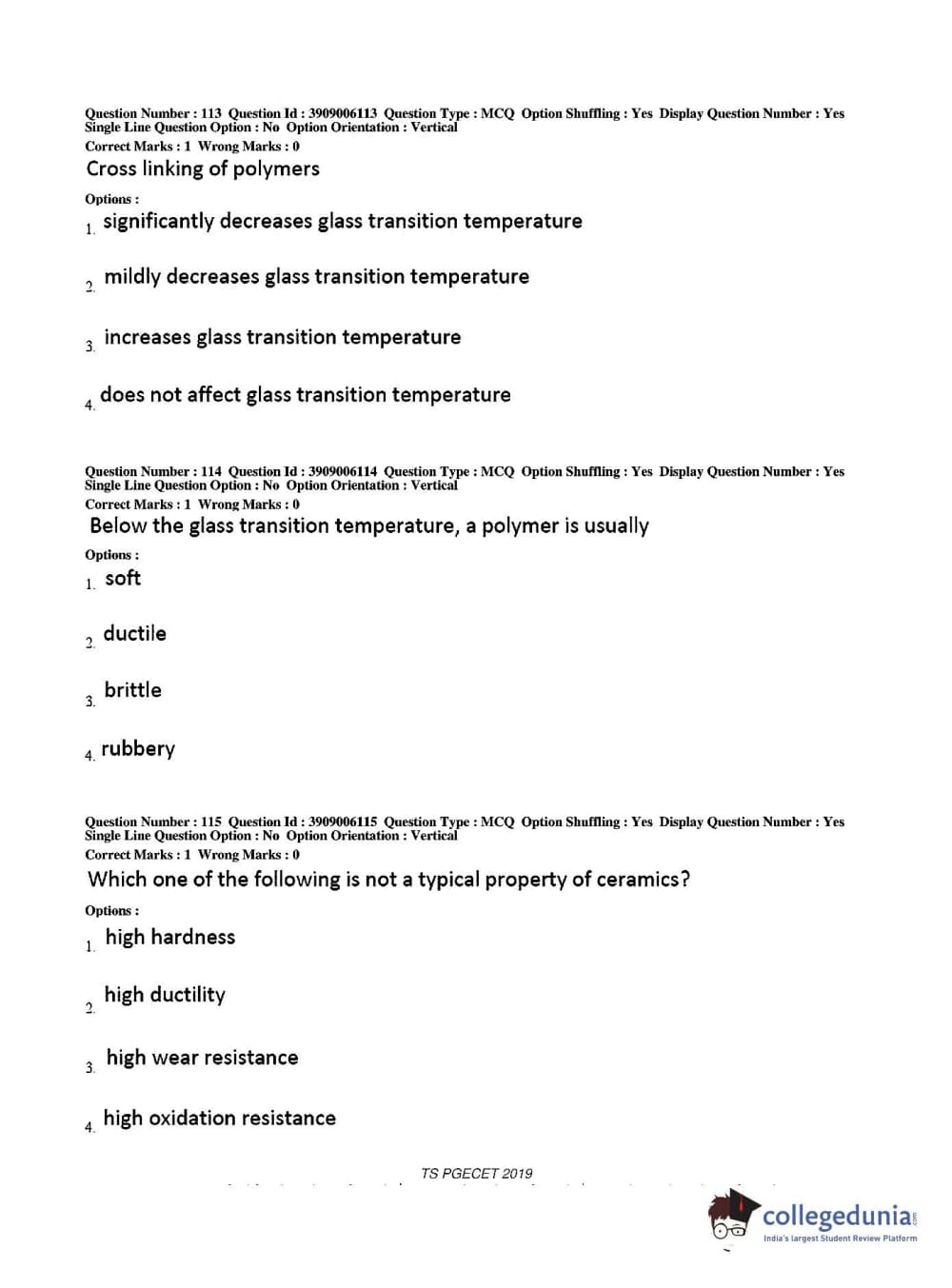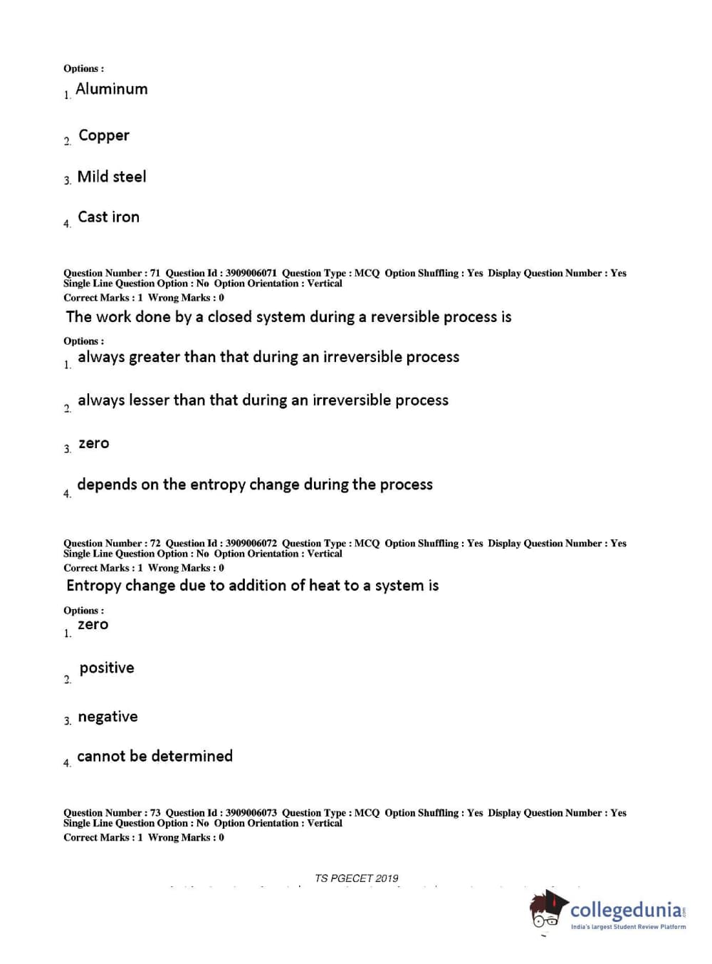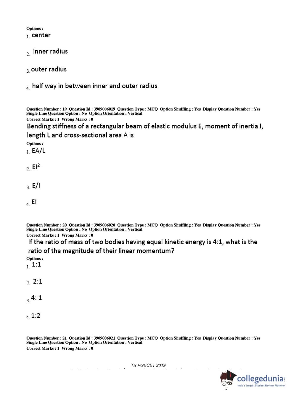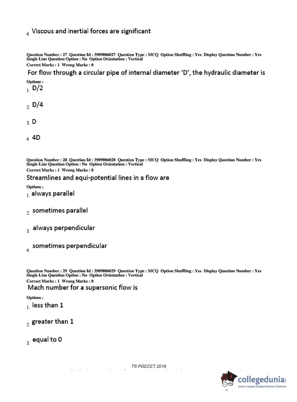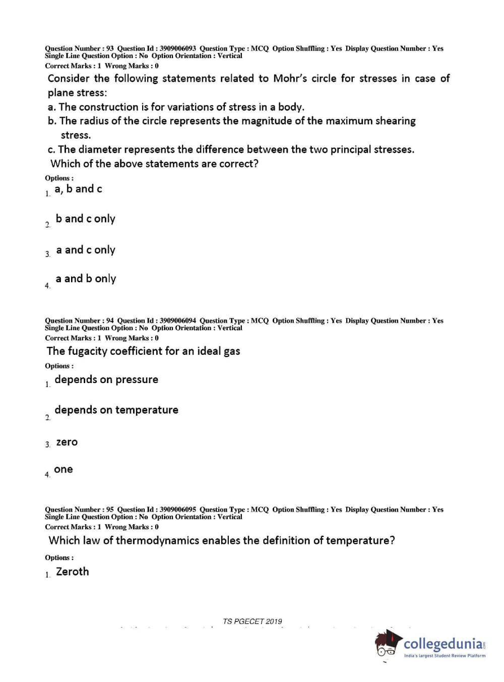 Collegedunia has provided TS PGECET Previous Year Question paper pdf with answer key in the links given below: