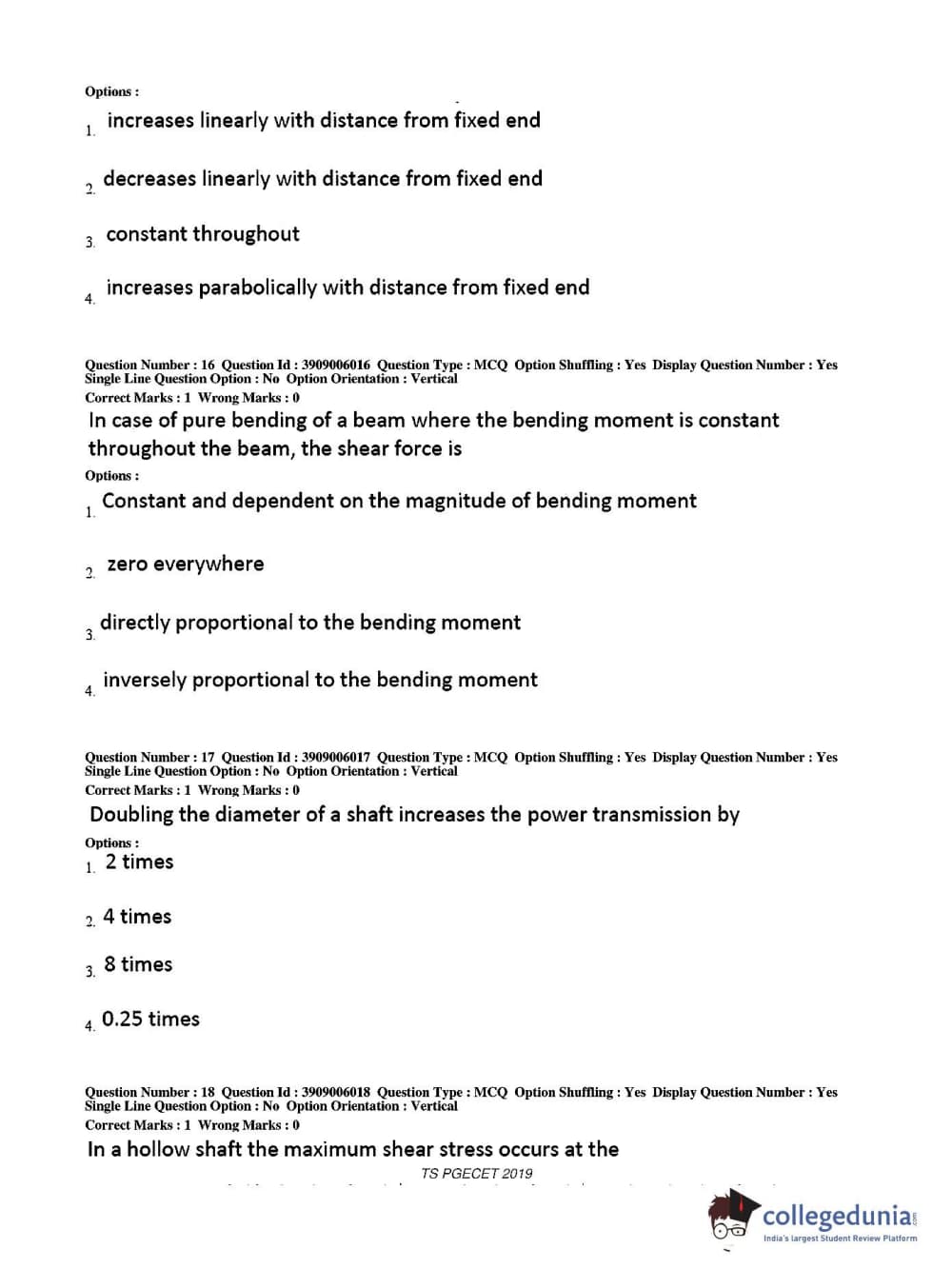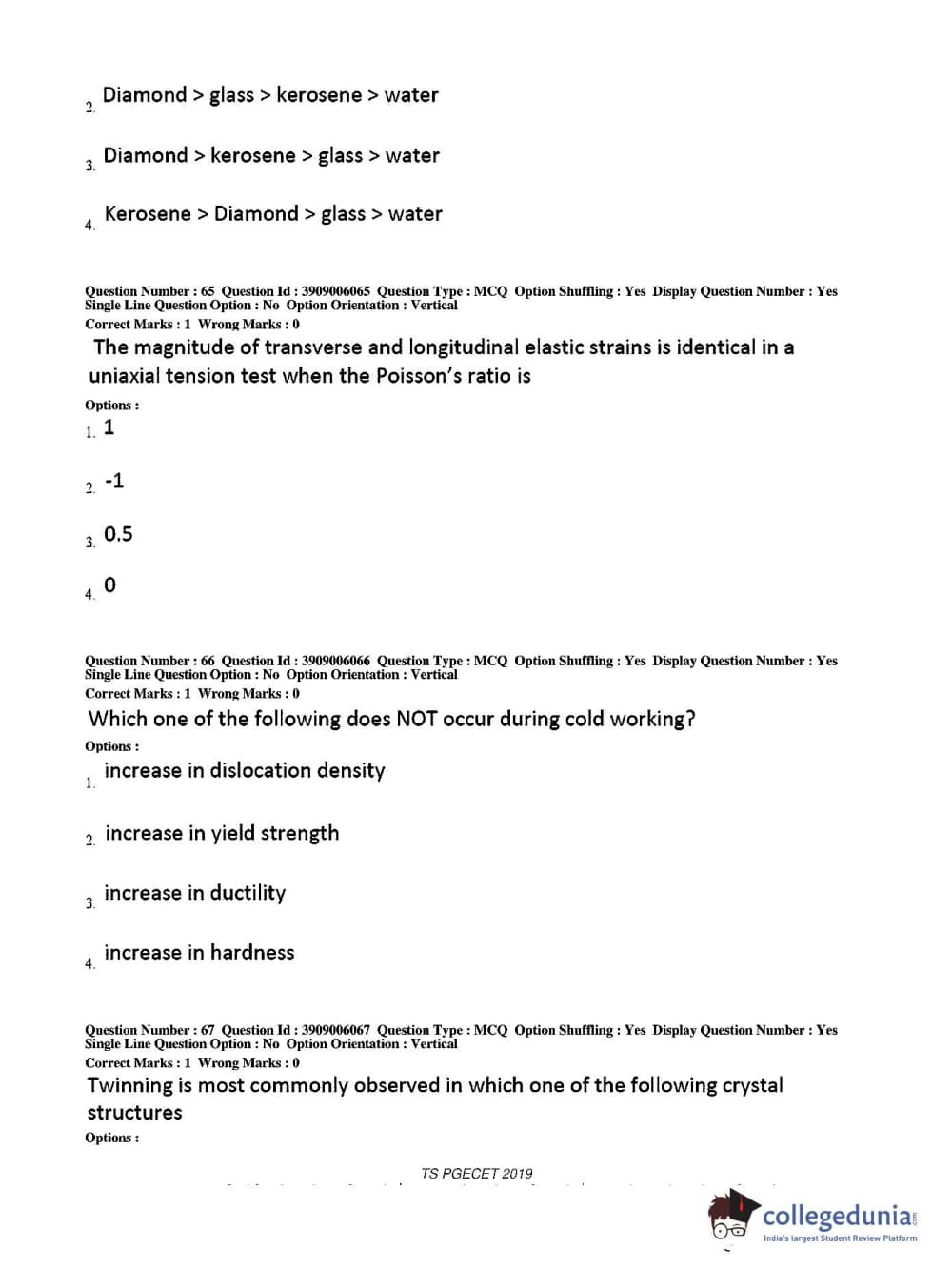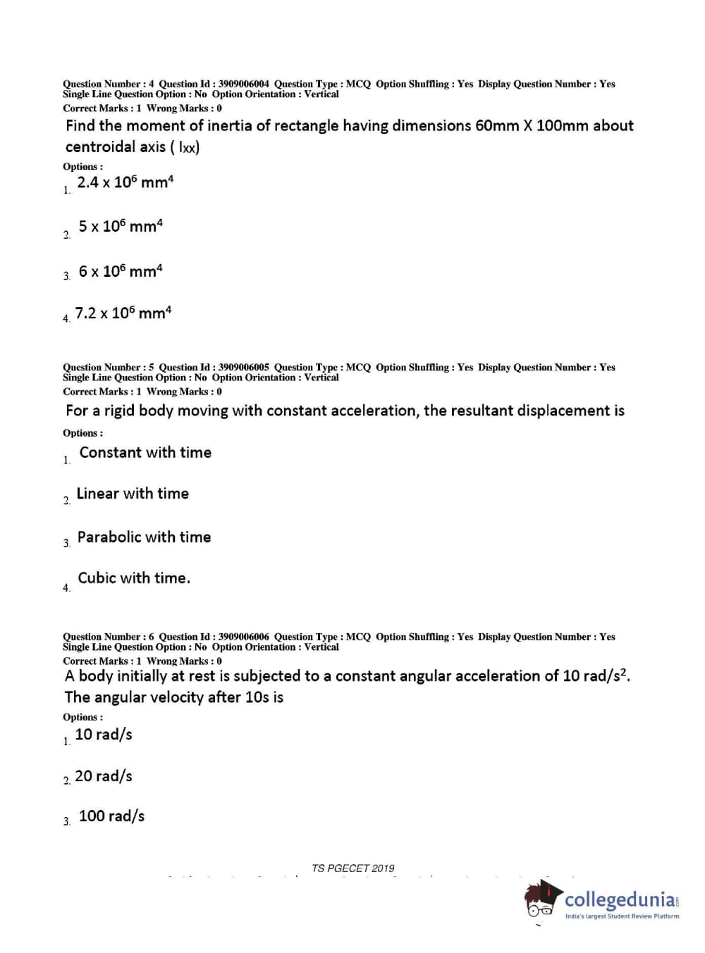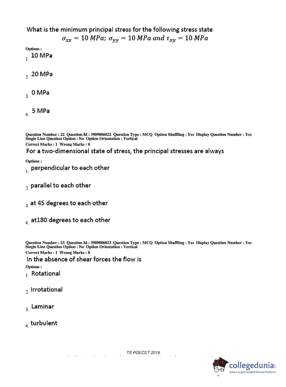 Collegedunia has provided TS PGECET Previous Year Question paper pdf with answer key in the links given below: