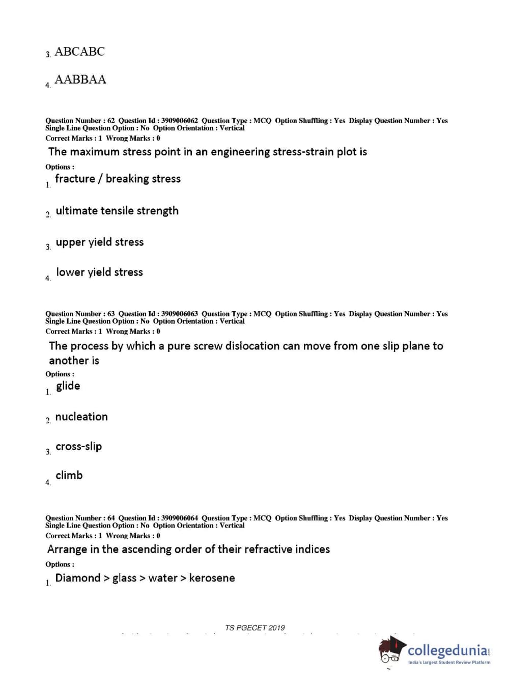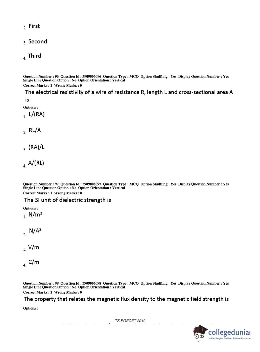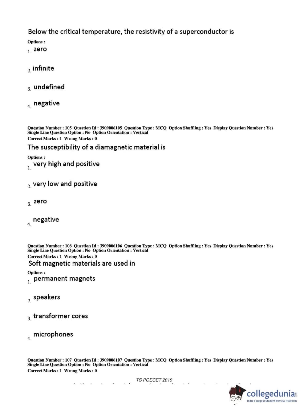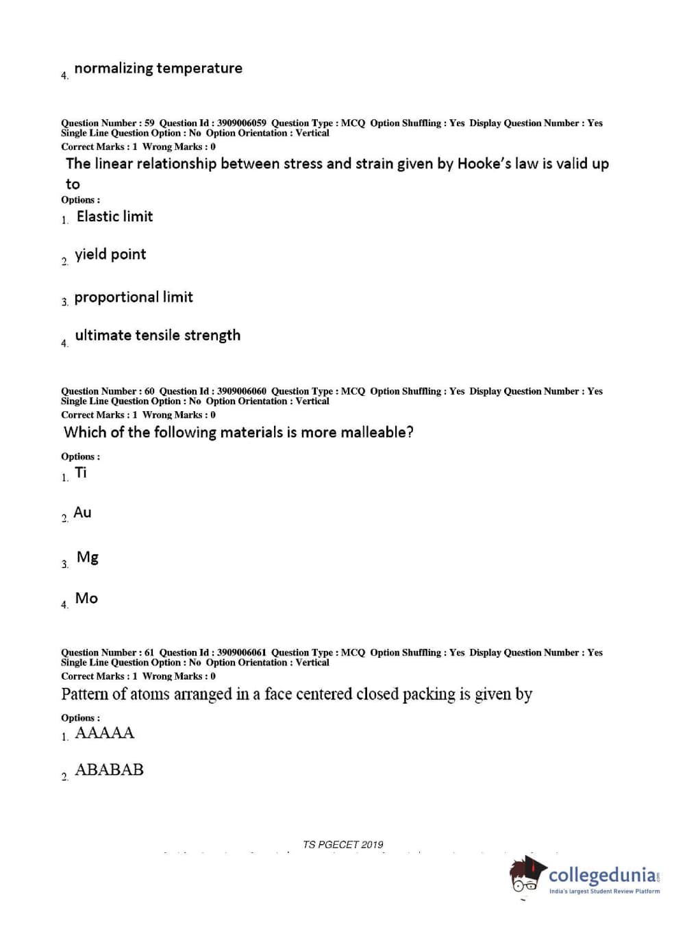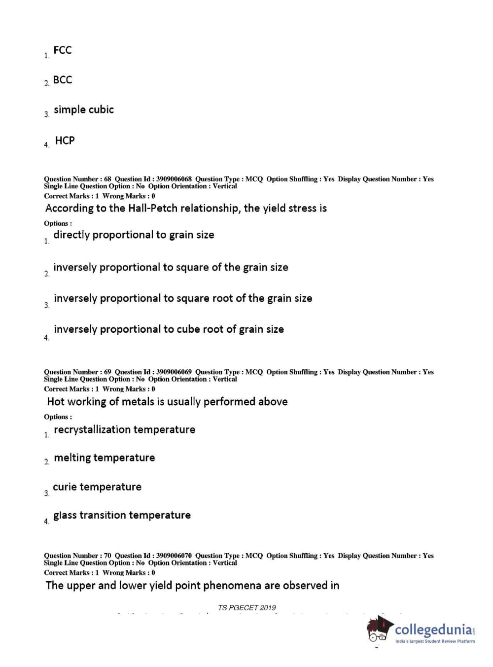 Collegedunia has provided TS PGECET Previous Year Question paper pdf with answer key in the links given below: