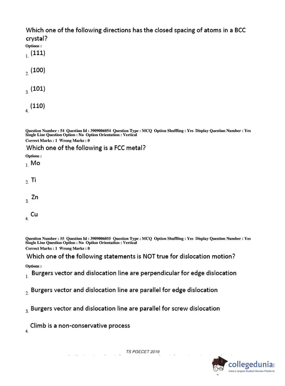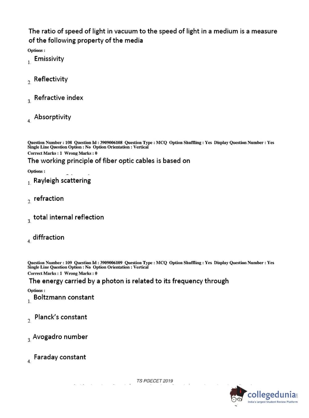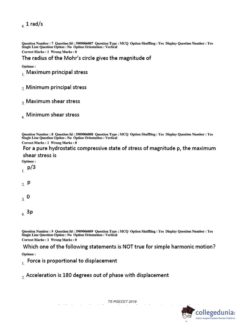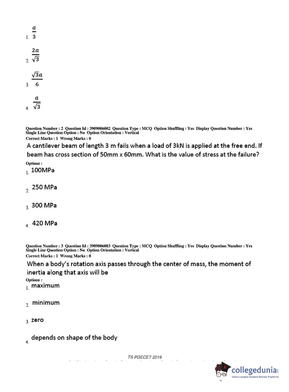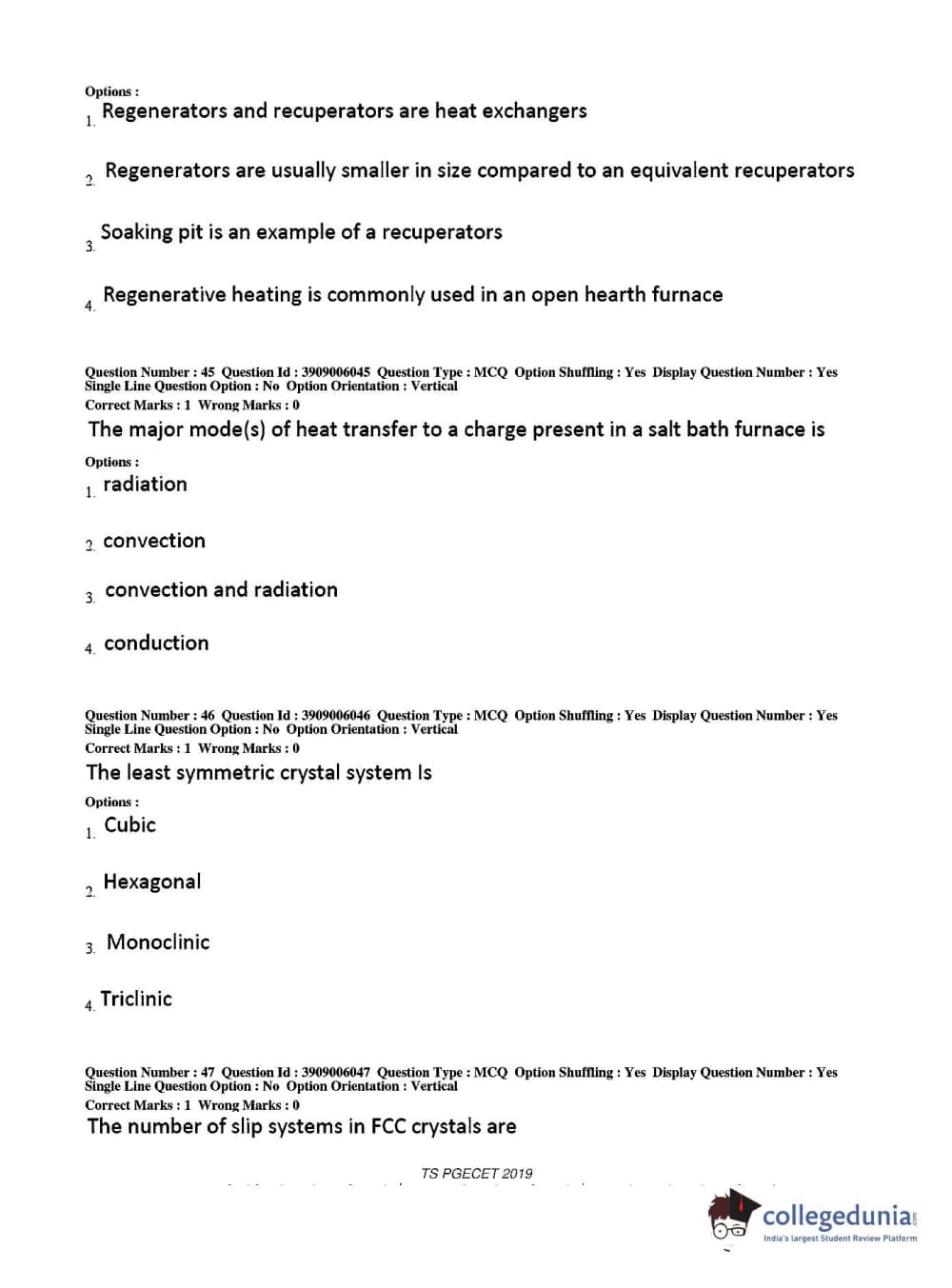Collegedunia has provided TS PGECET Previous Year Question paper pdf with answer key in the links given below: