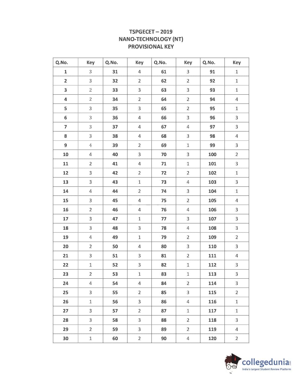 | TS PGECET 2019 Nano Technology Question Paper PDF | TS PGECET 2019 Nano Technology Answer Key PDF |