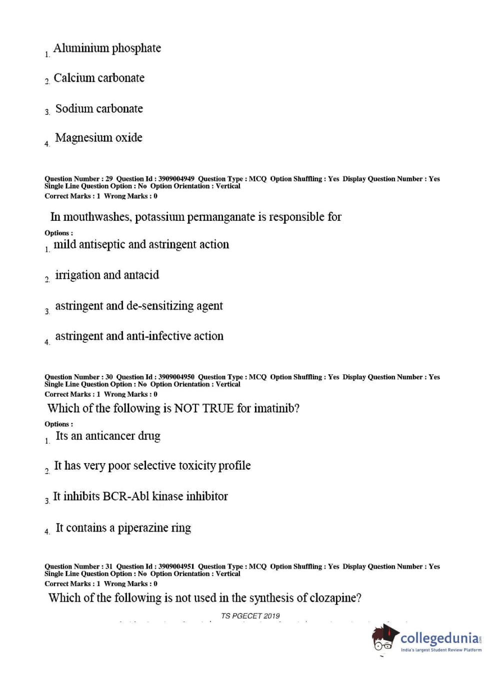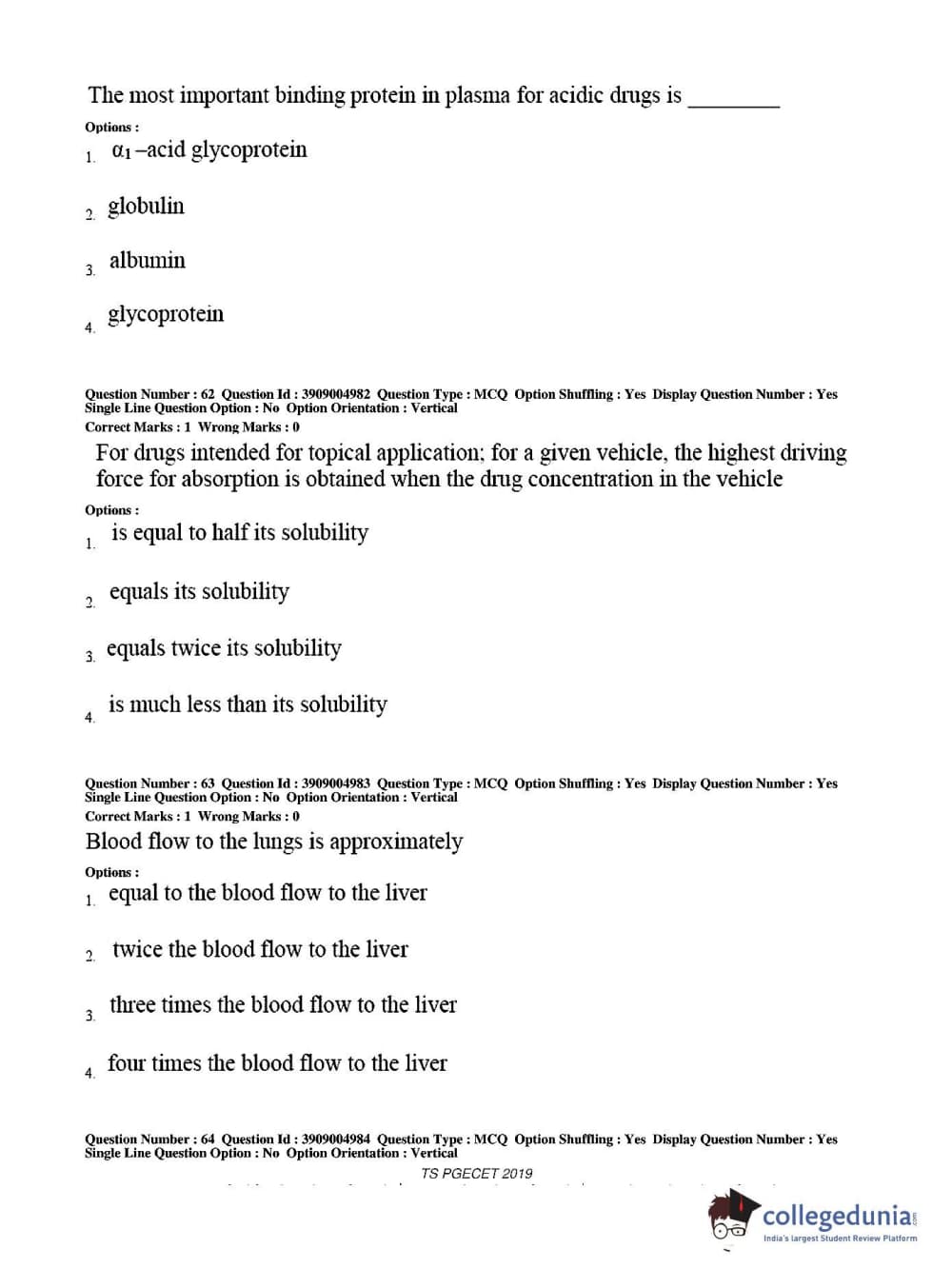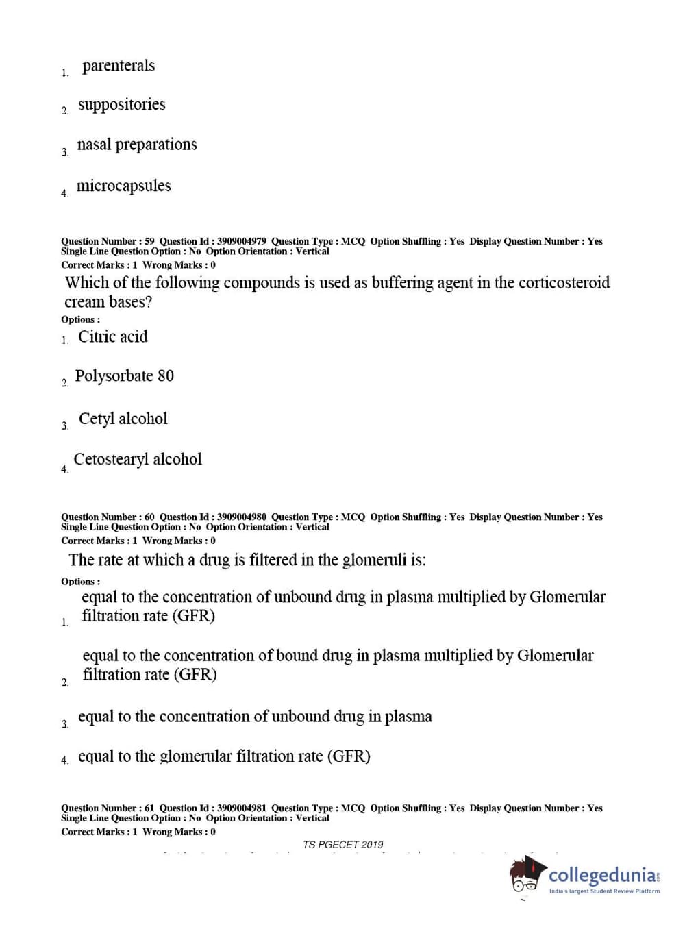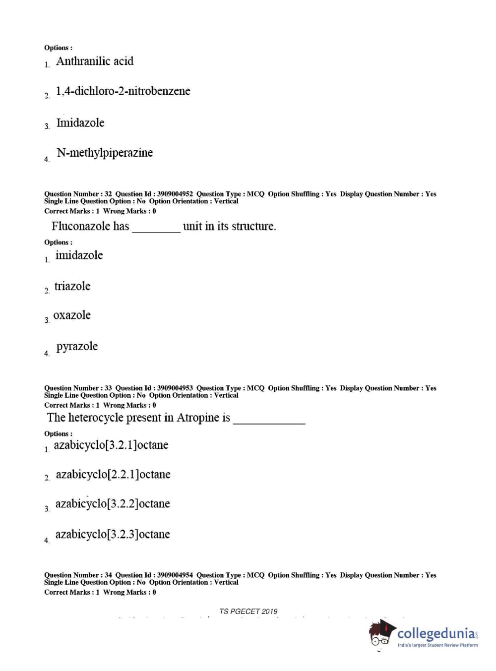 TS PGECET 2019 Pharmacy Question Paper with Answer Key PDF for