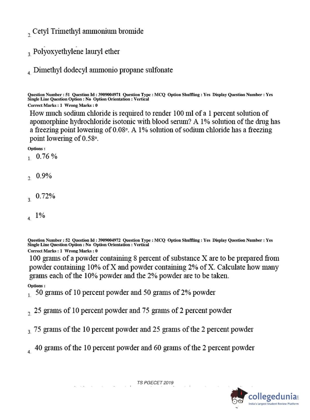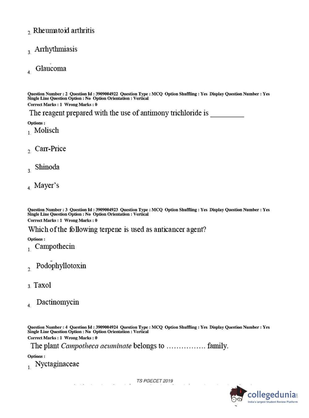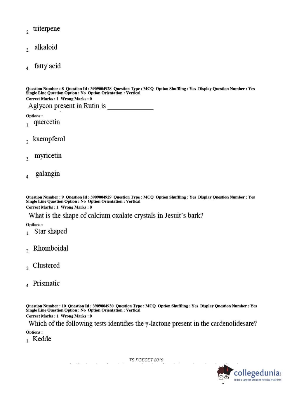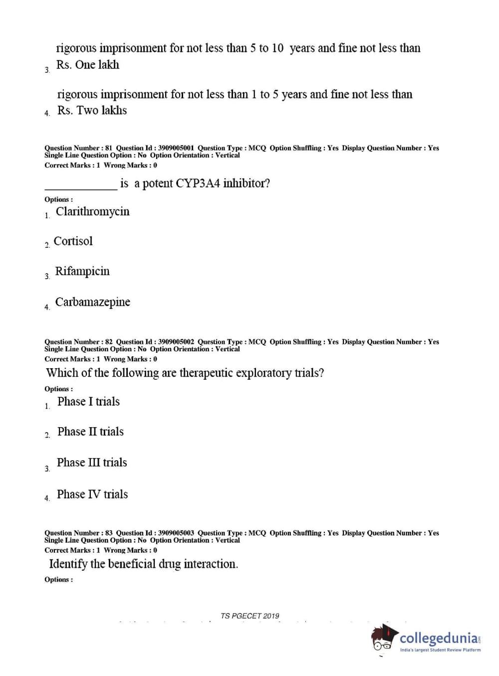 TS PGECET 2019 Pharmacy Question Paper with Answer Key PDF for