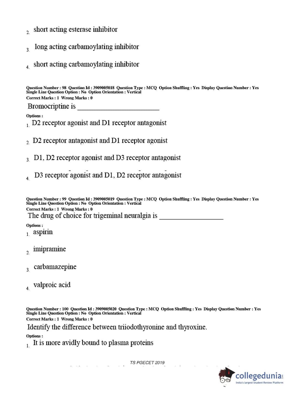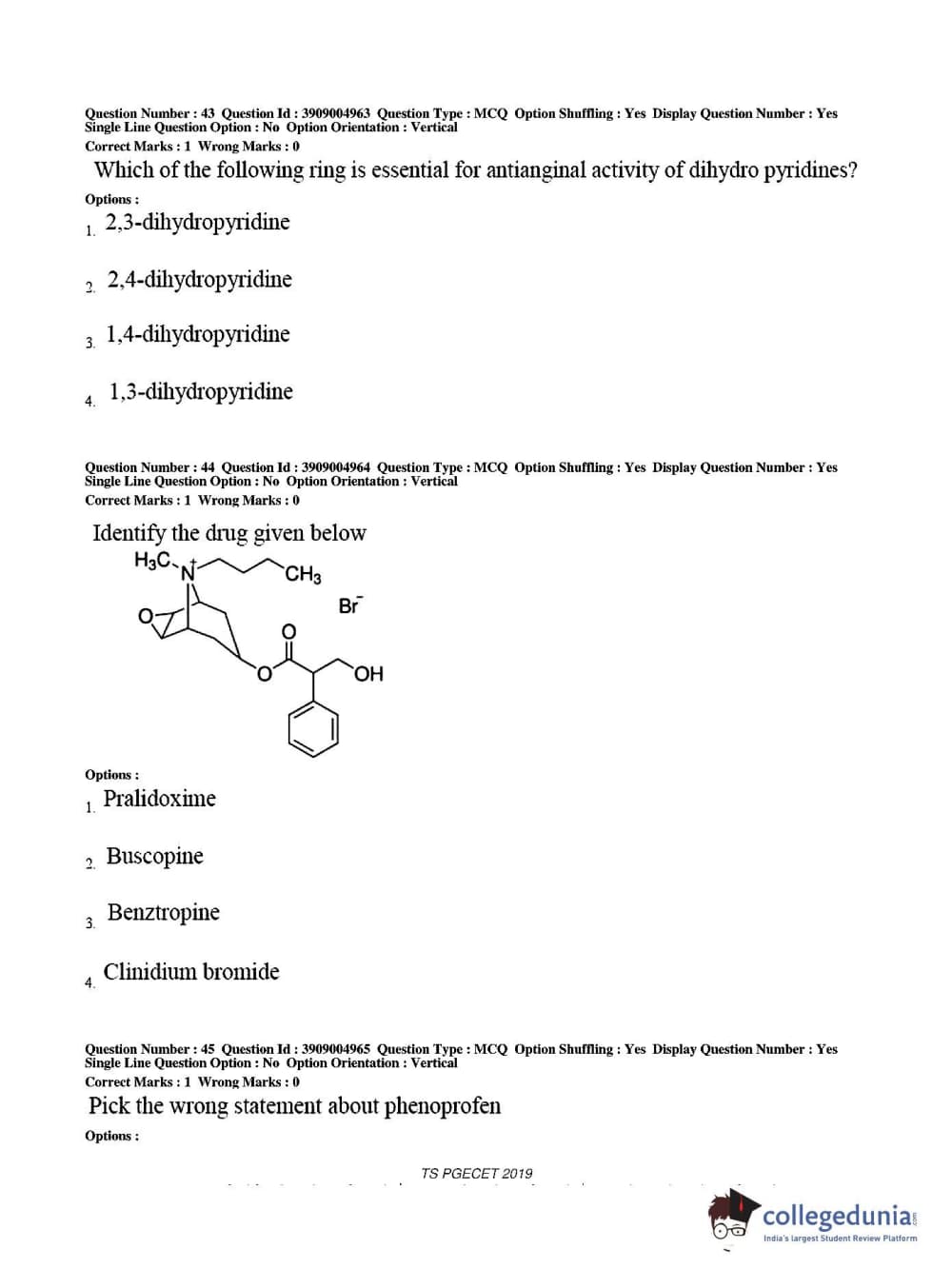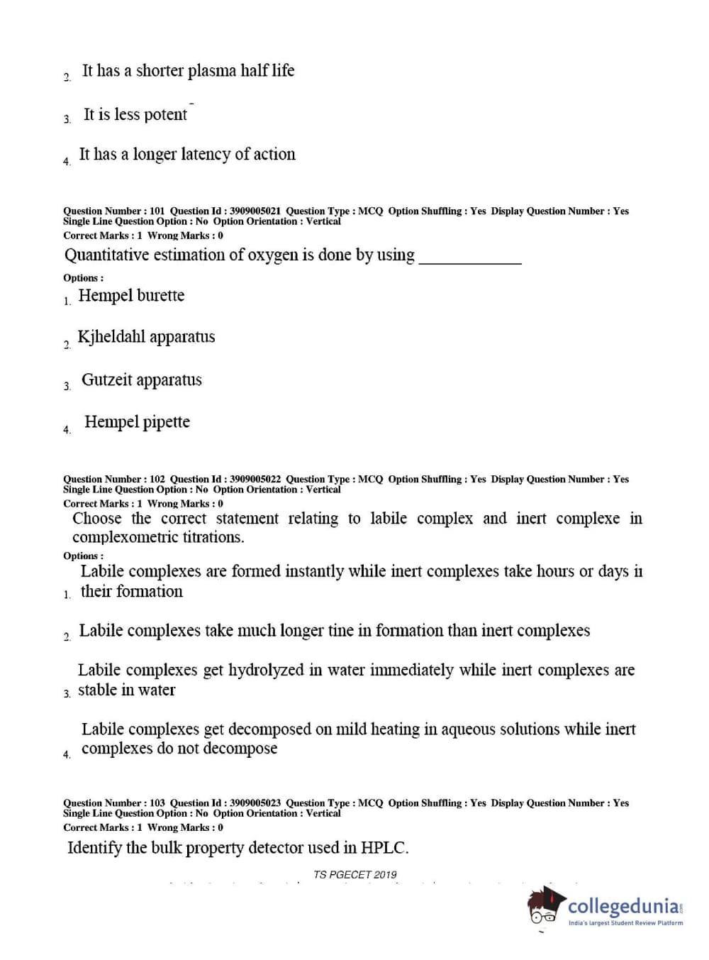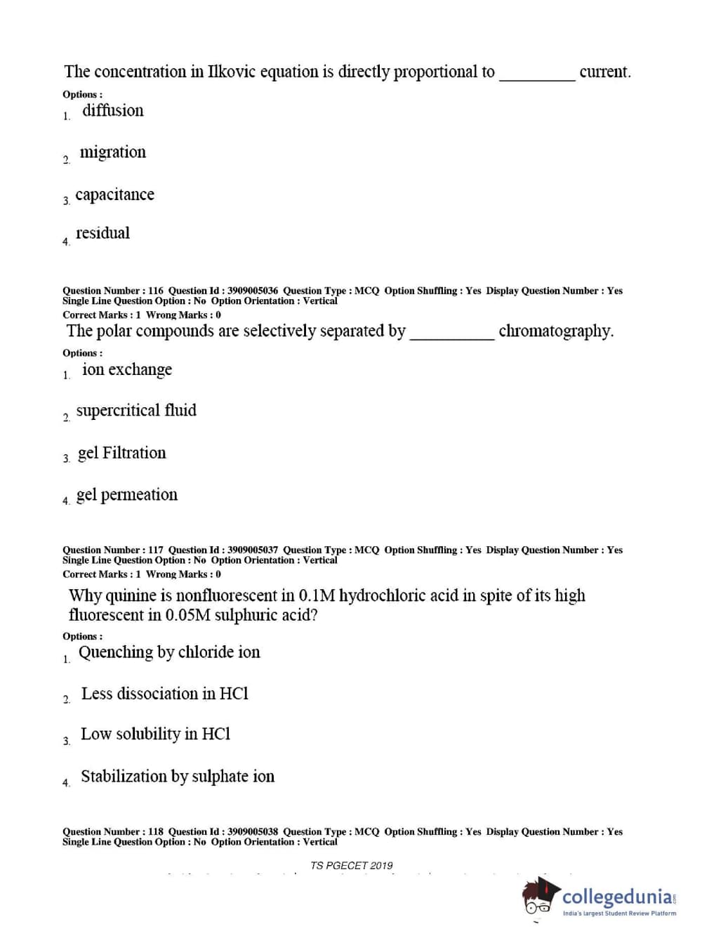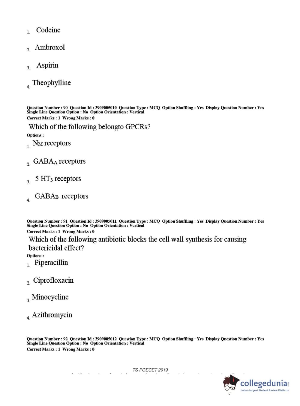 TS PGECET 2019 Pharmacy Question paper with answer key pdf conducted on May 29, 2019 from is available for download. The exam was successfully organized by Osmania University. The question paper comprised a total of 120 questions.