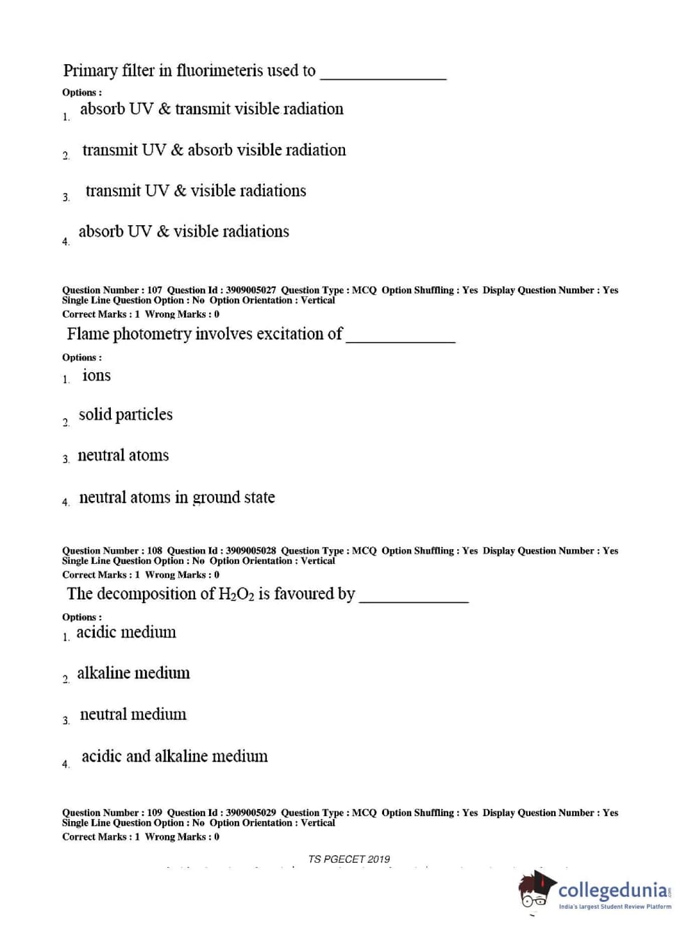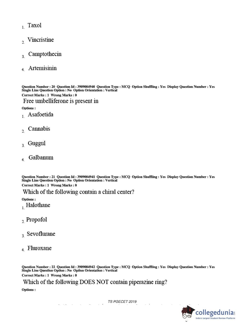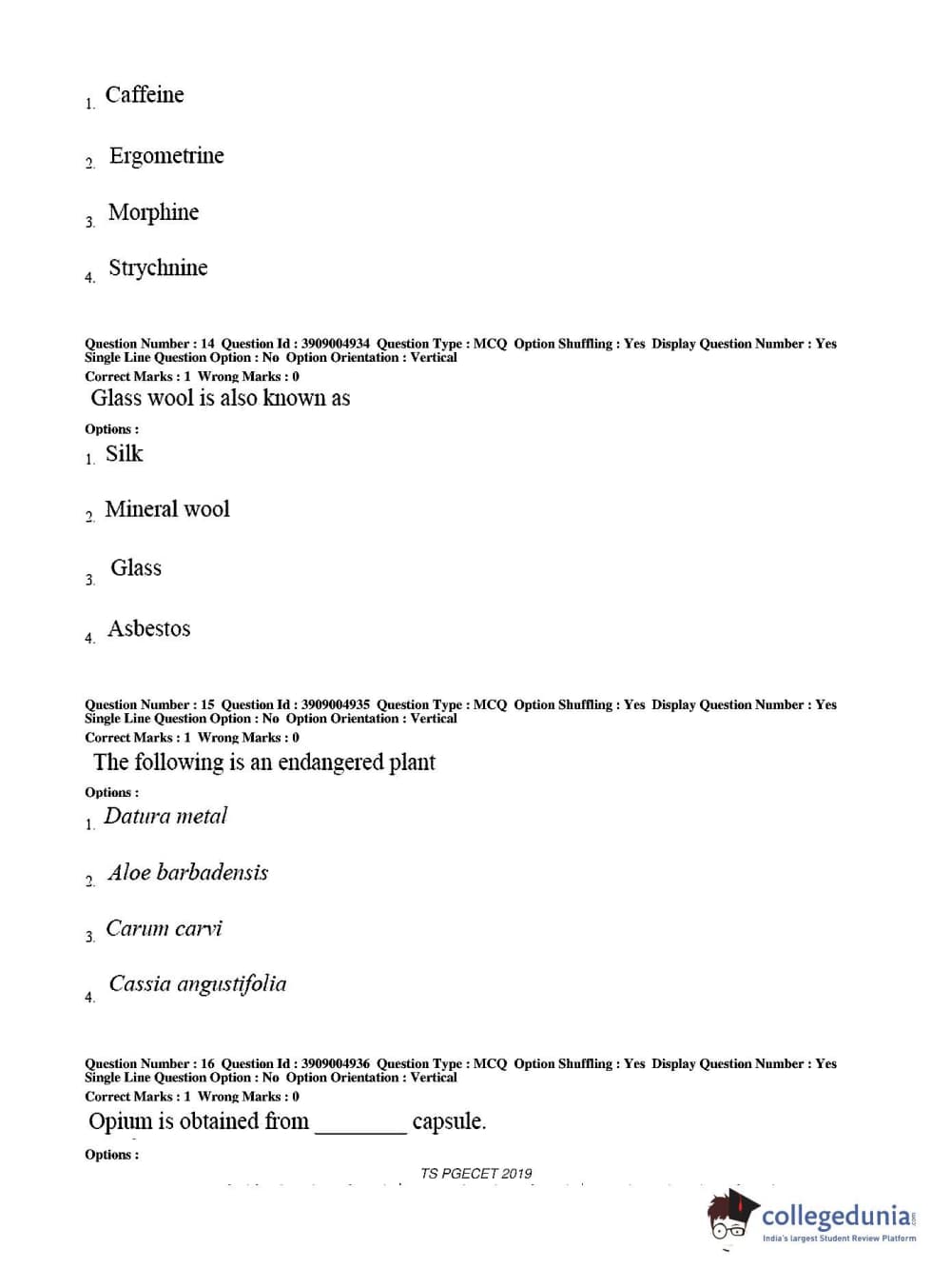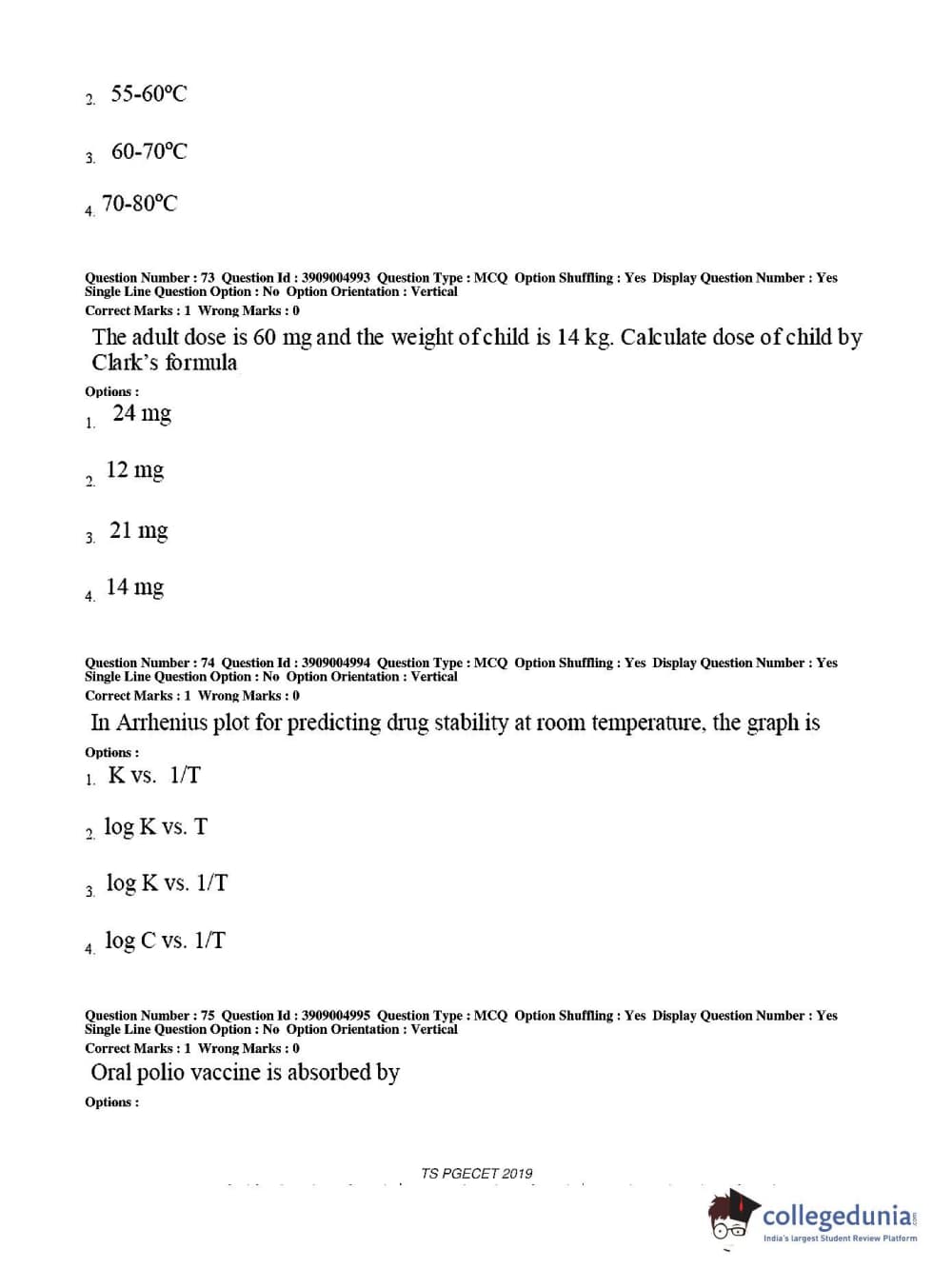 TS PGECET 2019 Pharmacy Question paper with answer key pdf conducted on May 29, 2019 from is available for download. The exam was successfully organized by Osmania University. The question paper comprised a total of 120 questions.
