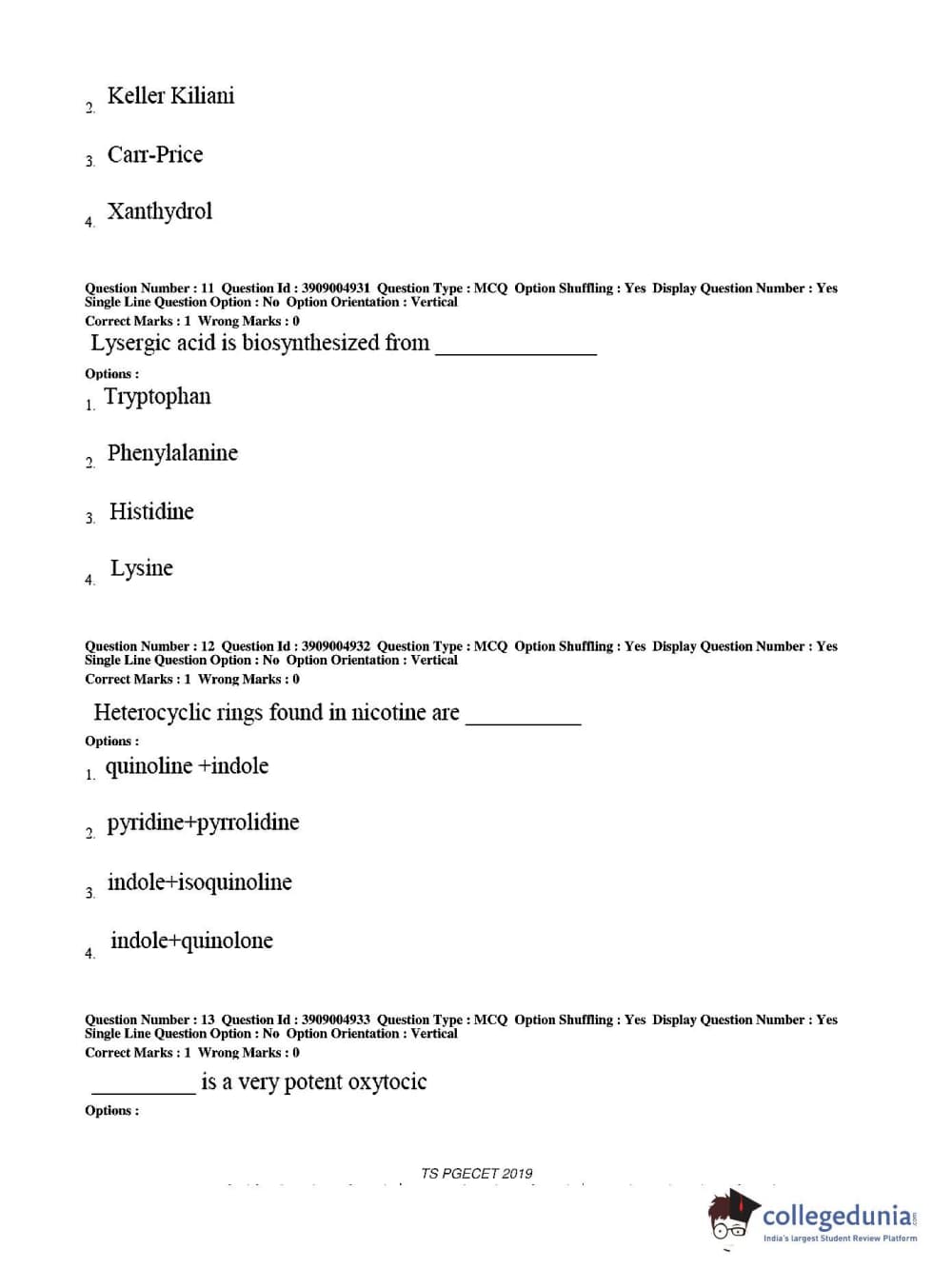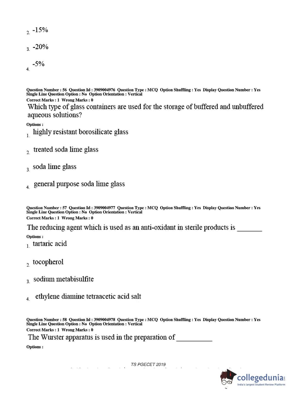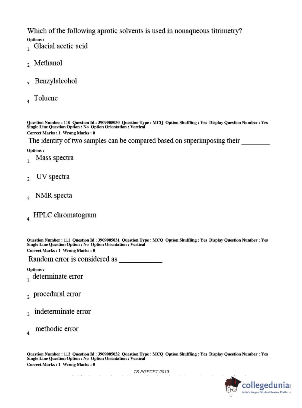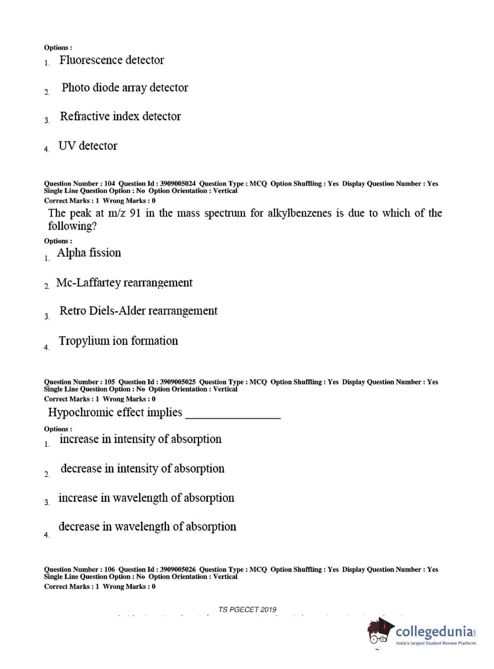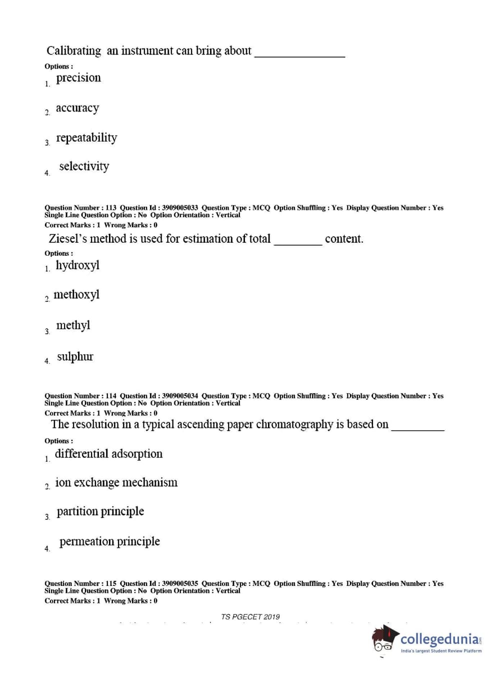 TS PGECET 2019 Pharmacy Question paper with answer key pdf conducted on May 29, 2019 from is available for download. The exam was successfully organized by Osmania University. The question paper comprised a total of 120 questions.