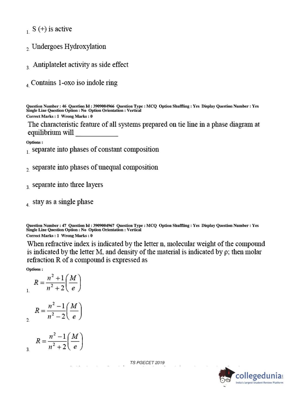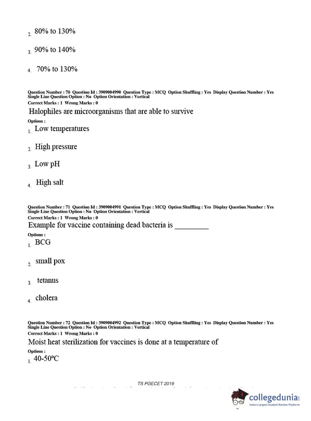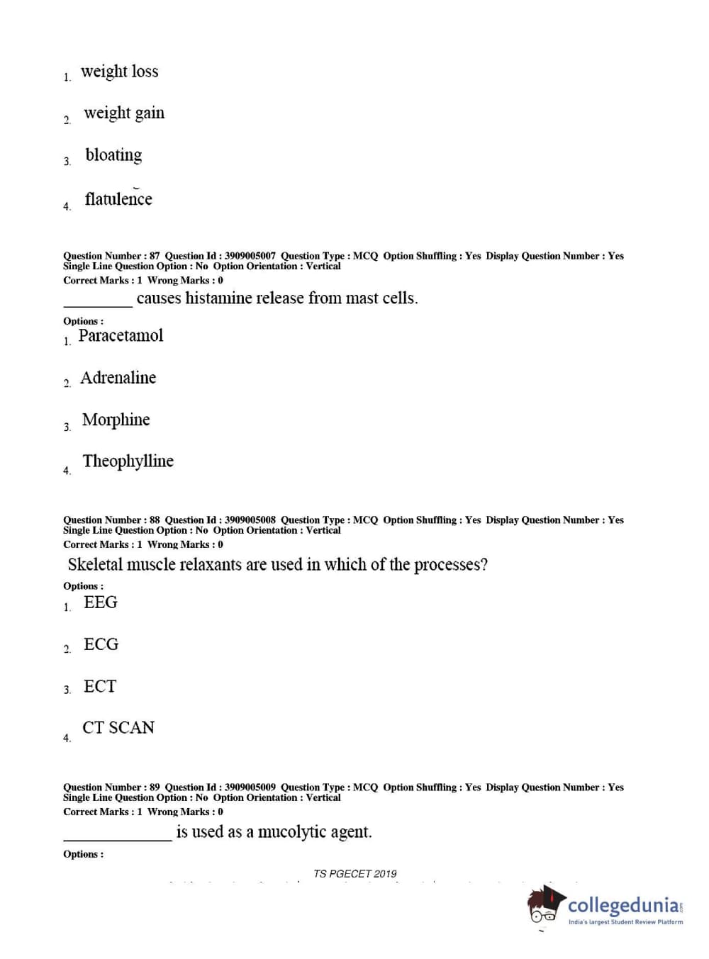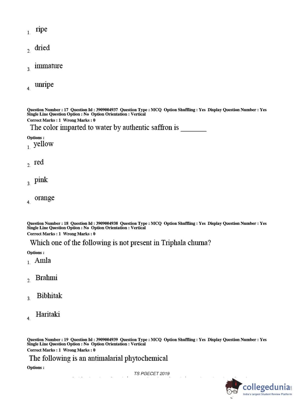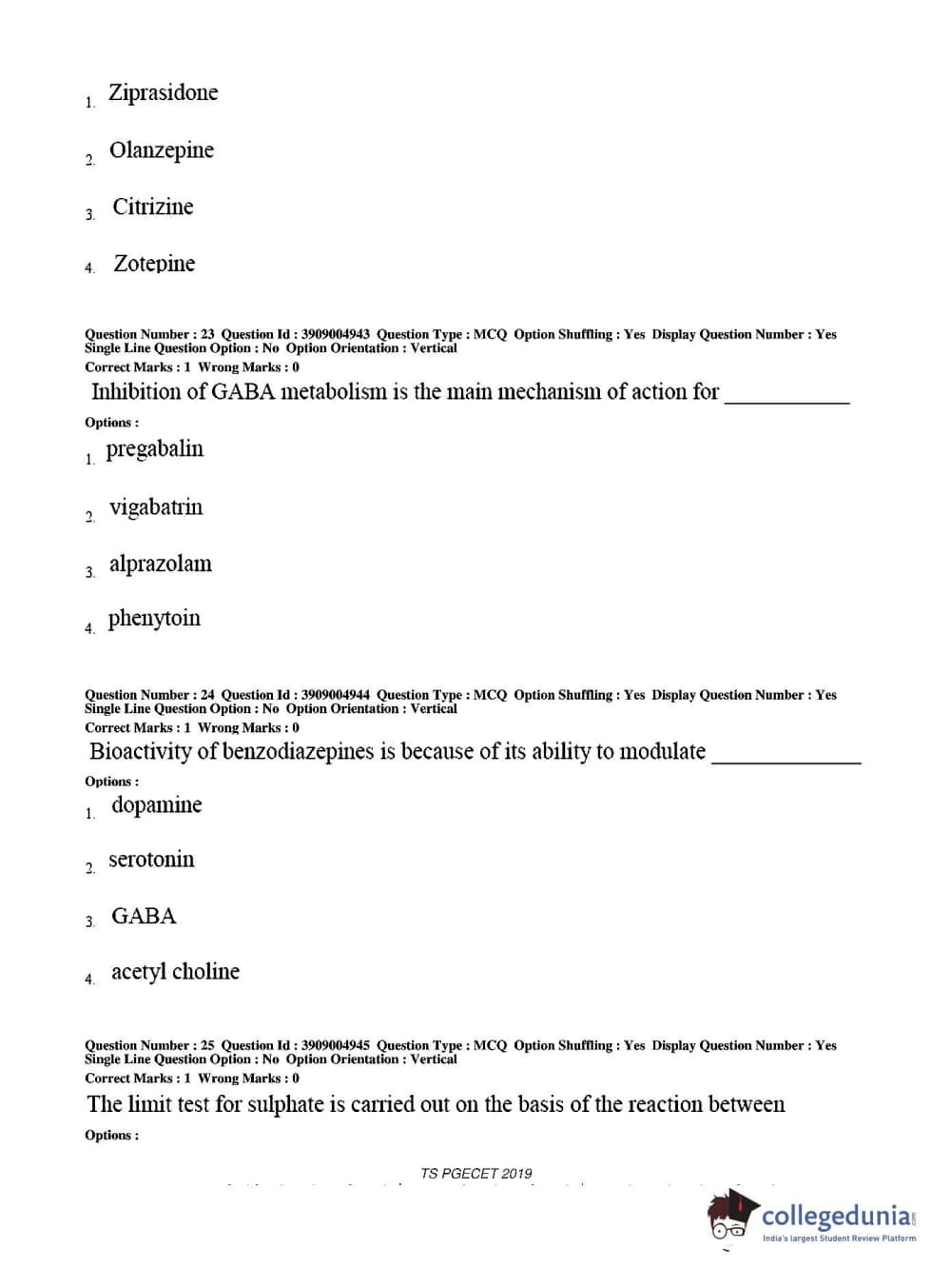 TS PGECET 2019 Pharmacy Question paper with answer key pdf conducted on May 29, 2019 from is available for download. The exam was successfully organized by Osmania University. The question paper comprised a total of 120 questions.
