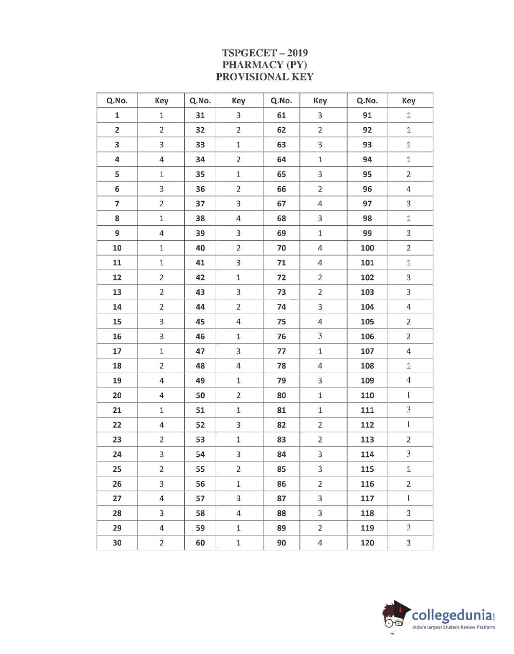 | TS PGECET 2019 Pharmacy Question Paper PDF | TS PGECET 2019 Pharmacy Answer Key PDF |