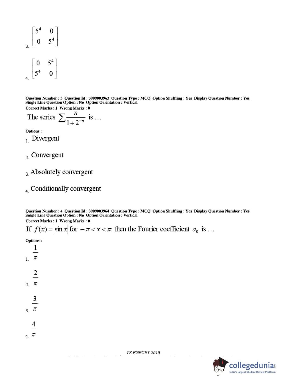 Collegedunia has provided TS PGECET Previous Year Question paper pdf with answer key in the links given below: