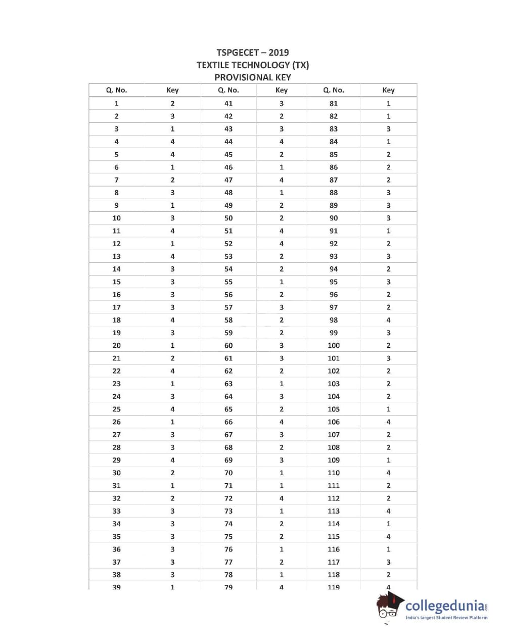 | TS PGECET 2019 Textile Technology Question Paper PDF | TS PGECET 2019 Textile Technology Answer Key PDF |