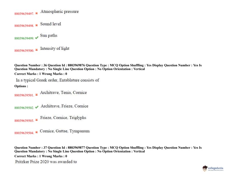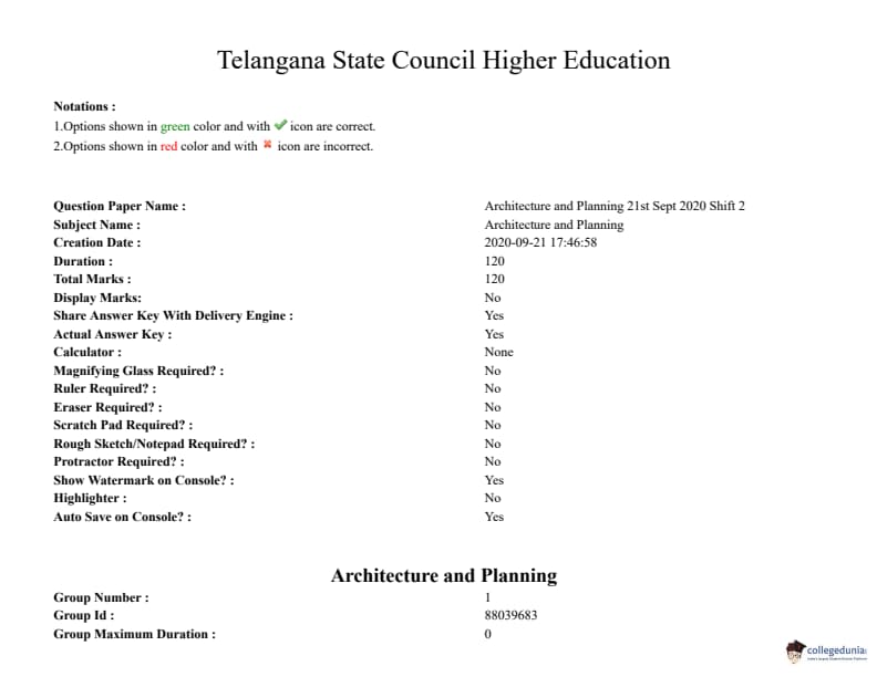 TS PGECET 2020 Architecture and Planning Question Paper with Answer Key PDFs for Afternoon Session
