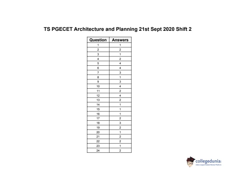| TS PGECET 2020 Architecture and Planning Question Paper | TS PGECET 2020 Architecture and Planning Answer Key |