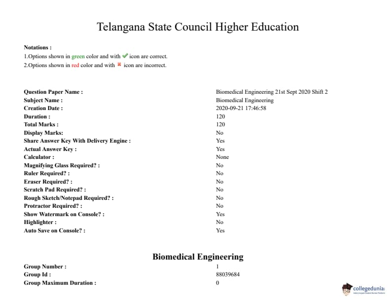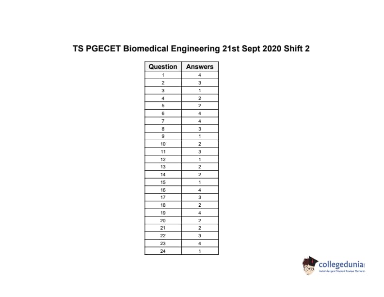 | TS PGECET 2020 Biomedical Engineering Question Paper | TS PGECET 2020 Biomedical Engineering Answer Key |