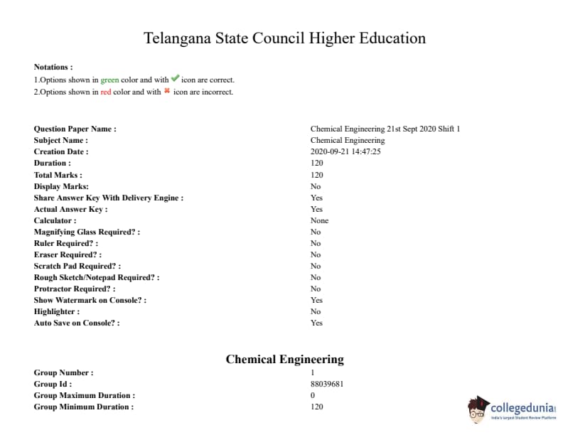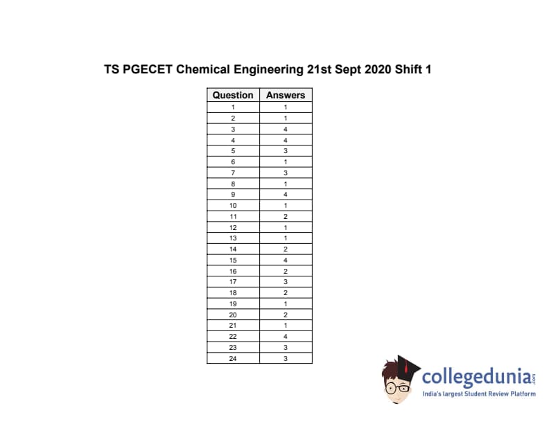 | TS PGECET 2020 Chemical Engineering Question Paper | TS PGECET 2020 Chemical Engineering Answer Key |
