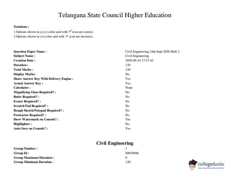 TS PGECET 2020 Civil Engineering Question paper with answer key pdf conducted on September 24, 2020 in Afternoon Session 2 PM to 4 PM is available for download. The exam was successfully organized by Osmania University. The question paper comprised a total of 120 questions.