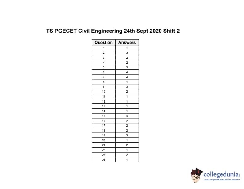 | TS PGECET 2020 Civil Engineering Question Paper | TS PGECET 2020 Civil Engineering Answer Key |